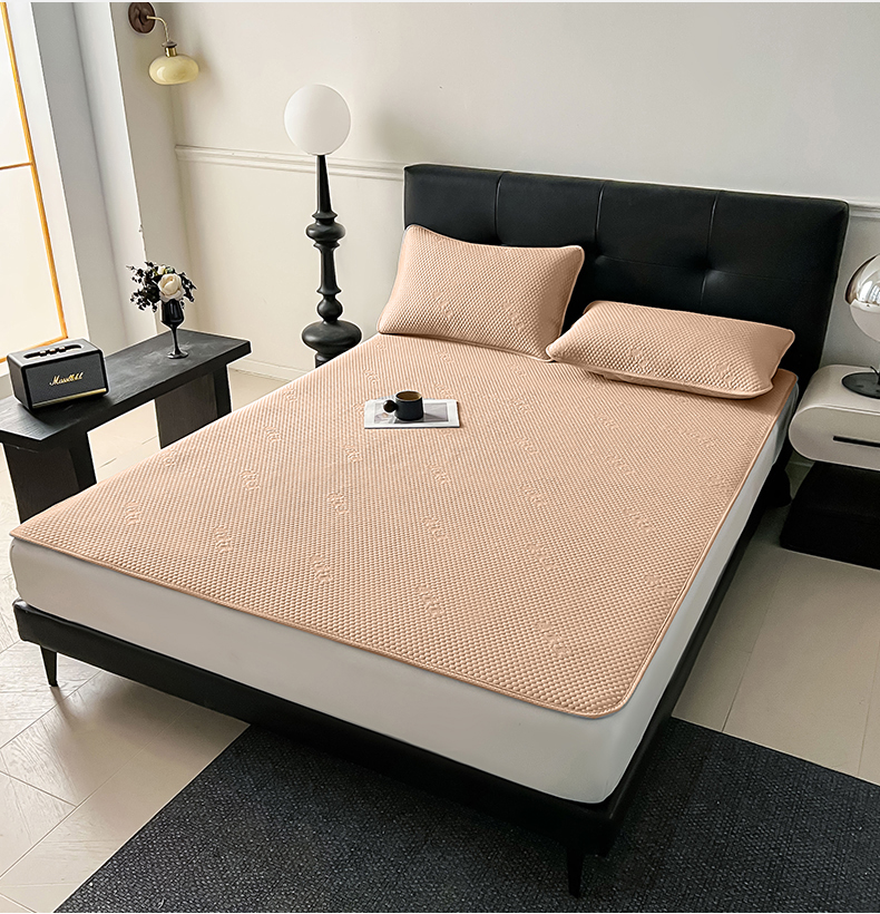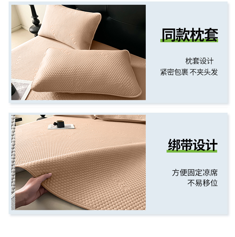 (总)席之家 2025新款高精密三纬可水洗冰提花丝凉席,莫奈-咖,莫奈-灰,莫奈-绿
