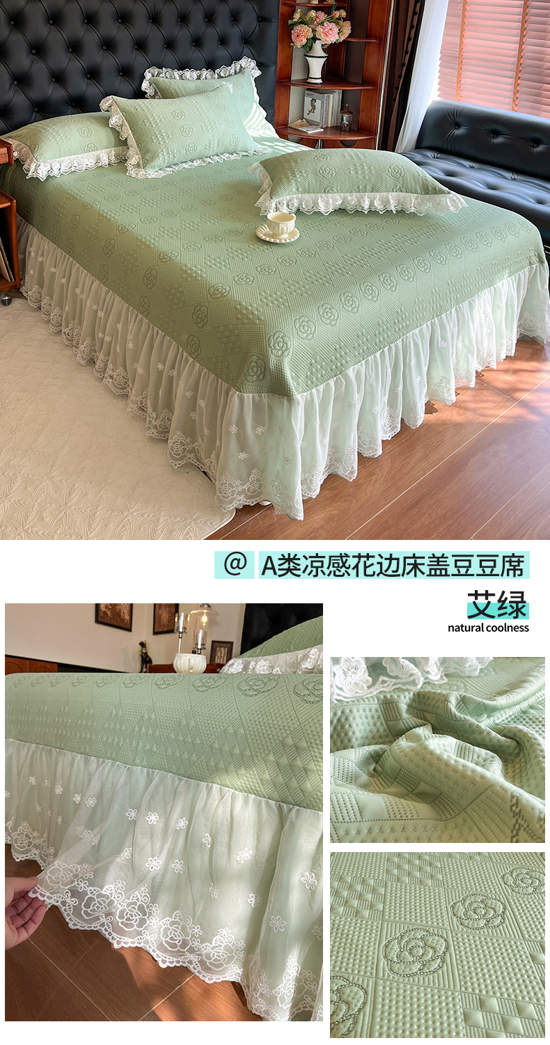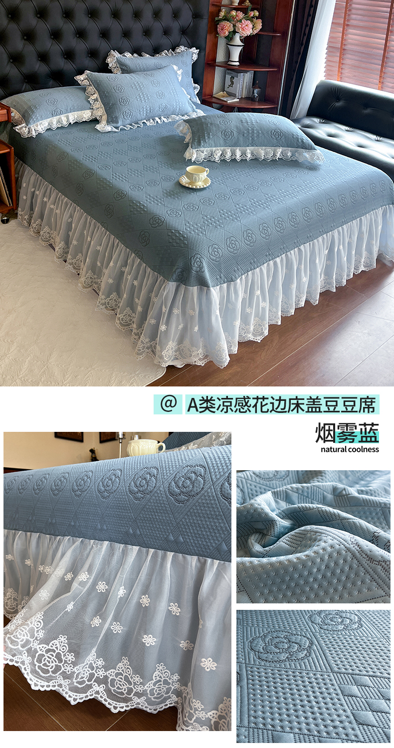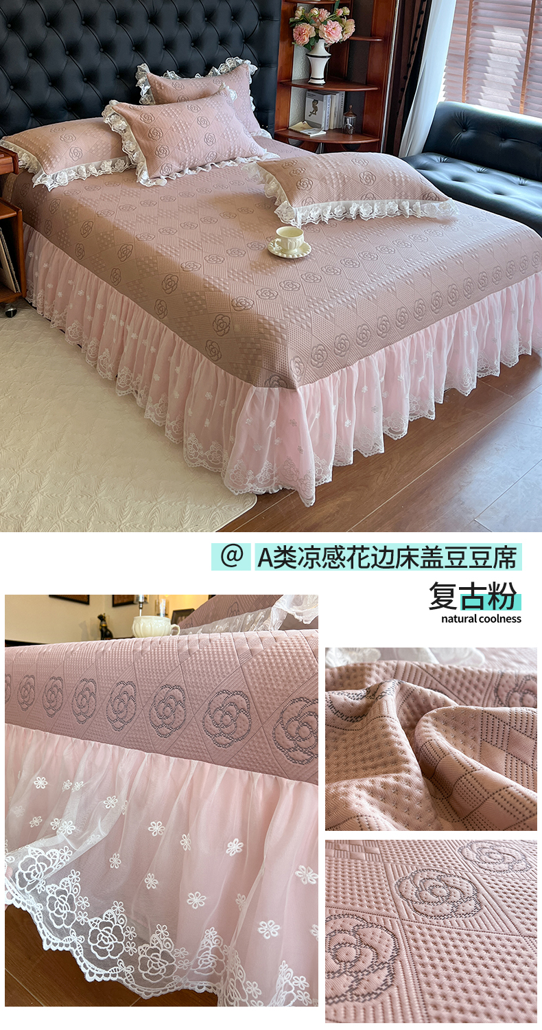 (总)网红馆(ck家纺) 2025新款A类凉感花边豆豆席凉席床盖三件套--瑞莎