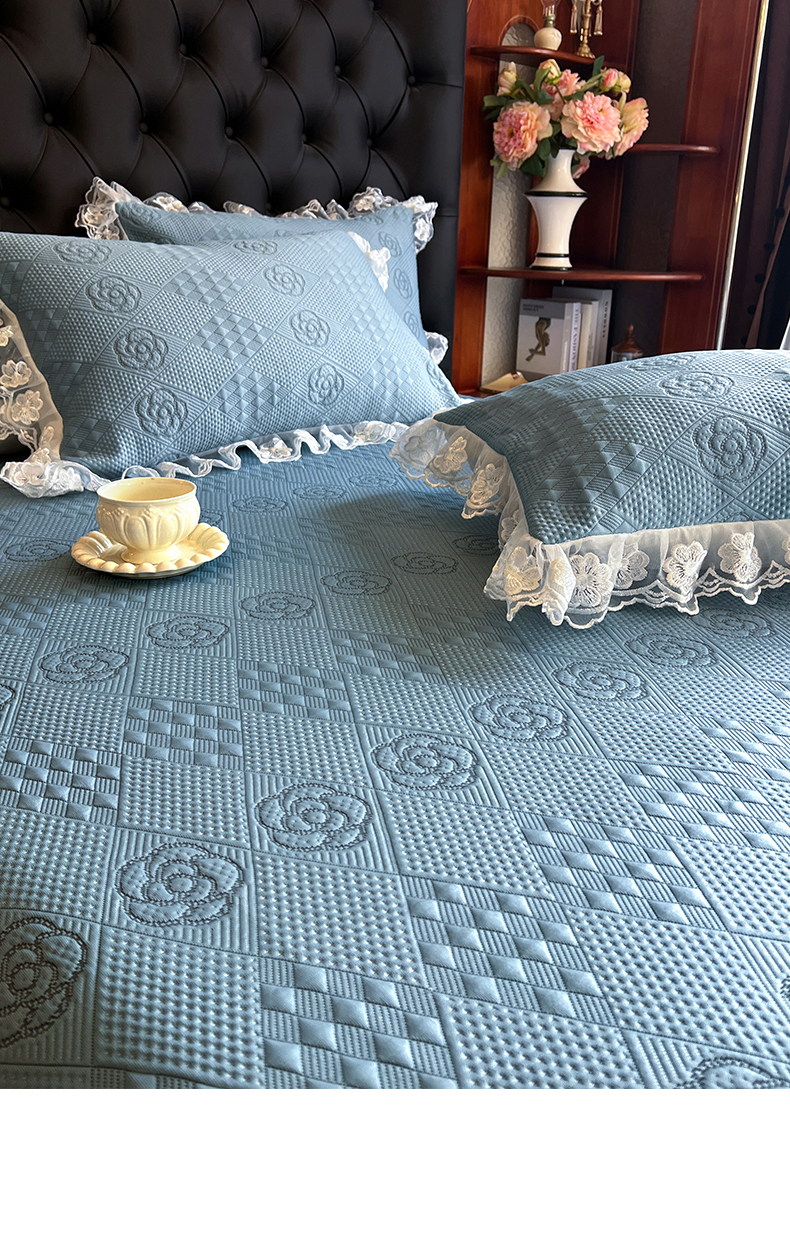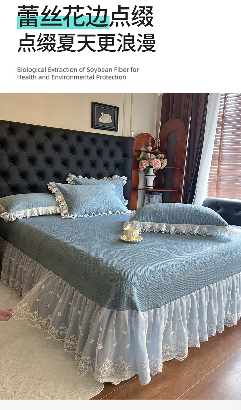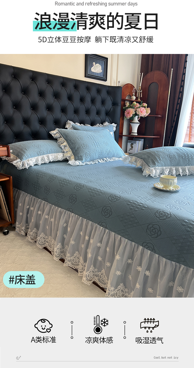 (总)网红馆(ck家纺) 2025新款A类凉感花边豆豆席凉席床盖三件套--瑞莎