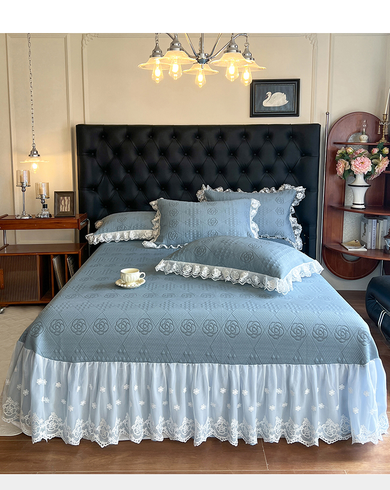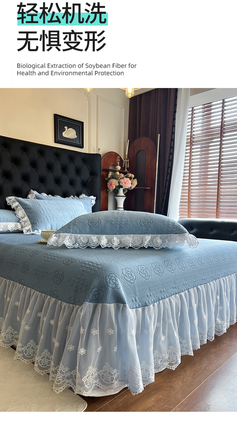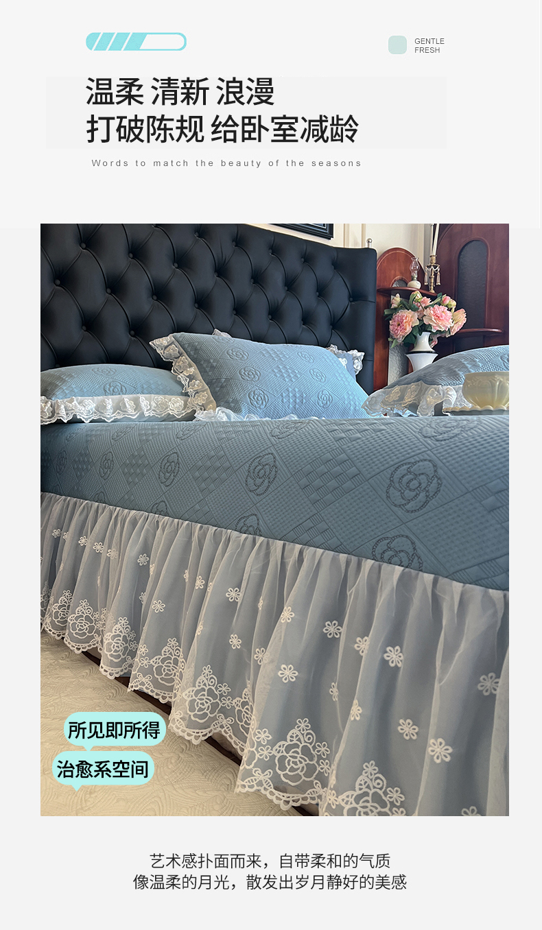 (总)网红馆(ck家纺) 2025新款色织提花牛奶绒床裙四件套-洛丽塔系列,洛丽塔-豆沙,洛丽塔-蓝色,洛丽塔-米色