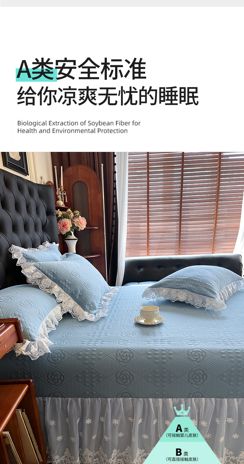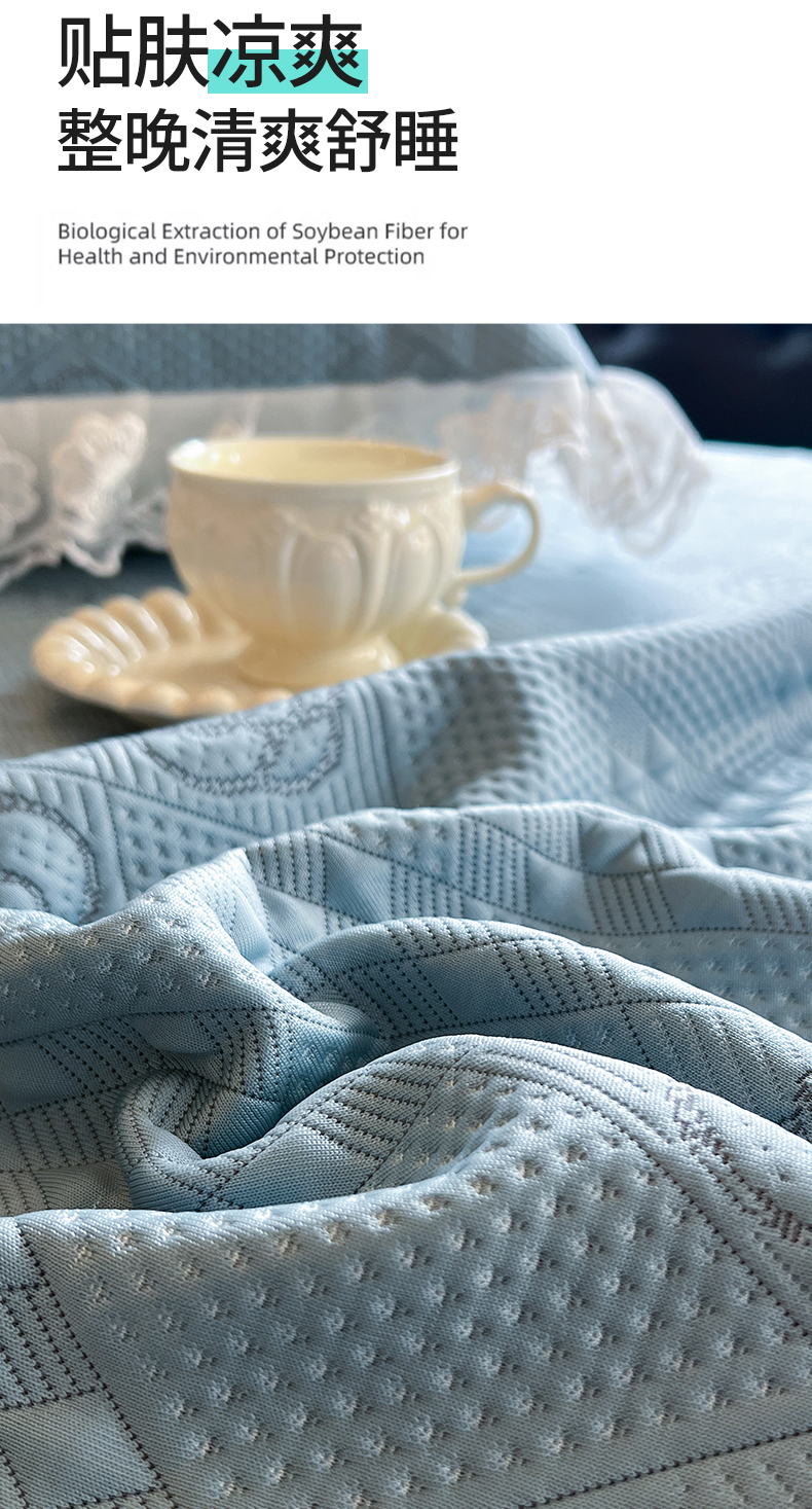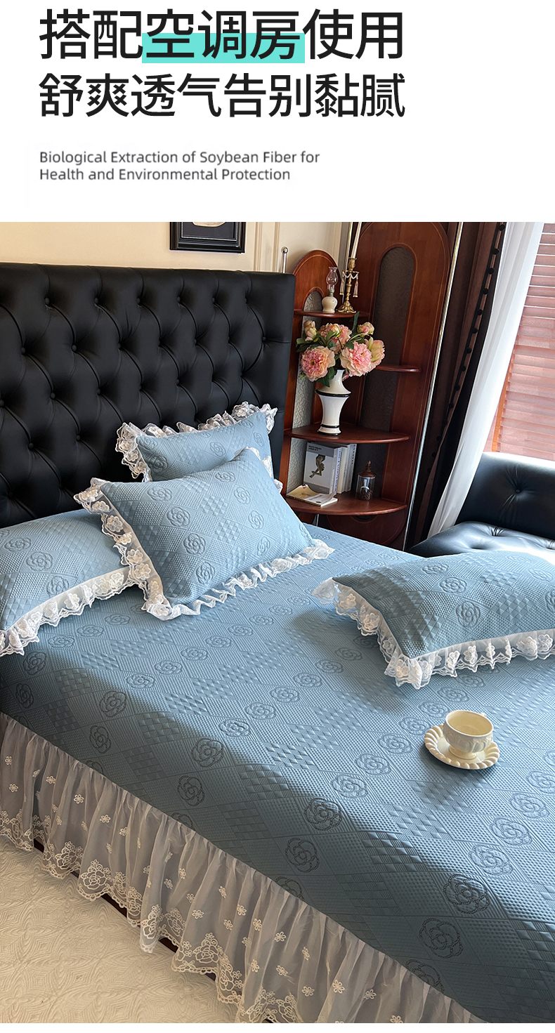 商品名称:(总)网红馆(ck家纺) 2025新款A类凉感花边豆豆席凉席床盖三件套--瑞莎
