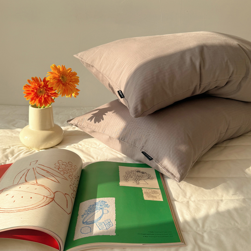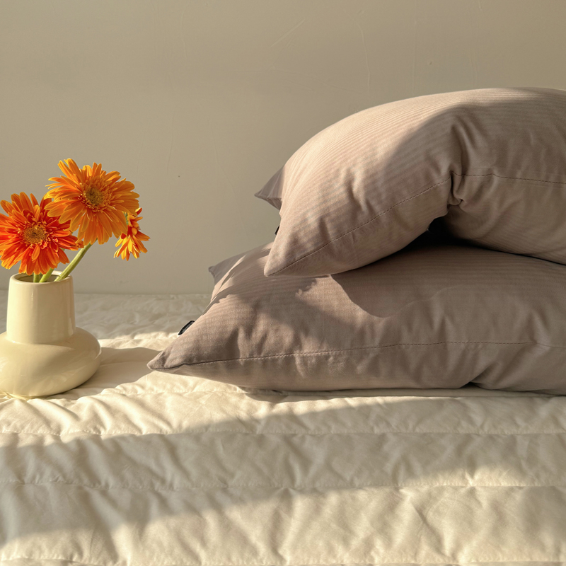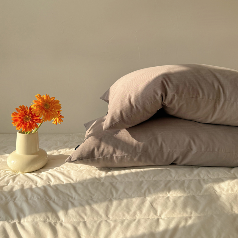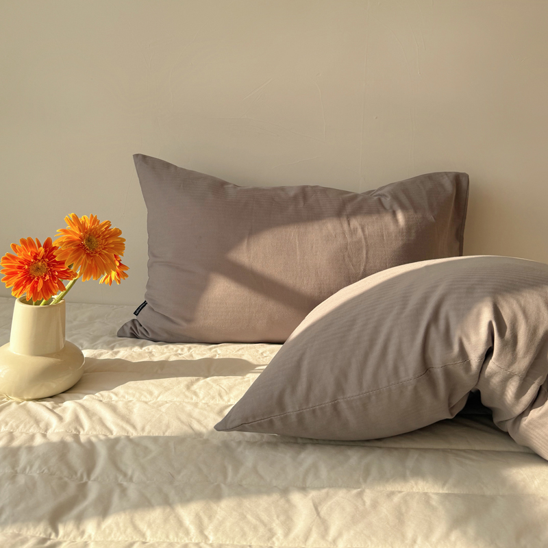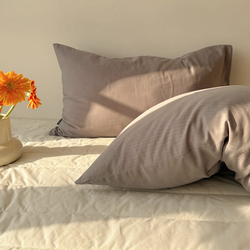 蜜宿 2025新款全棉人字纹枕套 浅灰