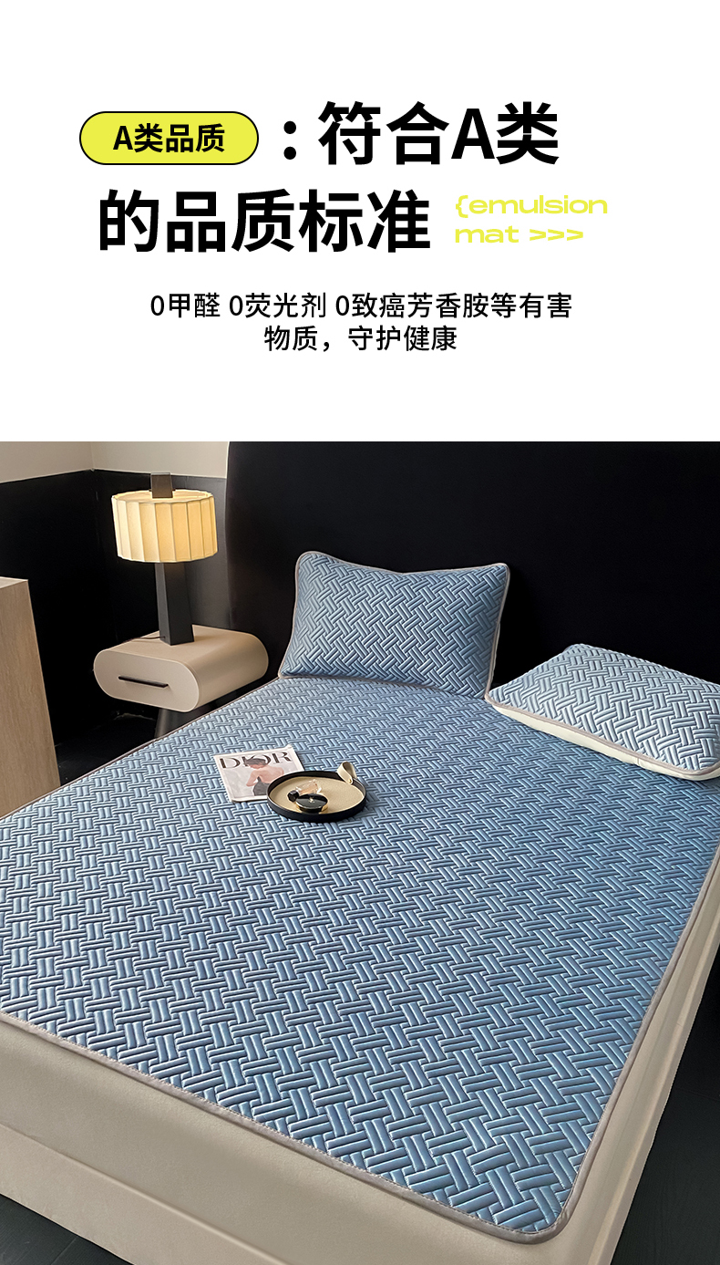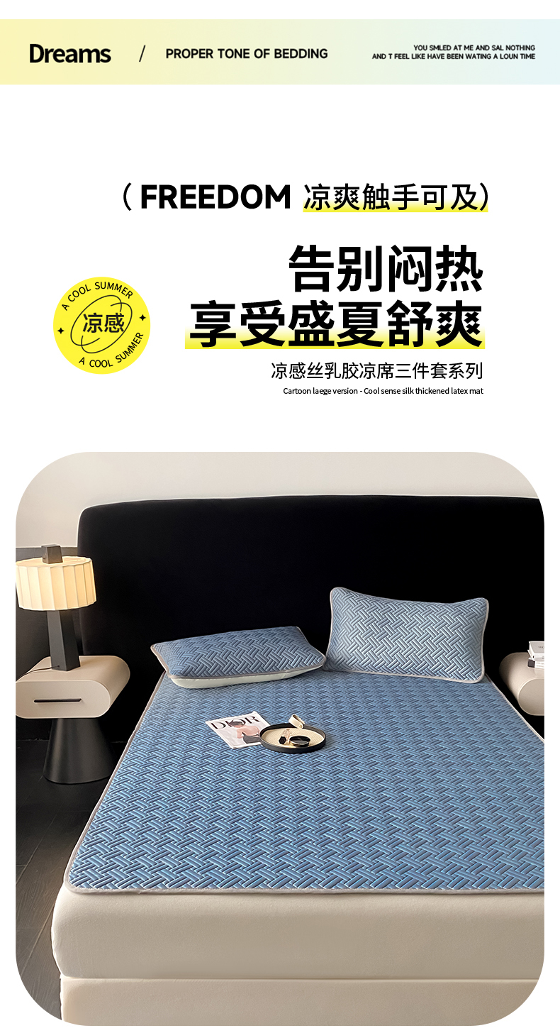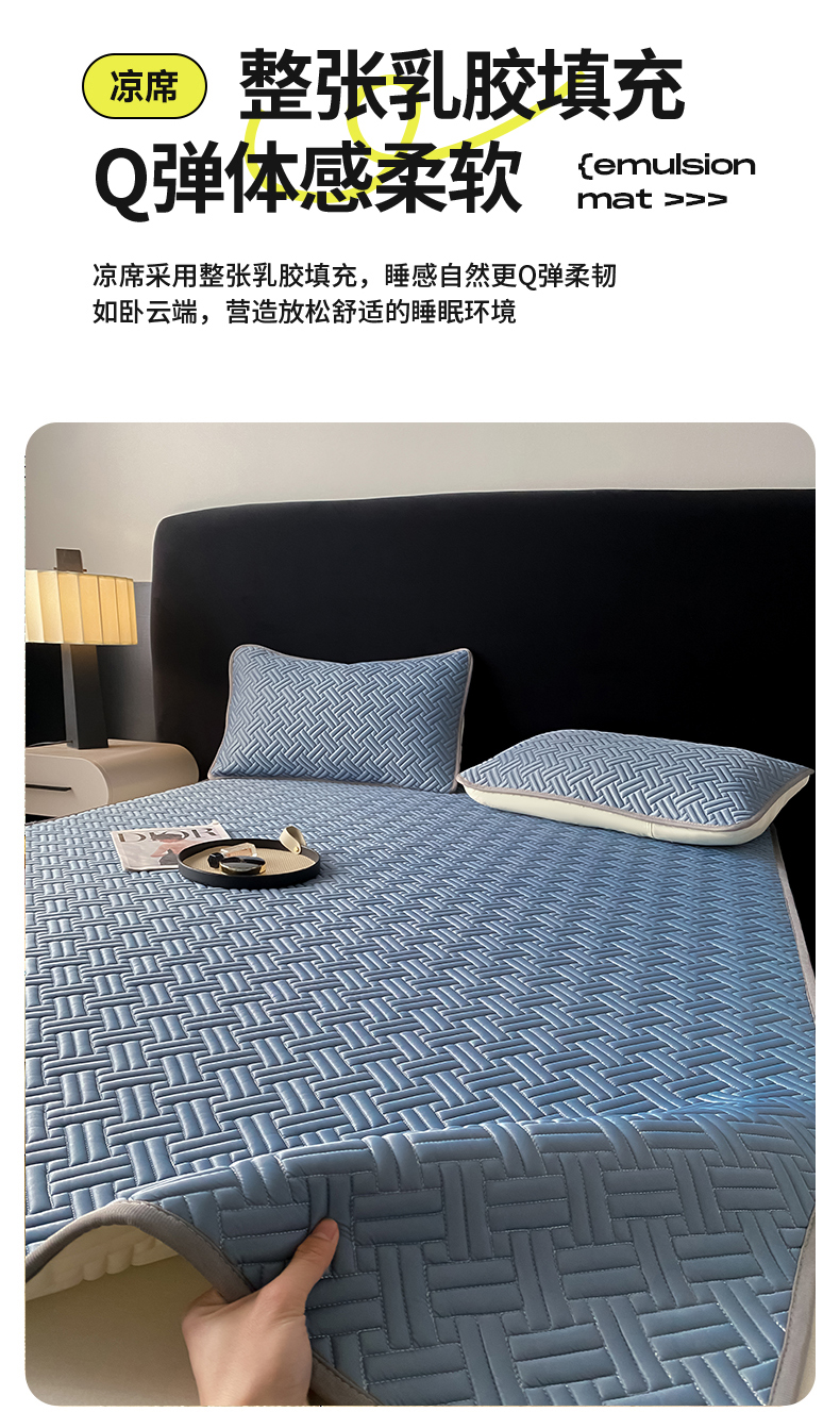 欧邦 2025新款加厚纯色凉席四件套--凉席三件套 饼干花-宝蓝