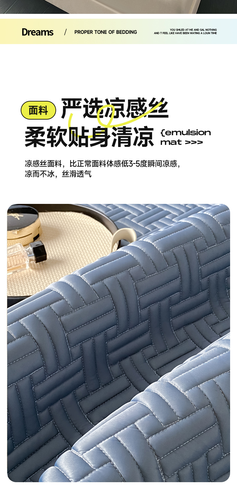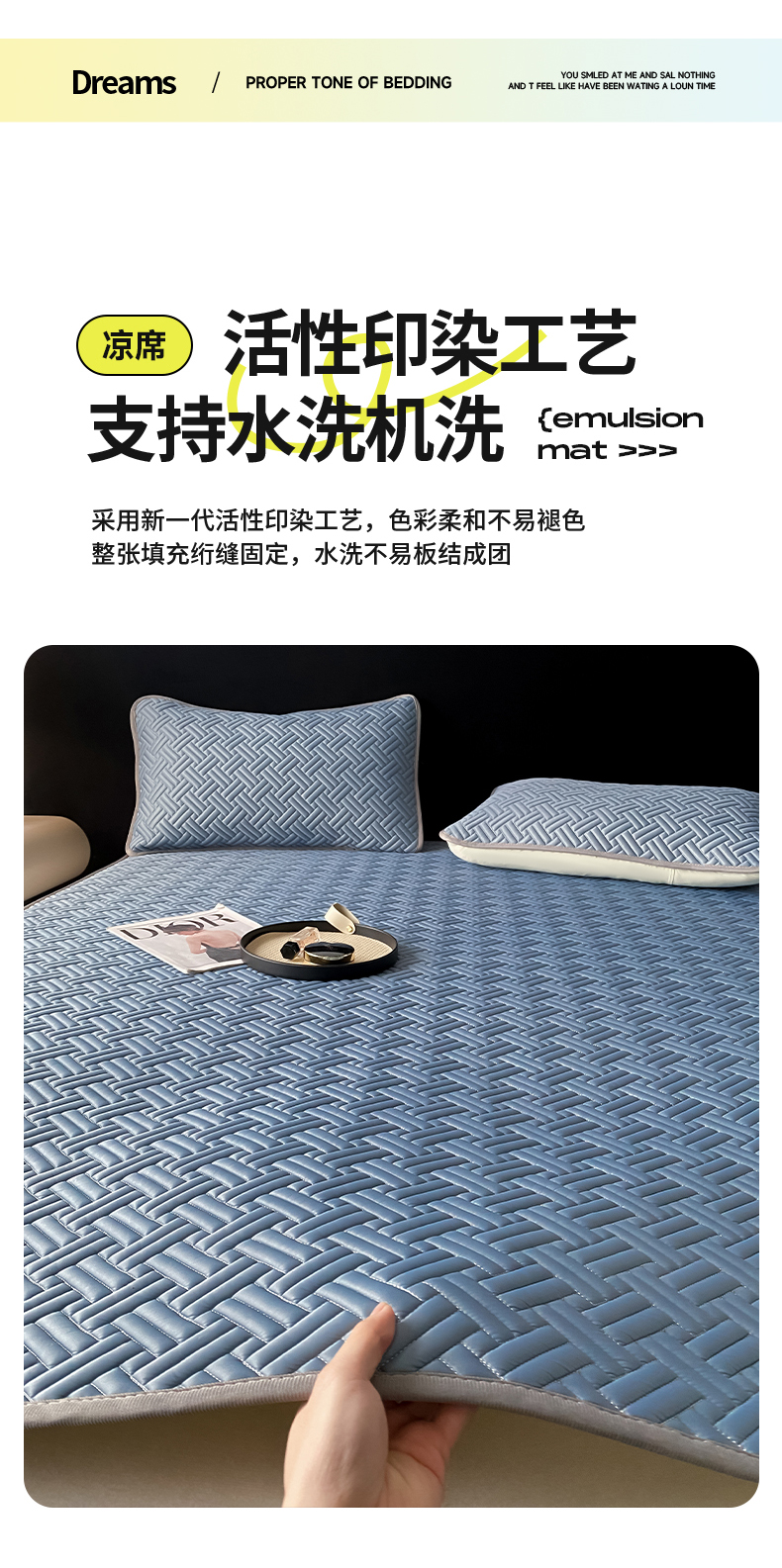 商品名称:欧邦 2025新款加厚纯色凉席四件套--凉席三件套 饼干花-宝蓝