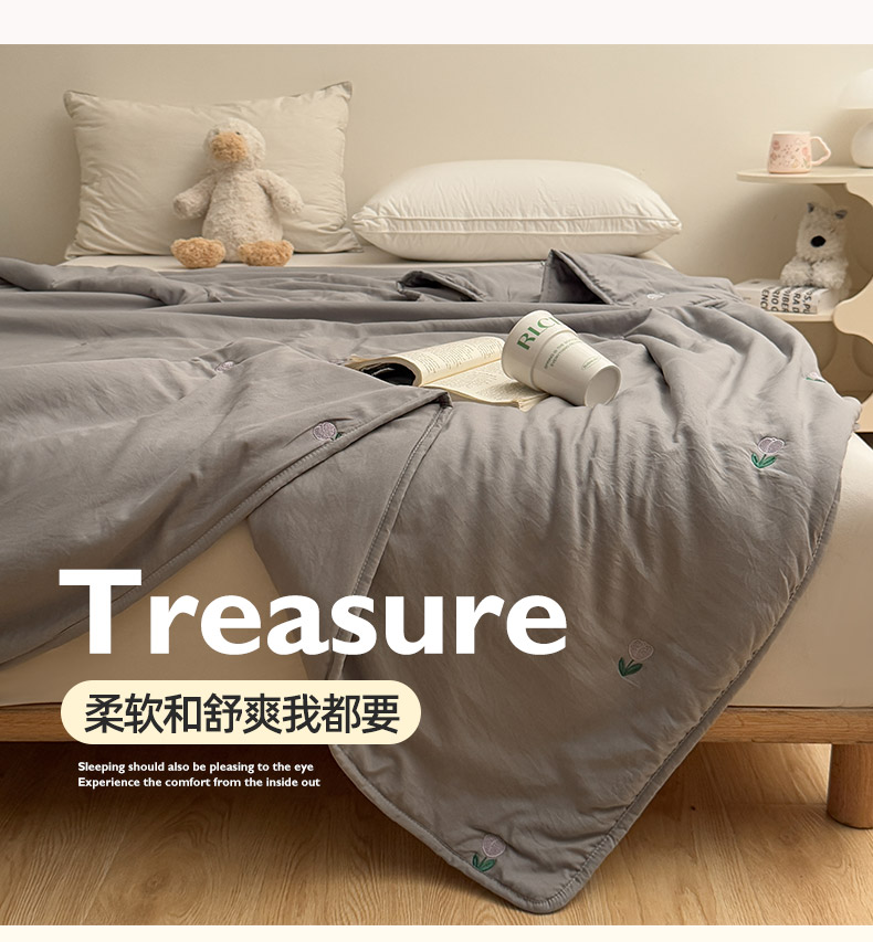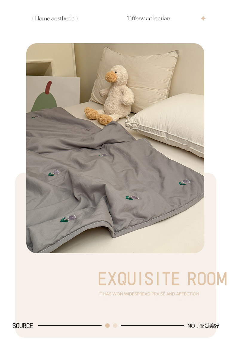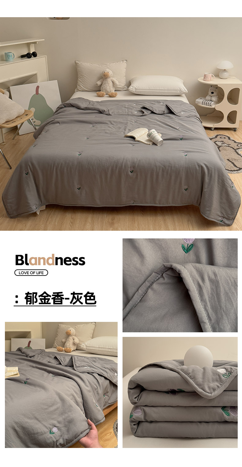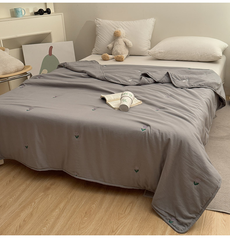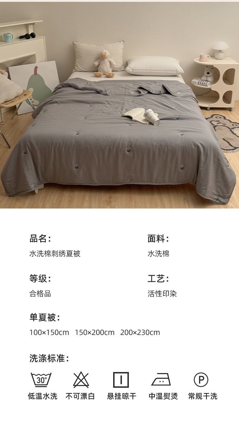 商品名称:推推家纺2025新款简约系列水洗棉刺绣夏被 郁金香-灰色