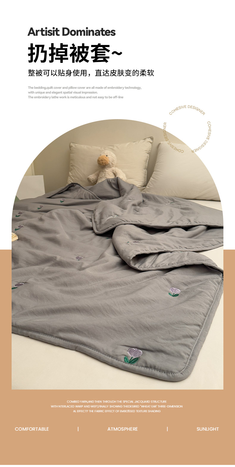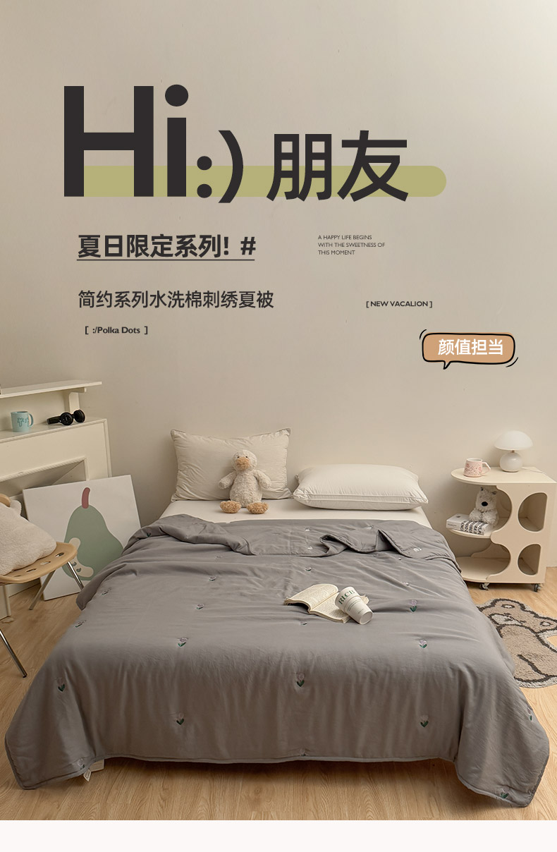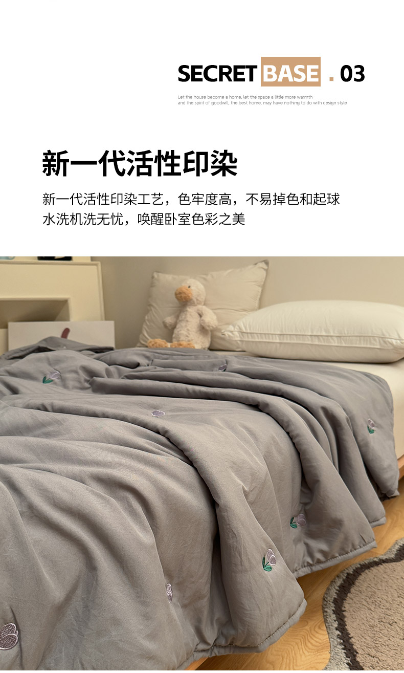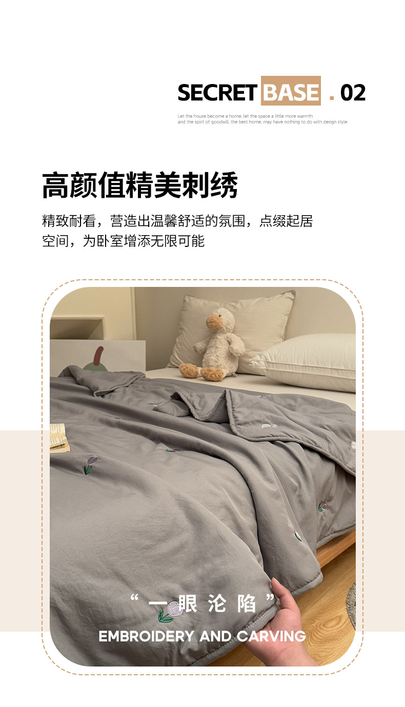 商品名称:推推家纺2025新款简约系列水洗棉刺绣夏被 郁金香-灰色