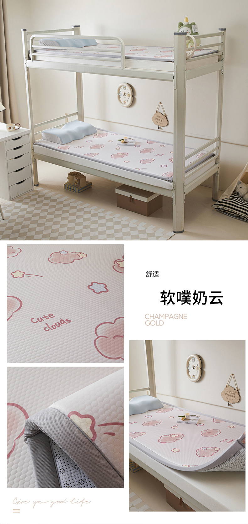 商品名称:川悦生活 2025新款数码印花冰豆豆凉席床垫-学生床 软噗奶云