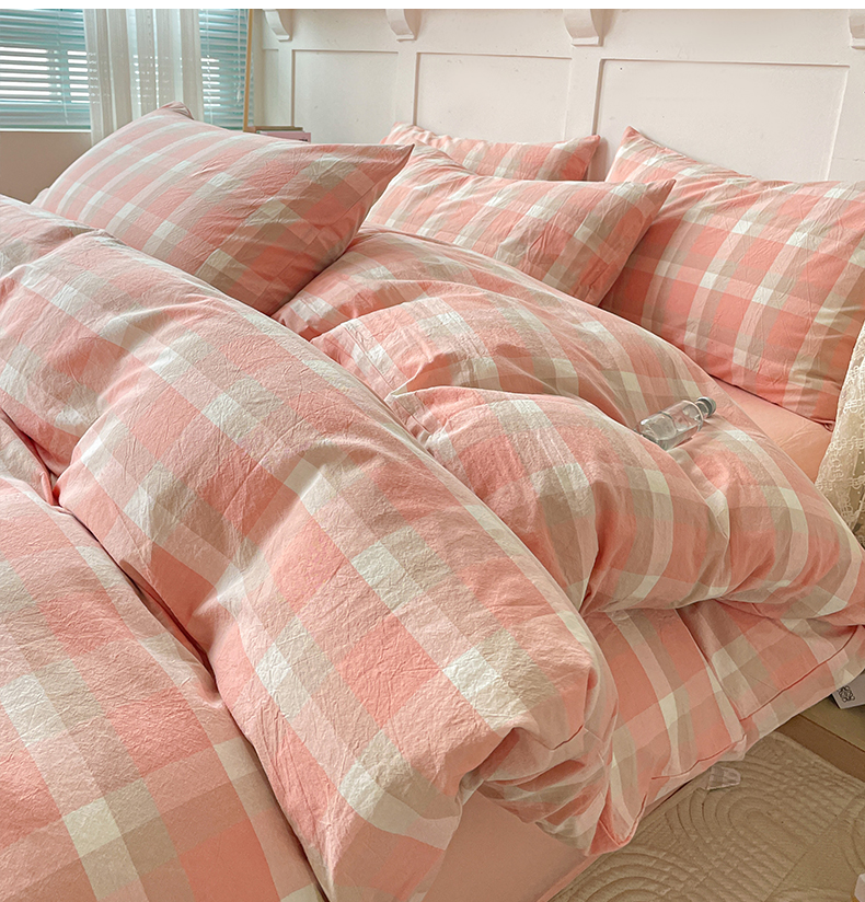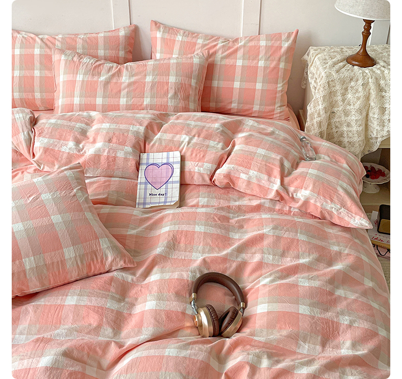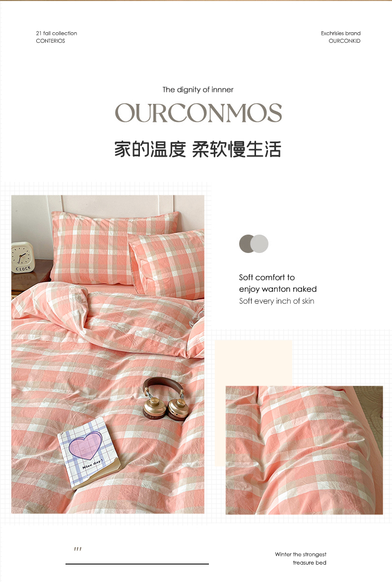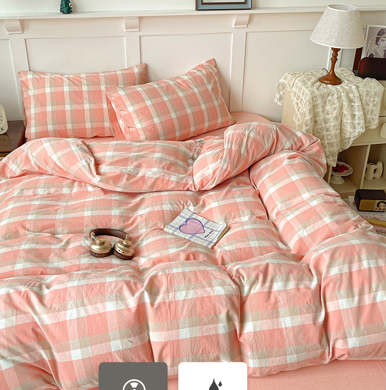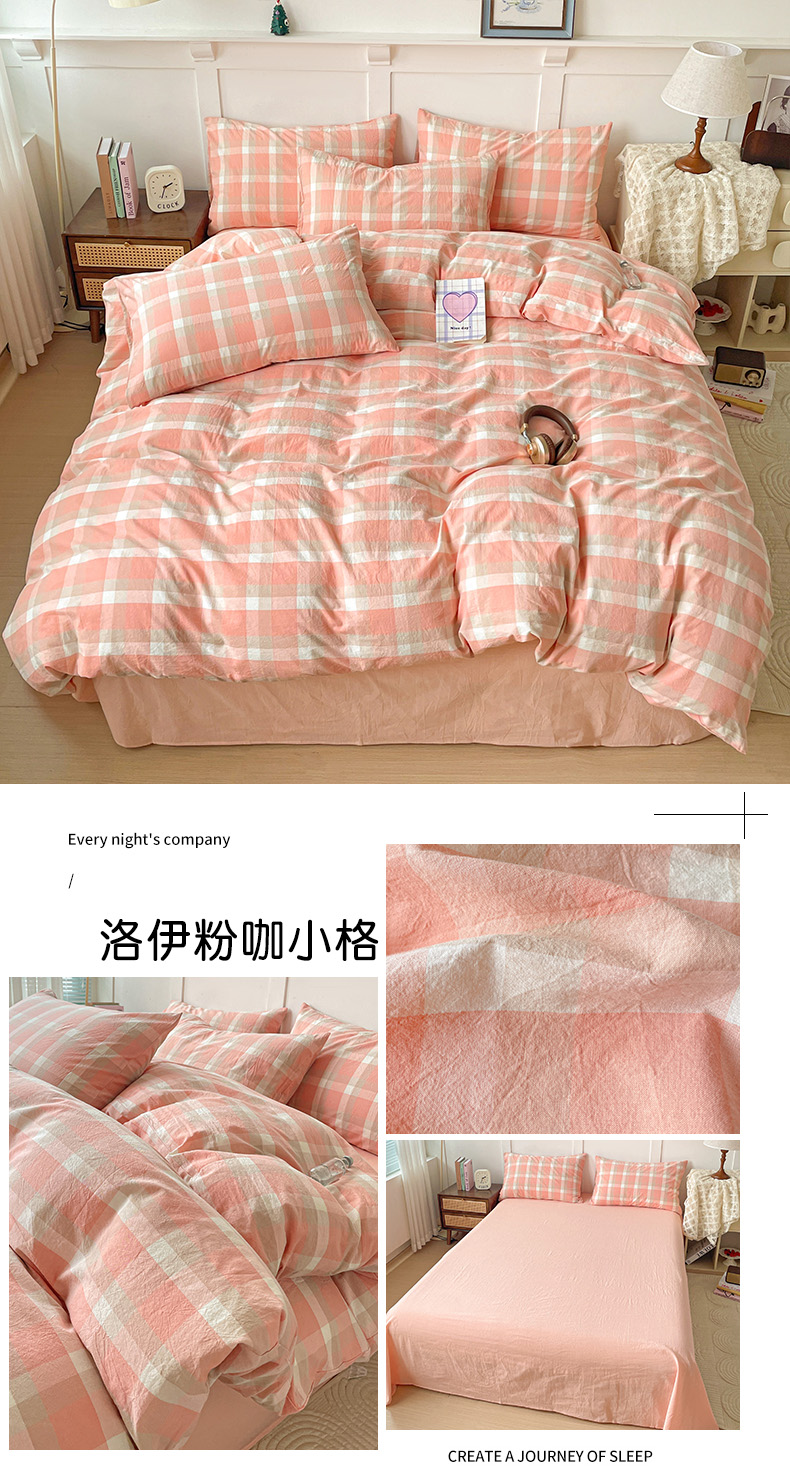 当前位置: 91家纺网 > 商品网购 > 床品套件 > 四件套 > 水洗棉四件套 > 大柏树 2025新款全棉水洗棉套件-床单四件套 洛伊粉咖小格