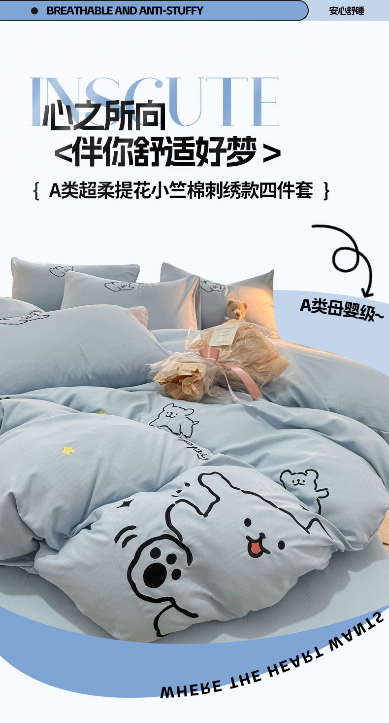 当前位置: 91家纺网 > 商品网购 > 床品套件 > 四件套 > 针织棉四件套 > 多乐家纺 2025新款超柔加厚有氧提花针织小竺棉绣花四件套(提供买家秀) 小白-蓝蓝
