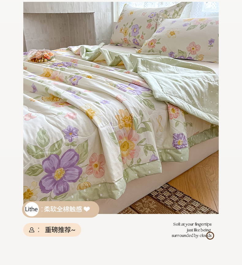 当前位置: 91家纺网 > 商品网购 > 被子 > 普通夏被 > 晨希家居 2025春夏新款全棉纯棉印花夏被夏凉被空调被 恬静