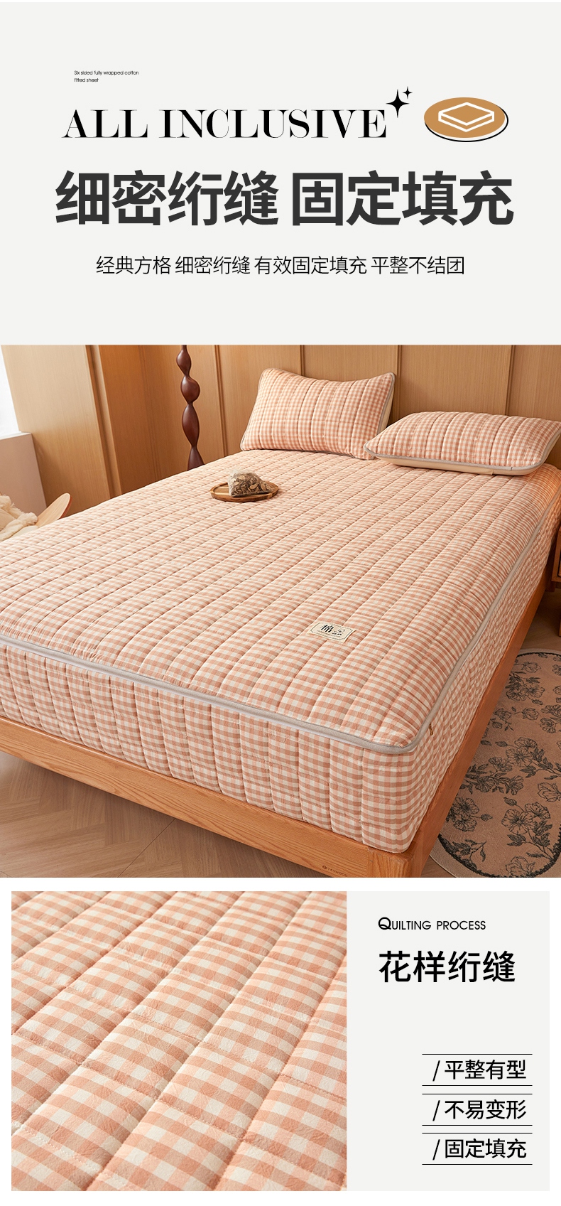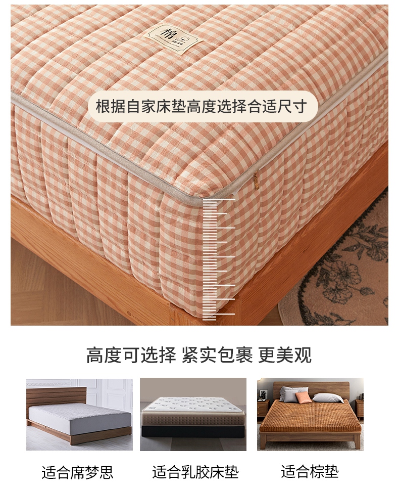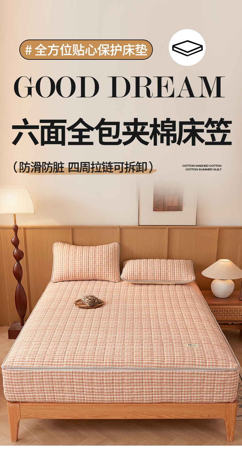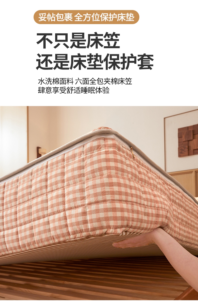 当前位置: 91家纺网 > 商品网购 > 床上用品 > 床垫套 > 伊人坊2025新款全棉色织水洗棉六面全包床笠床垫保护套无印风 夹棉床围-粉小格