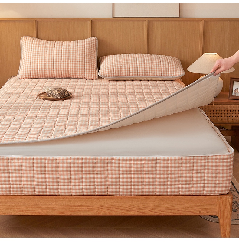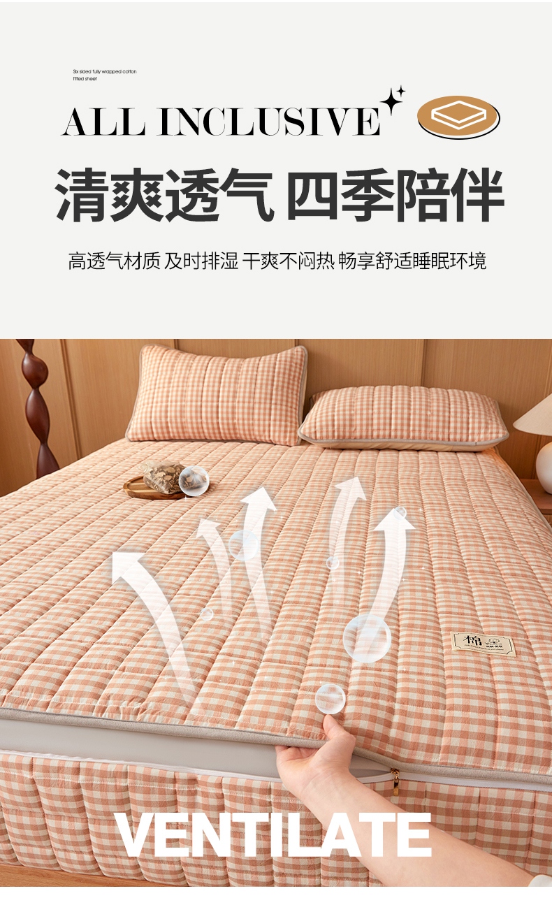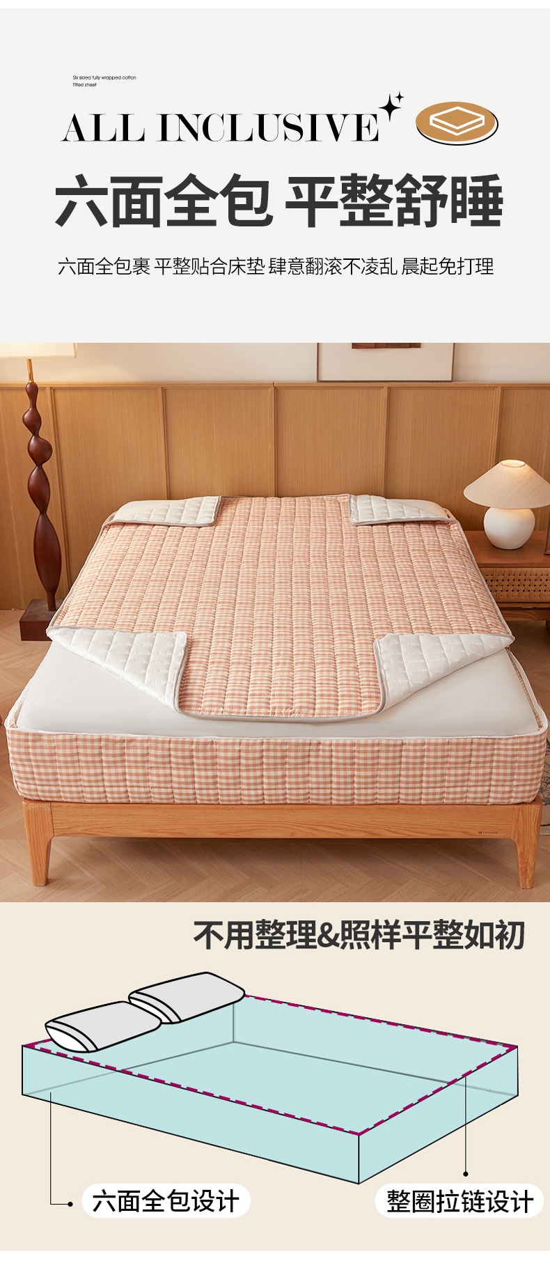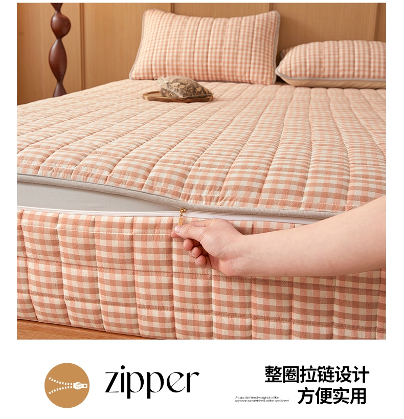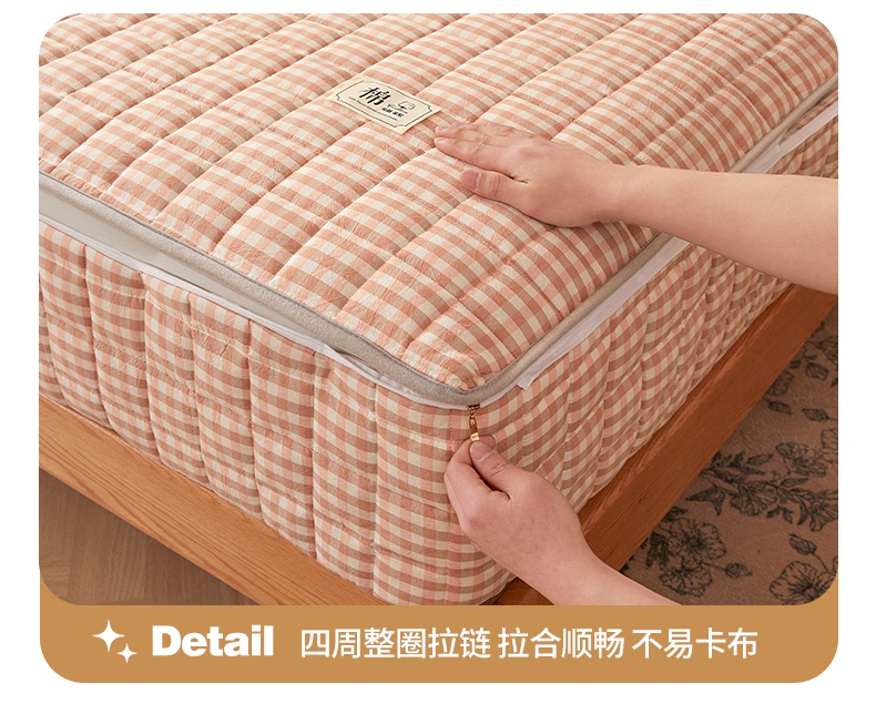 当前位置: 91家纺网 > 商品网购 > 床上用品 > 床垫套 > 伊人坊2025新款全棉色织水洗棉六面全包床笠床垫保护套无印风 夹棉床围-粉小格