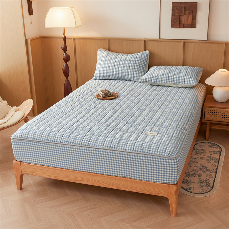 当前位置: 91家纺网 > 商品网购 > 床上用品 > 床垫套 > 伊人坊2025新款全棉色织水洗棉六面全包床笠床垫保护套无印风 单层床围-蓝小格