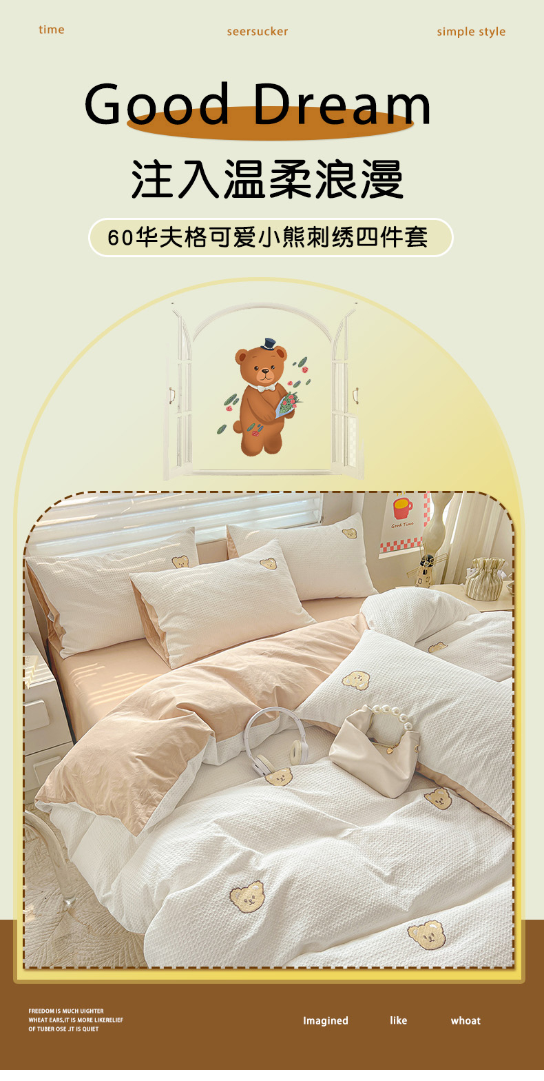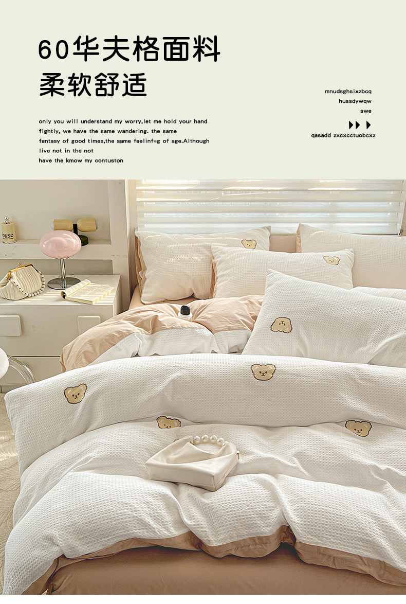 当前位置: 91家纺网 > 商品网购 > 床品套件 > 四件套 > 全棉普通四件套 > 静家居 2025新款全棉纯棉华夫格北欧小熊刺绣四件套系列-风格一 北欧小熊-白咖