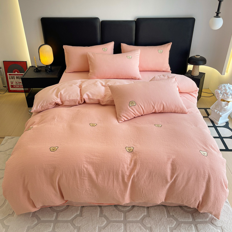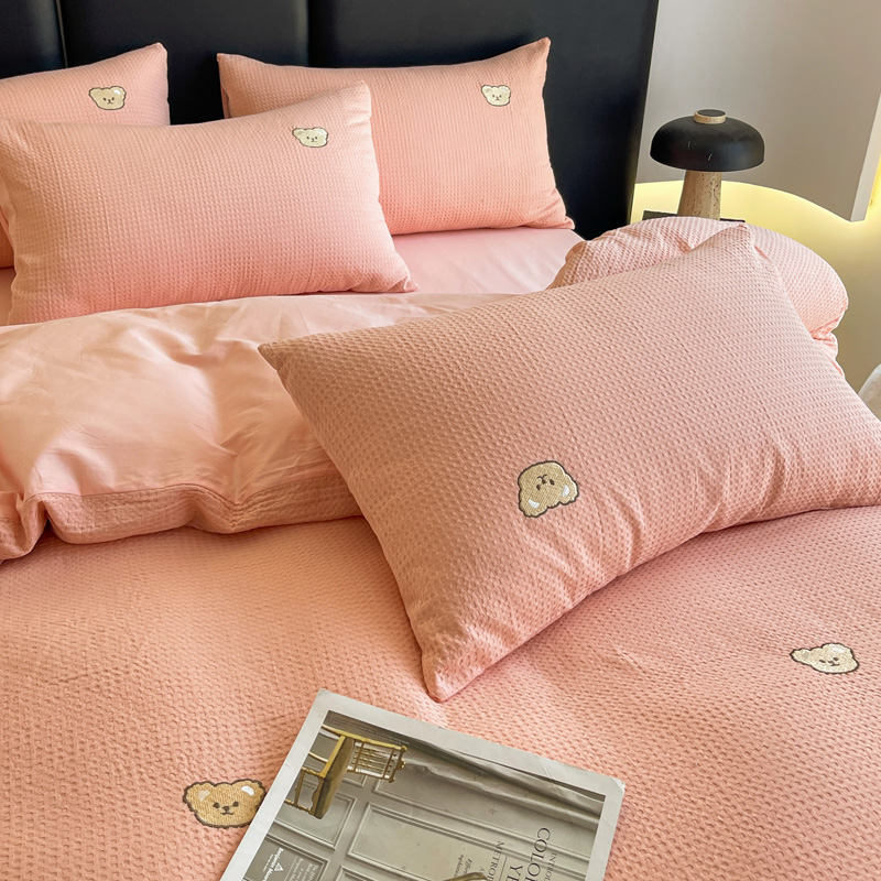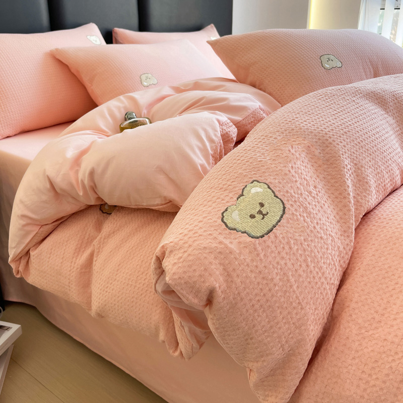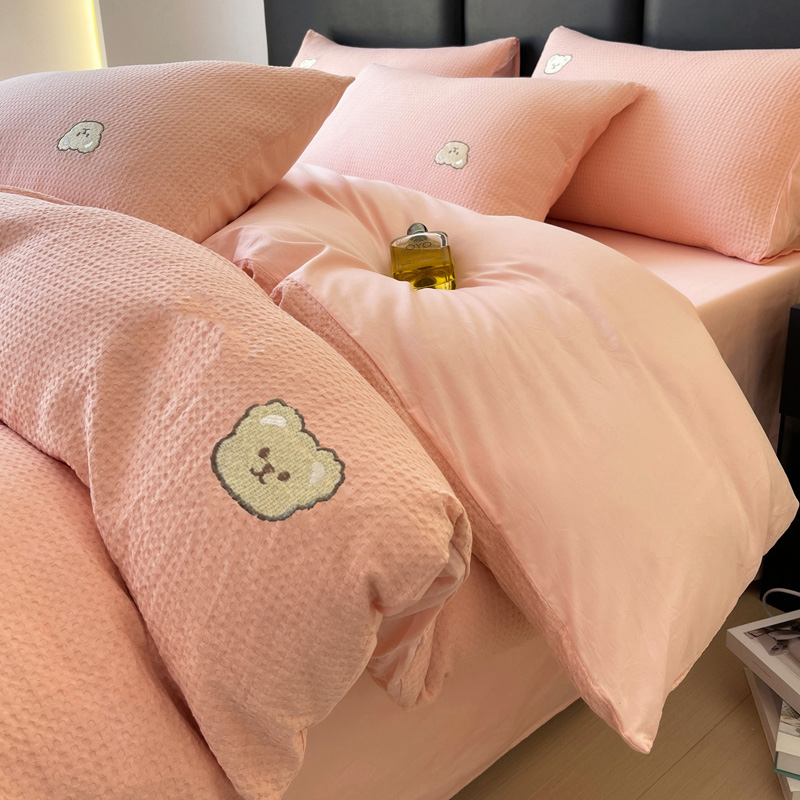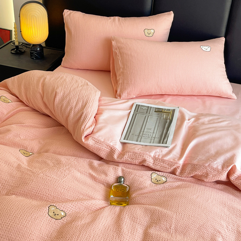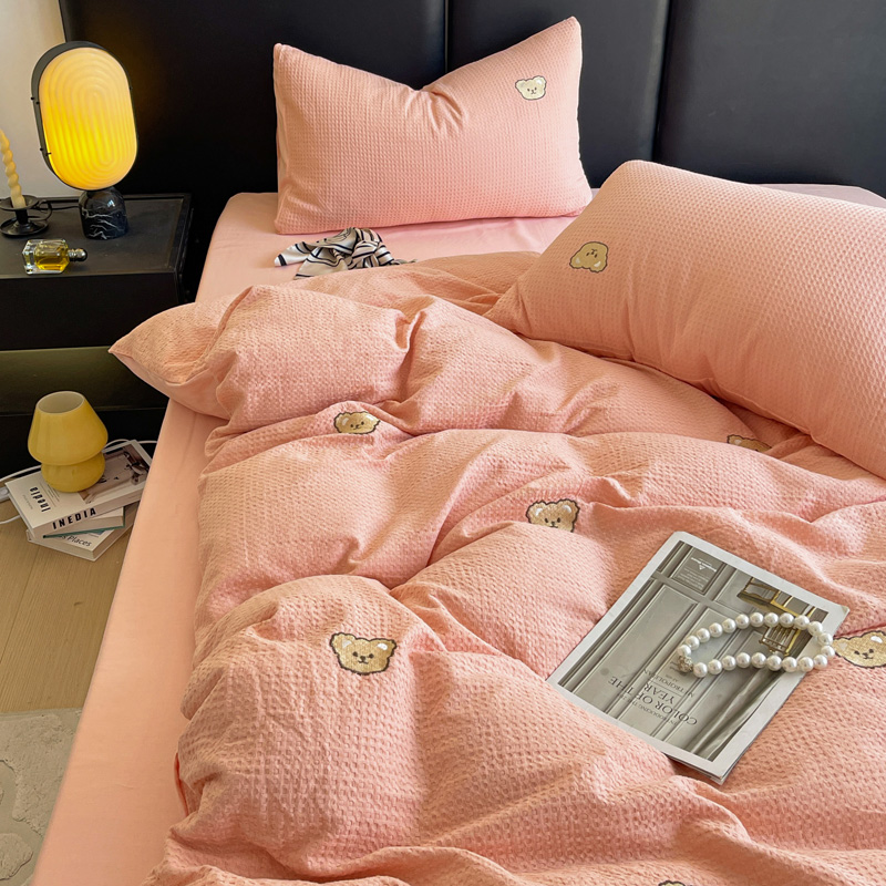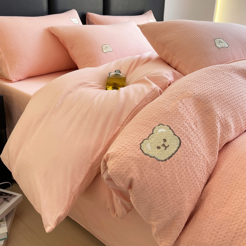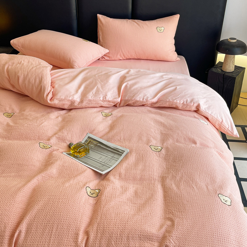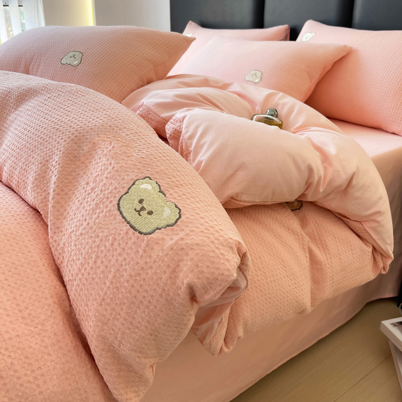 当前位置: 91家纺网 > 商品网购 > 床品套件 > 四件套 > 全棉普通四件套 > 静家居 2025新款全棉纯棉华夫格北欧小熊刺绣四件套系列-风格二 北欧小熊-粉玉