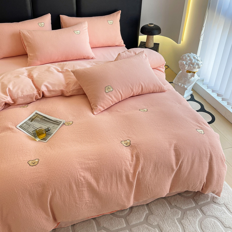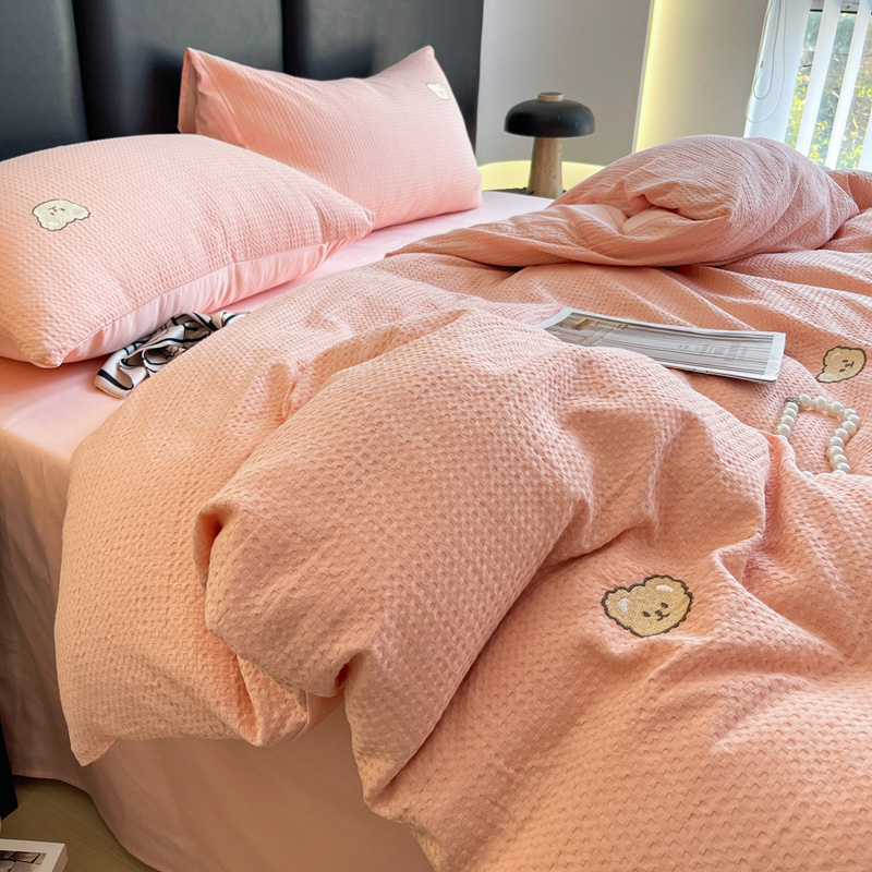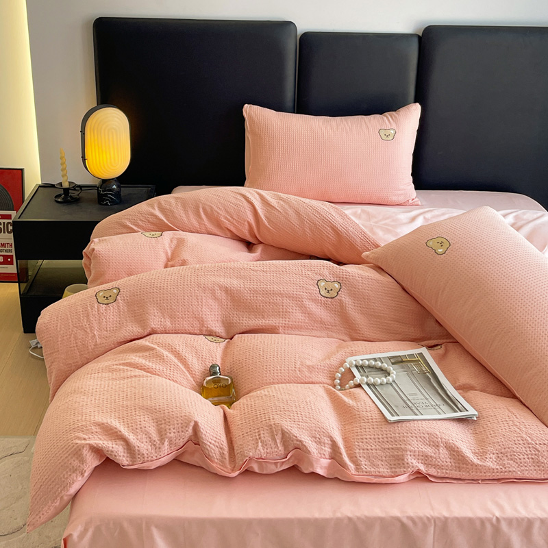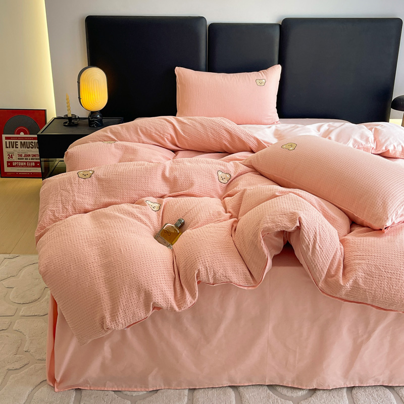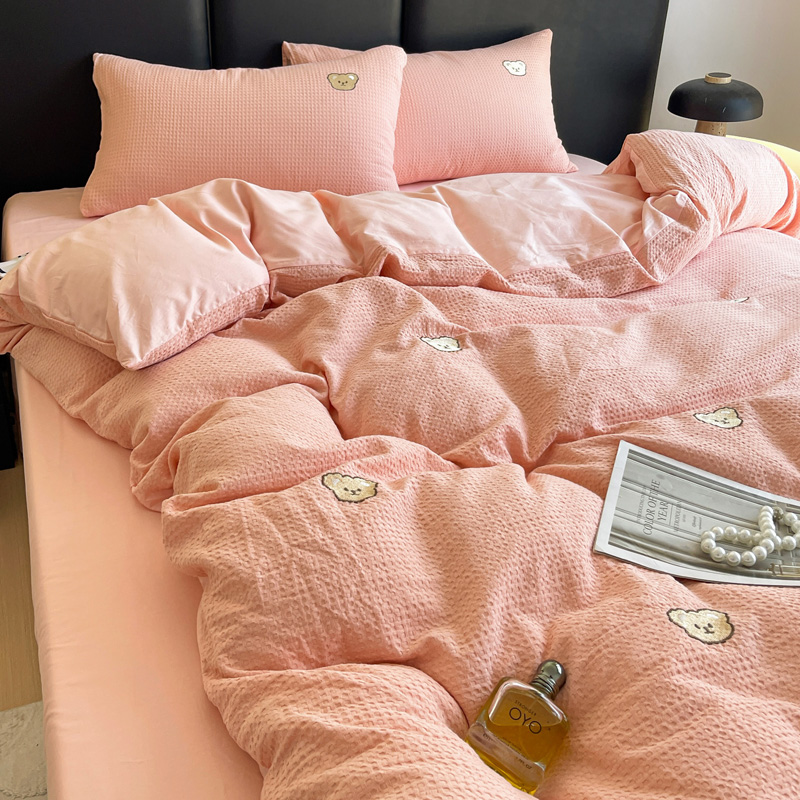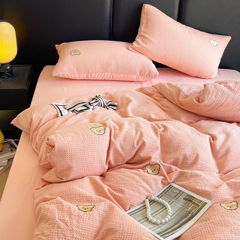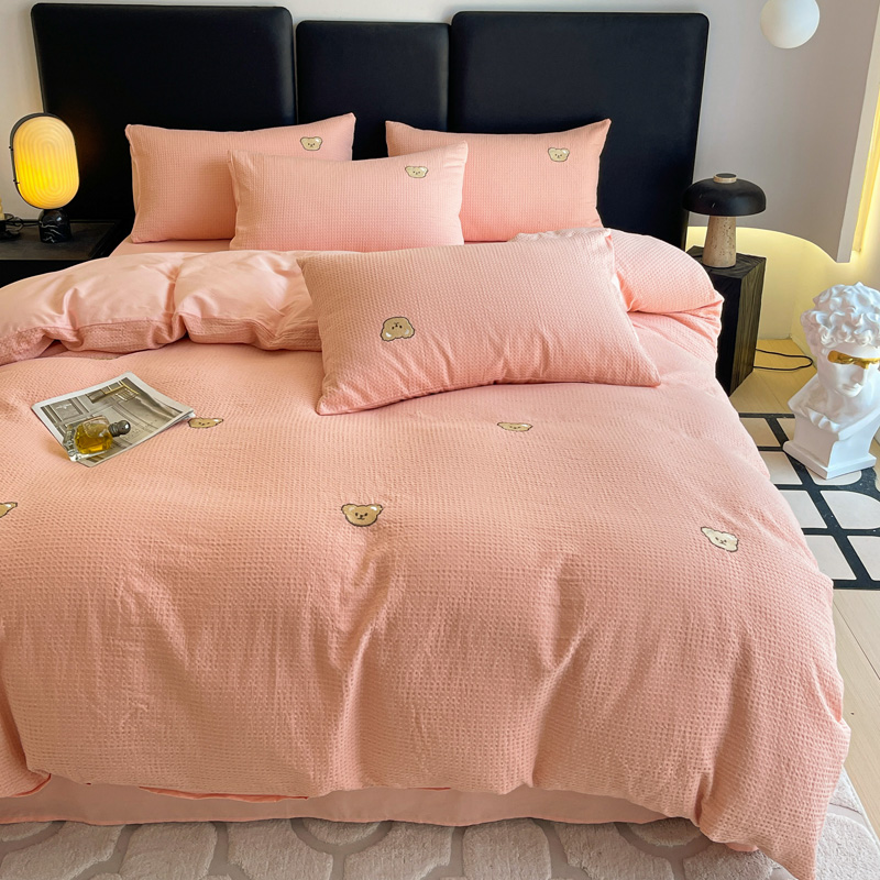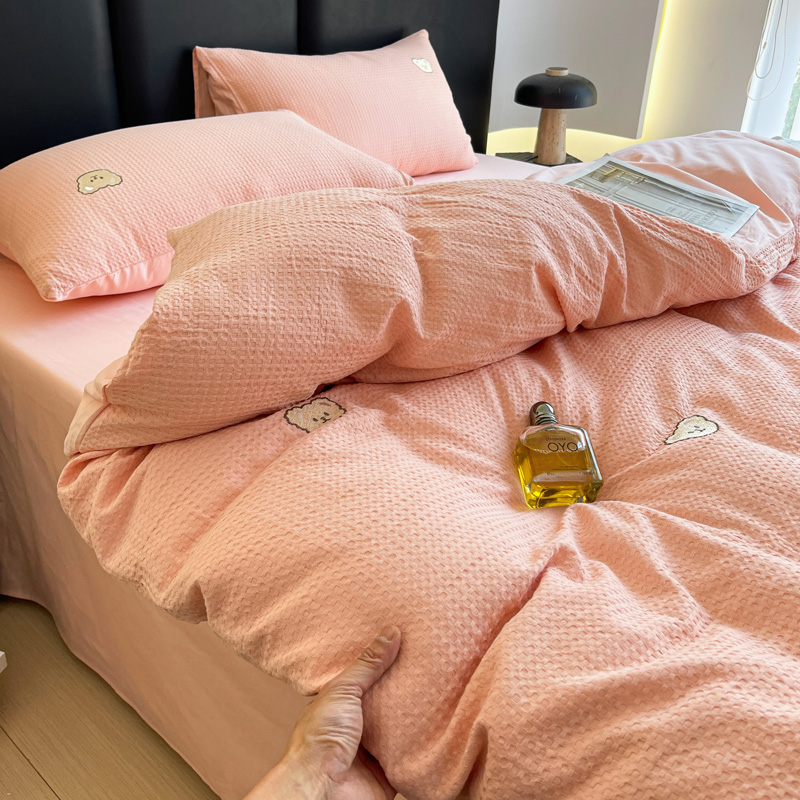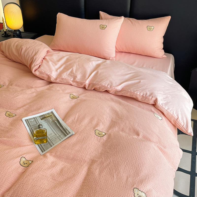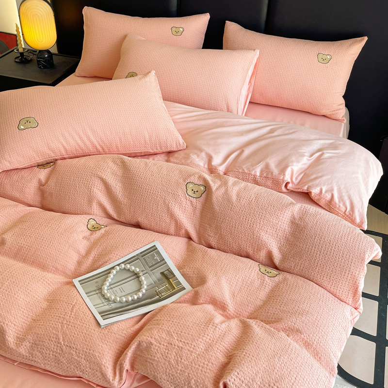 当前位置: 91家纺网 > 商品网购 > 床品套件 > 四件套 > 全棉普通四件套 > 静家居 2025新款全棉纯棉华夫格北欧小熊刺绣四件套系列-风格二 北欧小熊-粉玉