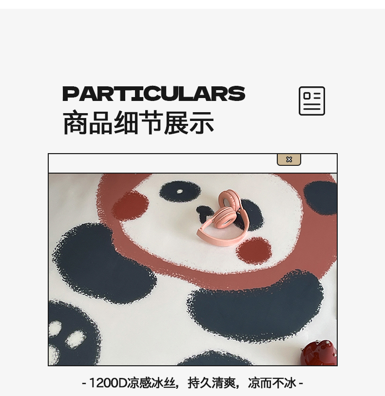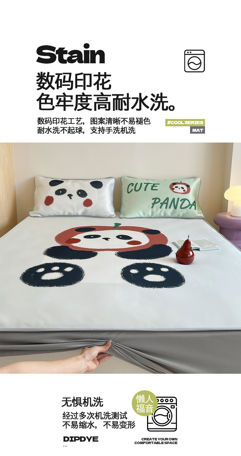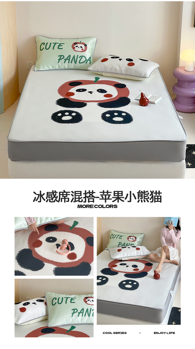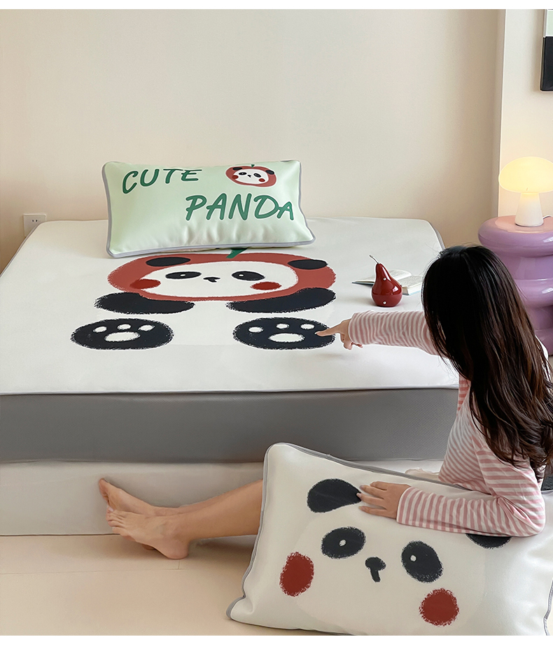 当前位置: 91家纺网 > 商品网购 > 床品套件 > 三件套 > 桃子家居 2025新款A类ins卡通数码印花1200D冰感冰丝凉席系列 冰感席混搭-苹果小熊猫