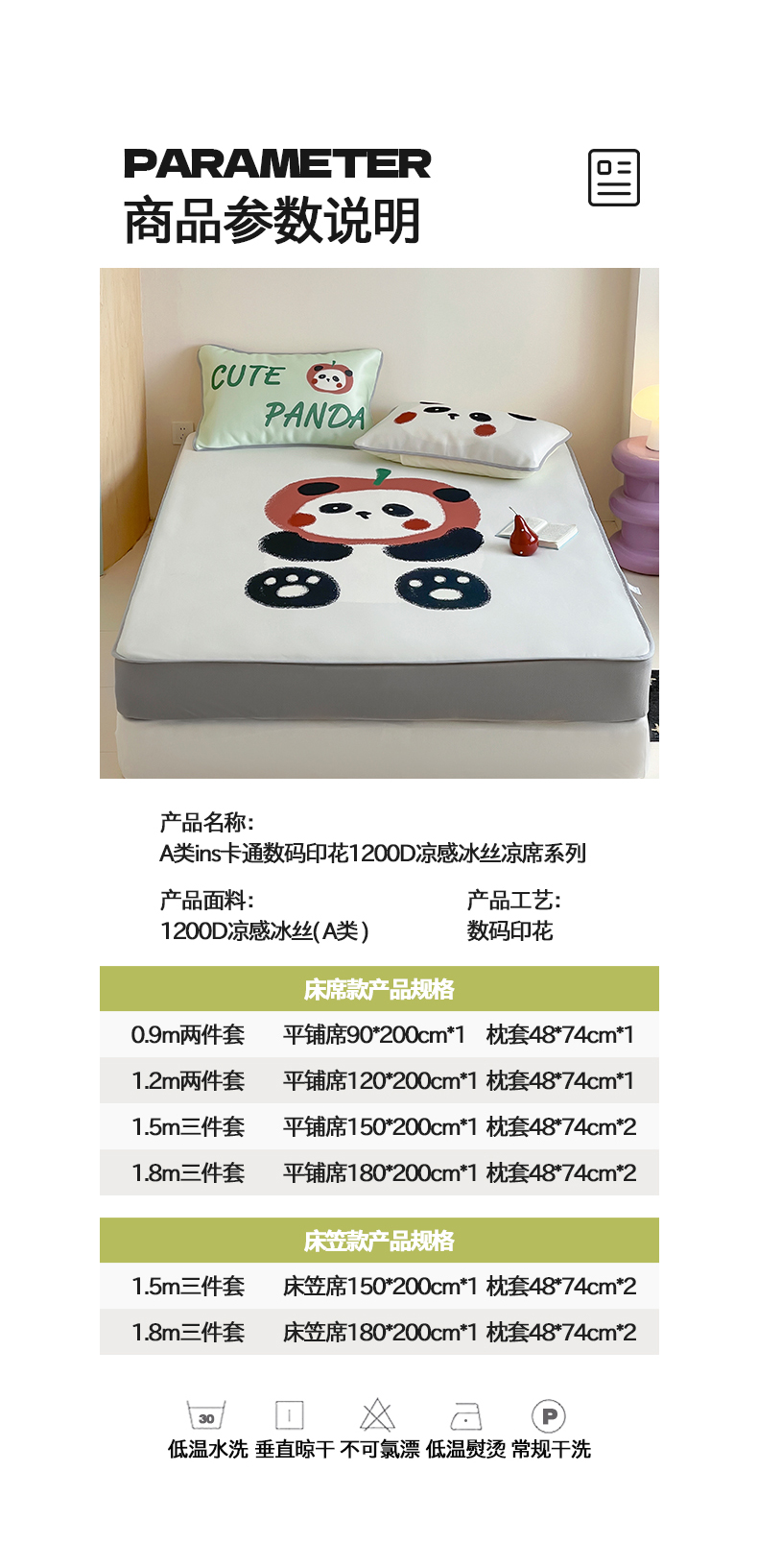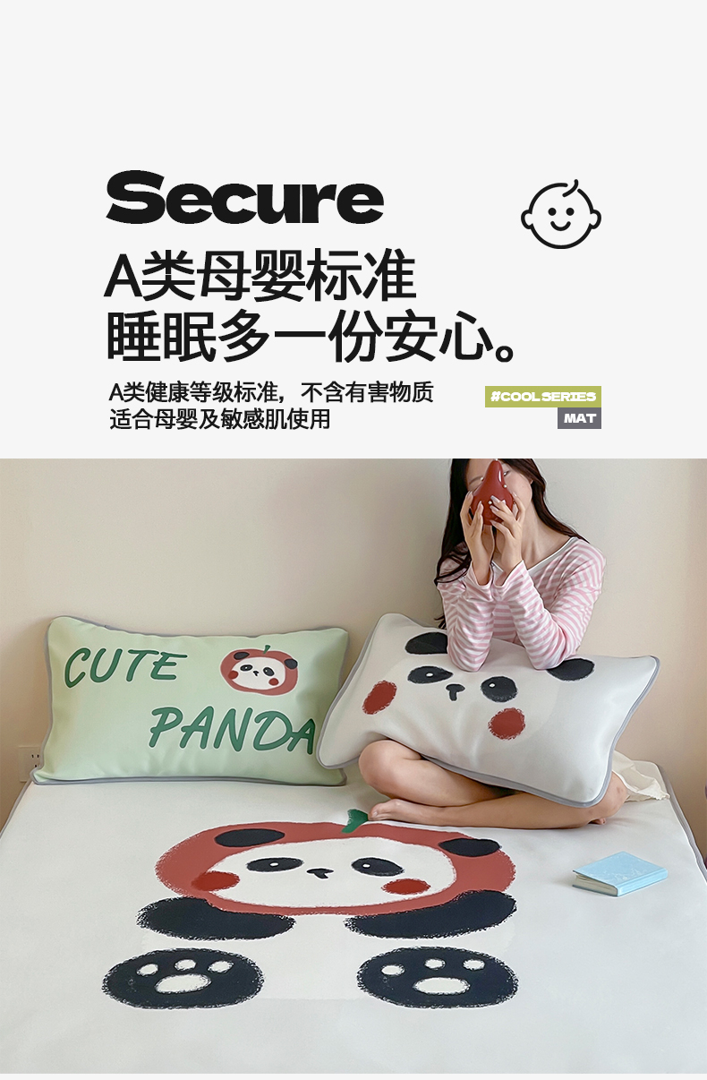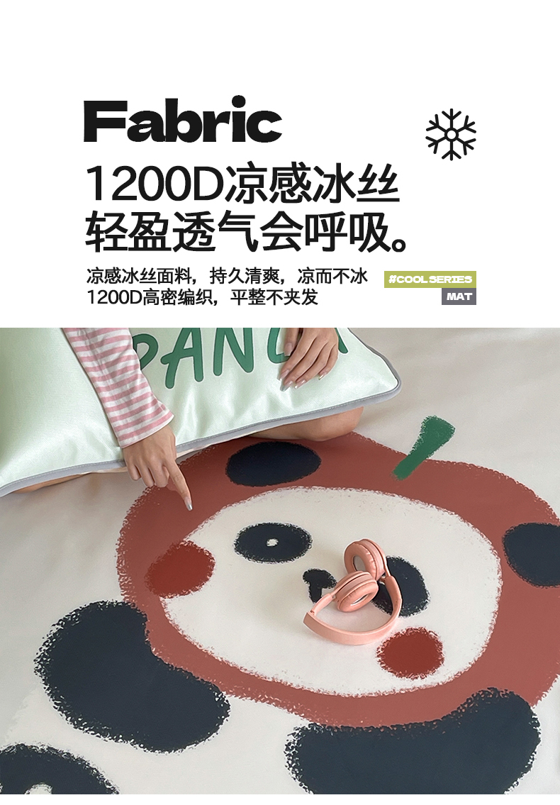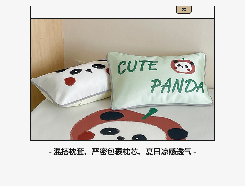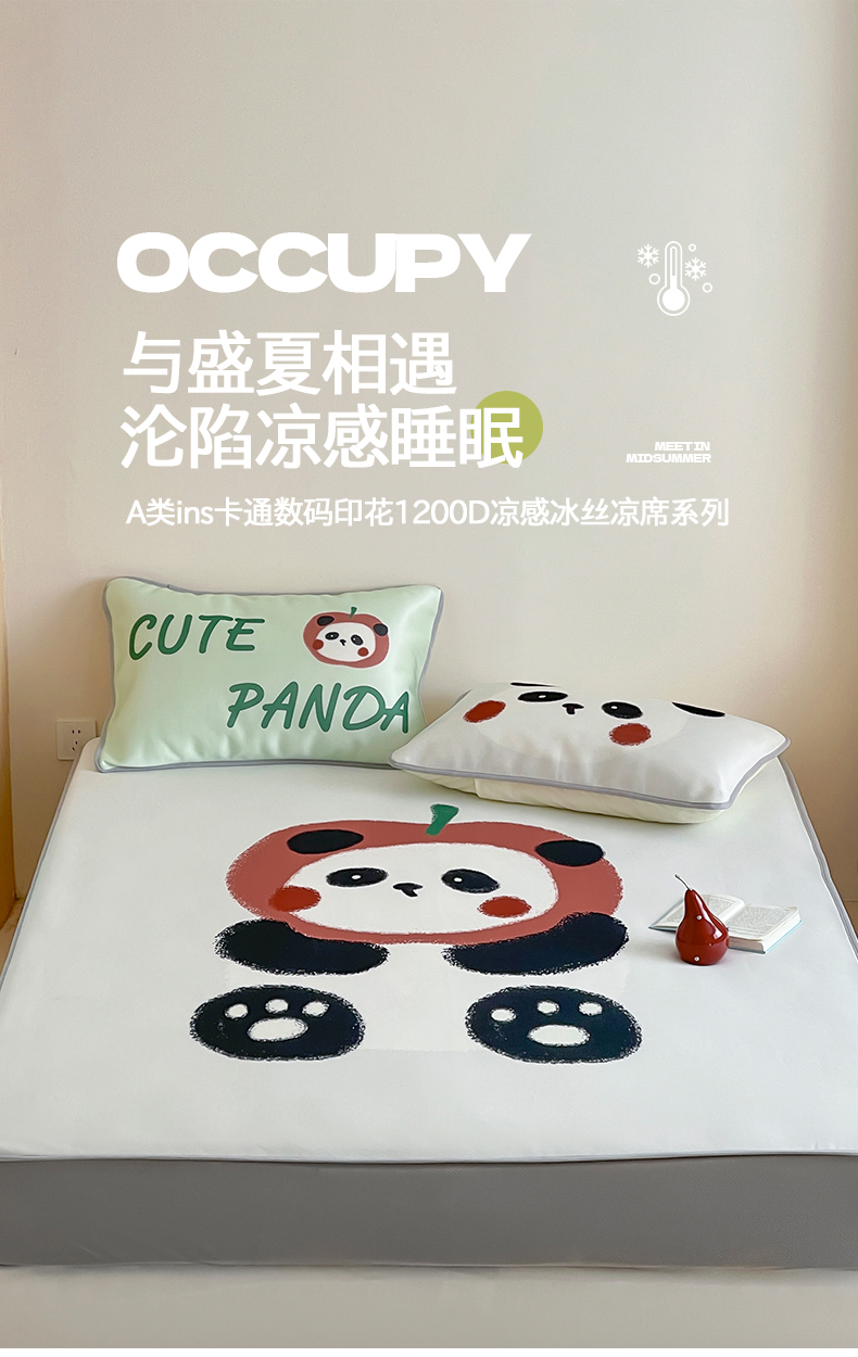 当前位置: 91家纺网 > 商品网购 > 床品套件 > 三件套 > 桃子家居 2025新款A类ins卡通数码印花1200D冰感冰丝凉席系列 冰感席混搭-苹果小熊猫