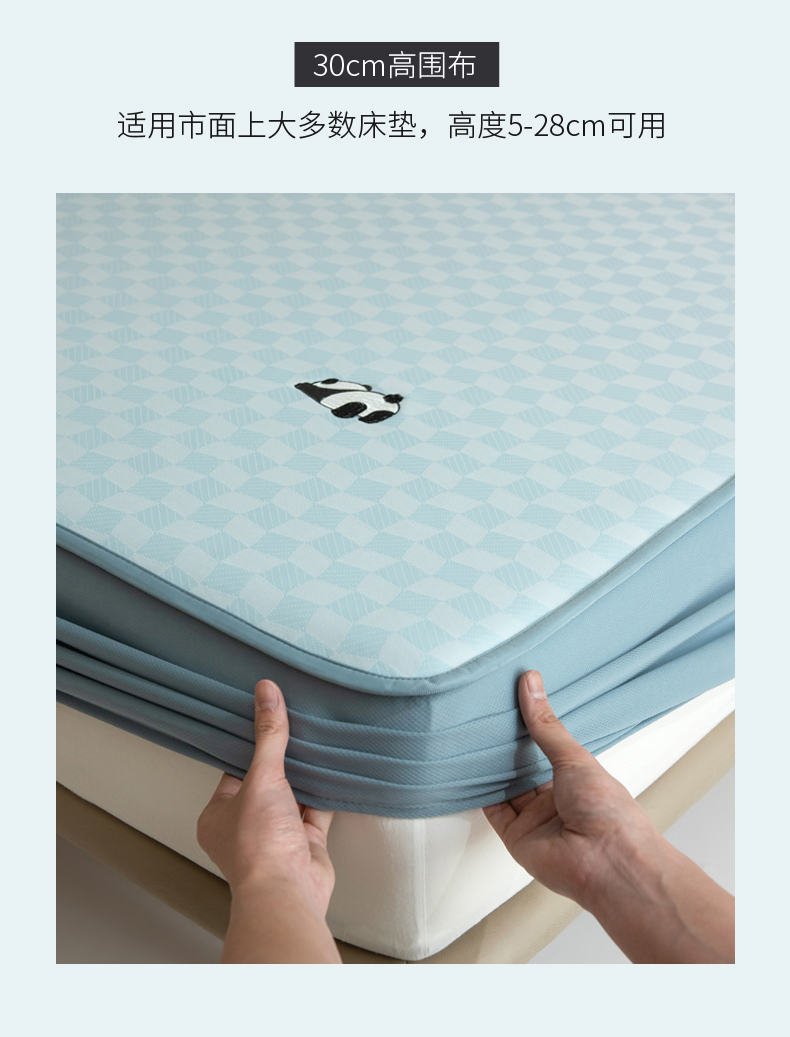 (总)席世家 2025新款绣花凉感床笠(控价198 218),格子熊猫,格子熊猫