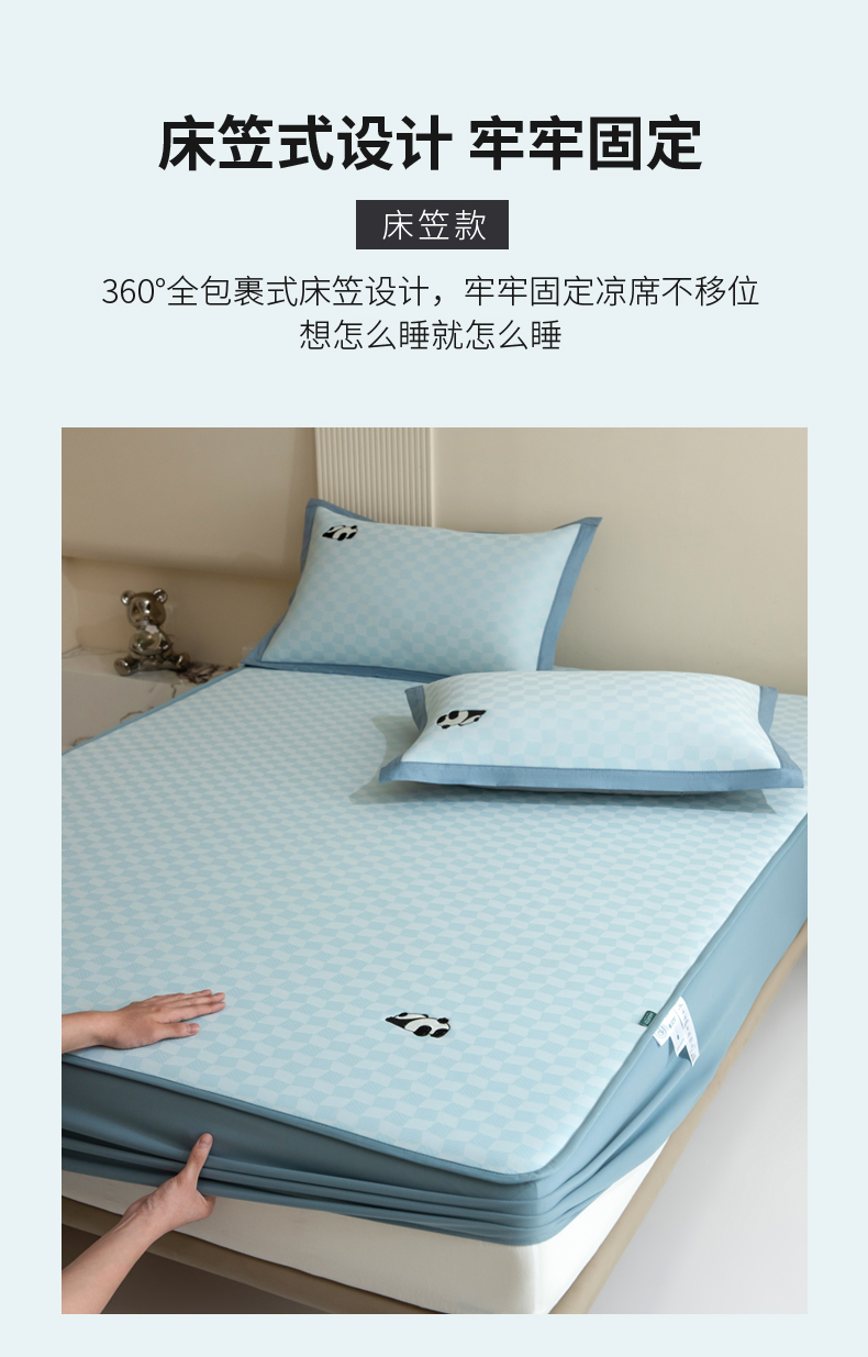 (总)席世家 2025新款A类凉感冰豆豆凉席-花卉卡通系列,呆萌熊猫,绿意,萌兔,小熊-粉,小熊-蓝,花漾