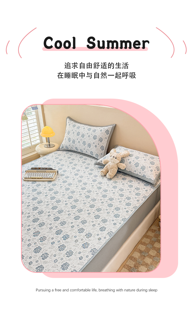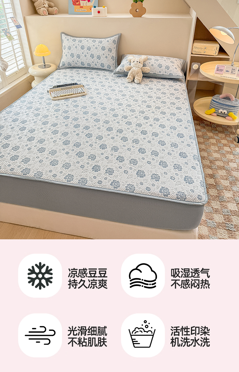 • 91家纺网 家纺一手货源 找家纺 金盛纺 2025新款冰豆豆凉席-床笠款 花期-兰