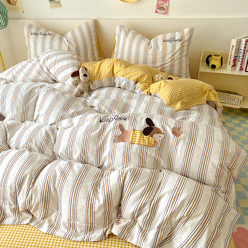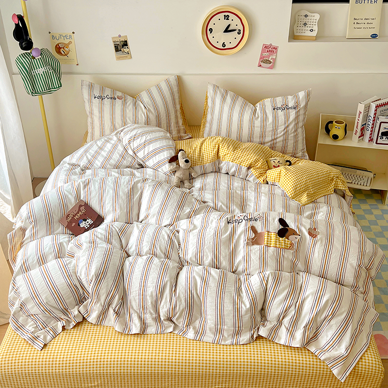 漫仙阁家纺 2025年超柔贴布绣四件套 腊肠狗—黄色
