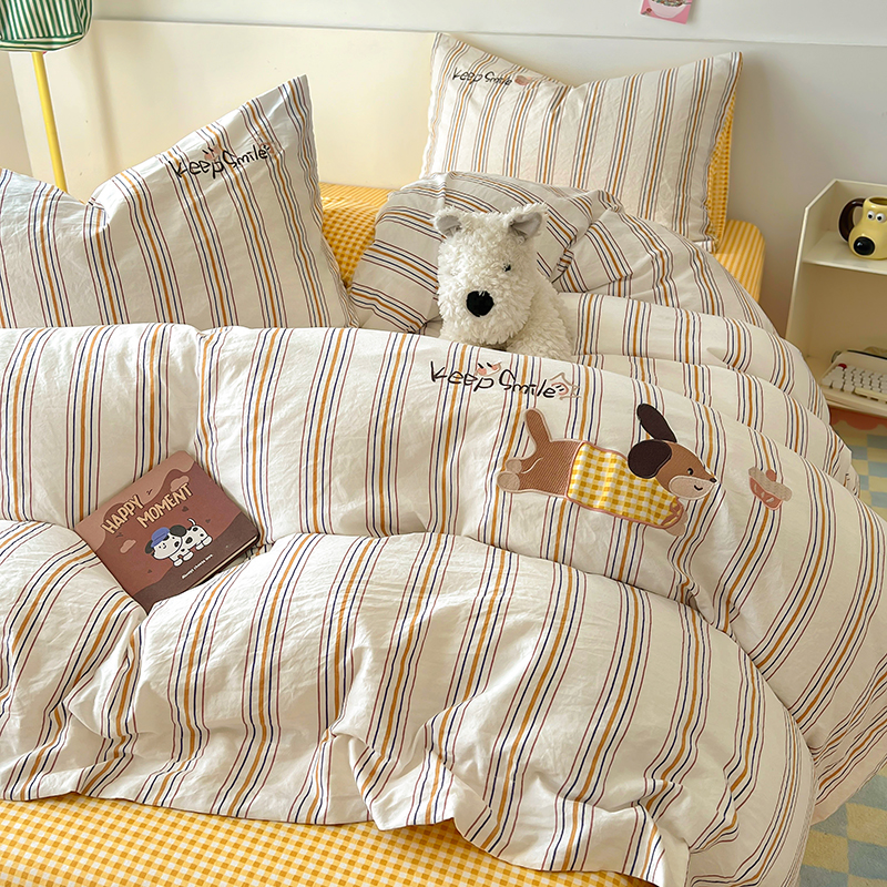 商品名称:漫仙阁家纺 2025年超柔贴布绣四件套 腊肠狗—黄色