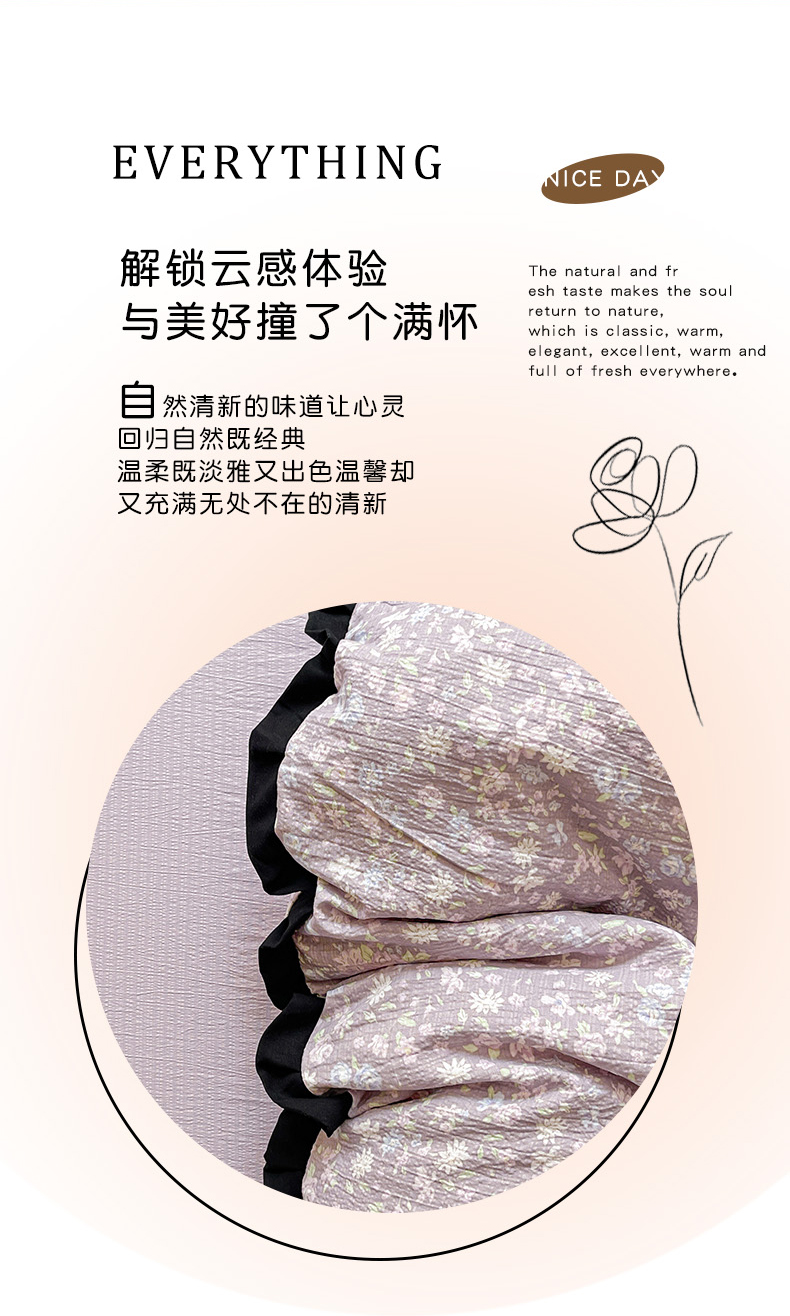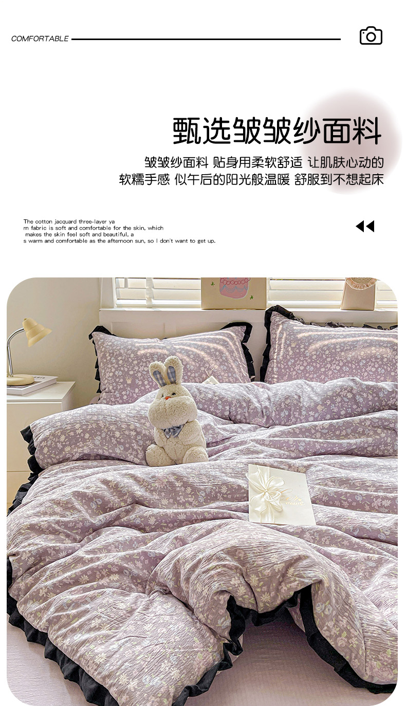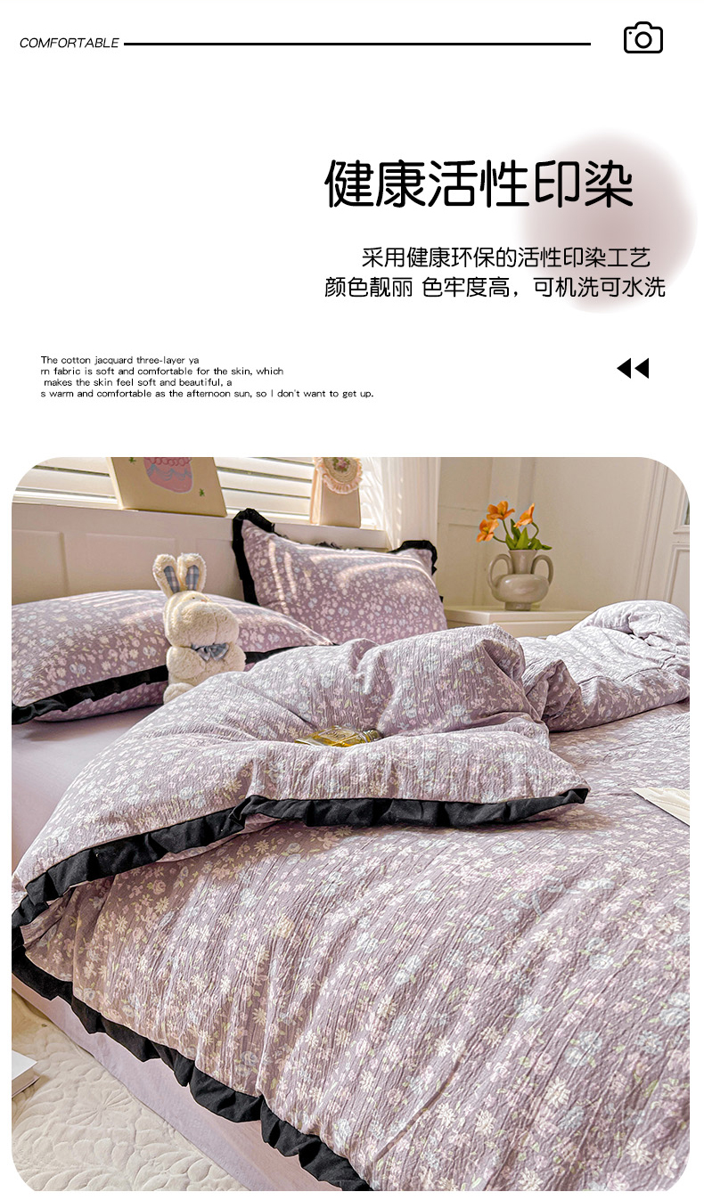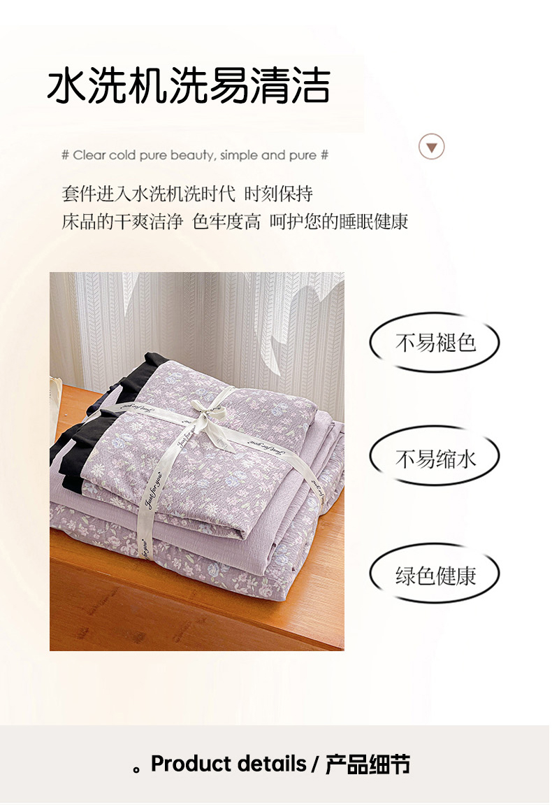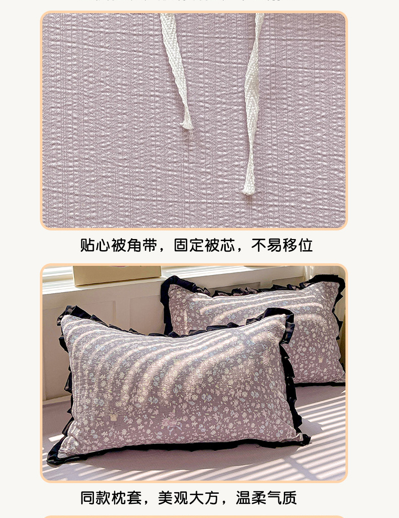 当前位置: 91家纺网 > 商品网购 > 床品套件 > 四件套 > 其它四件套 > 暖芯优选 2025新款直播热款赫本风花边款针织法式印花吊边床单三件套床笠四件套 紫萱