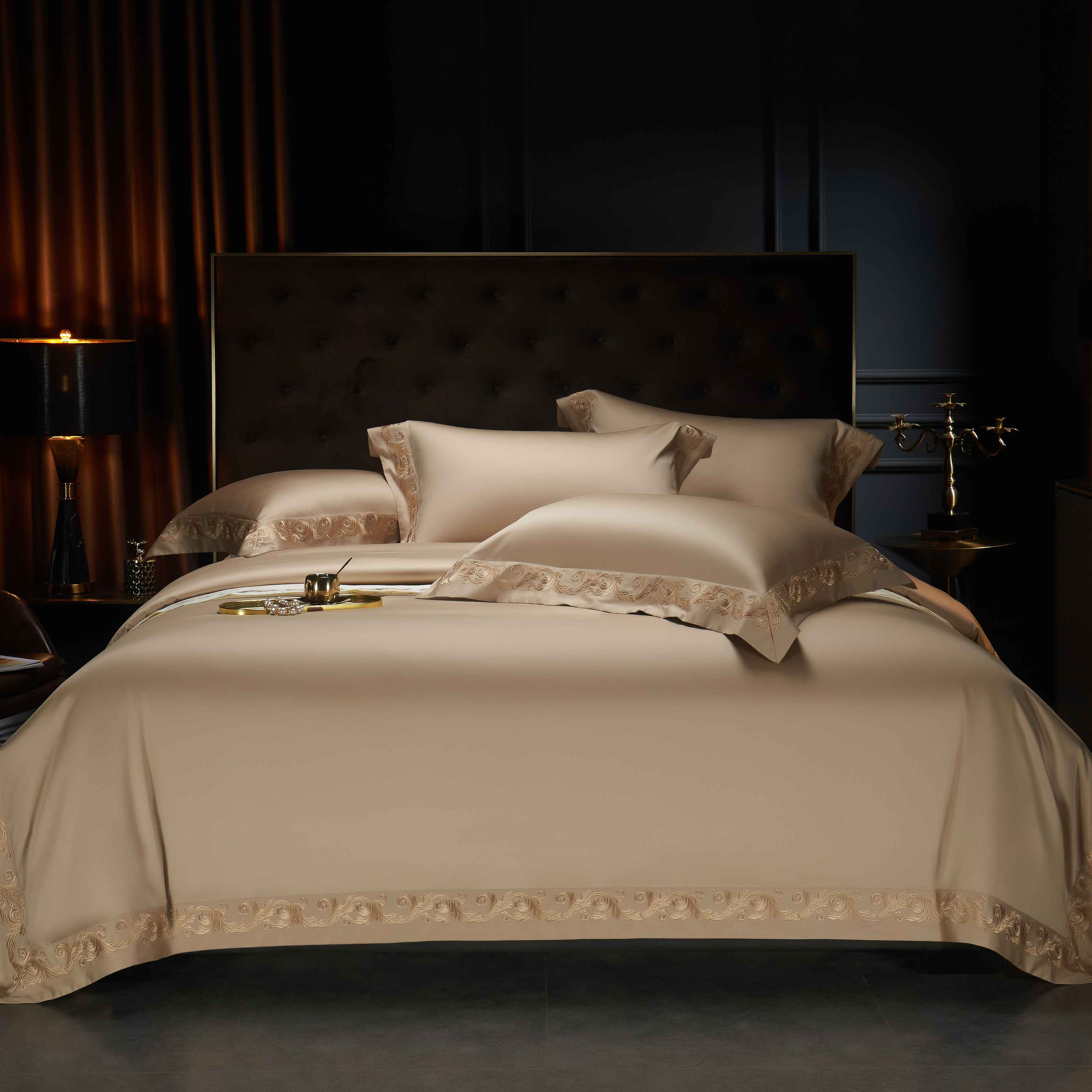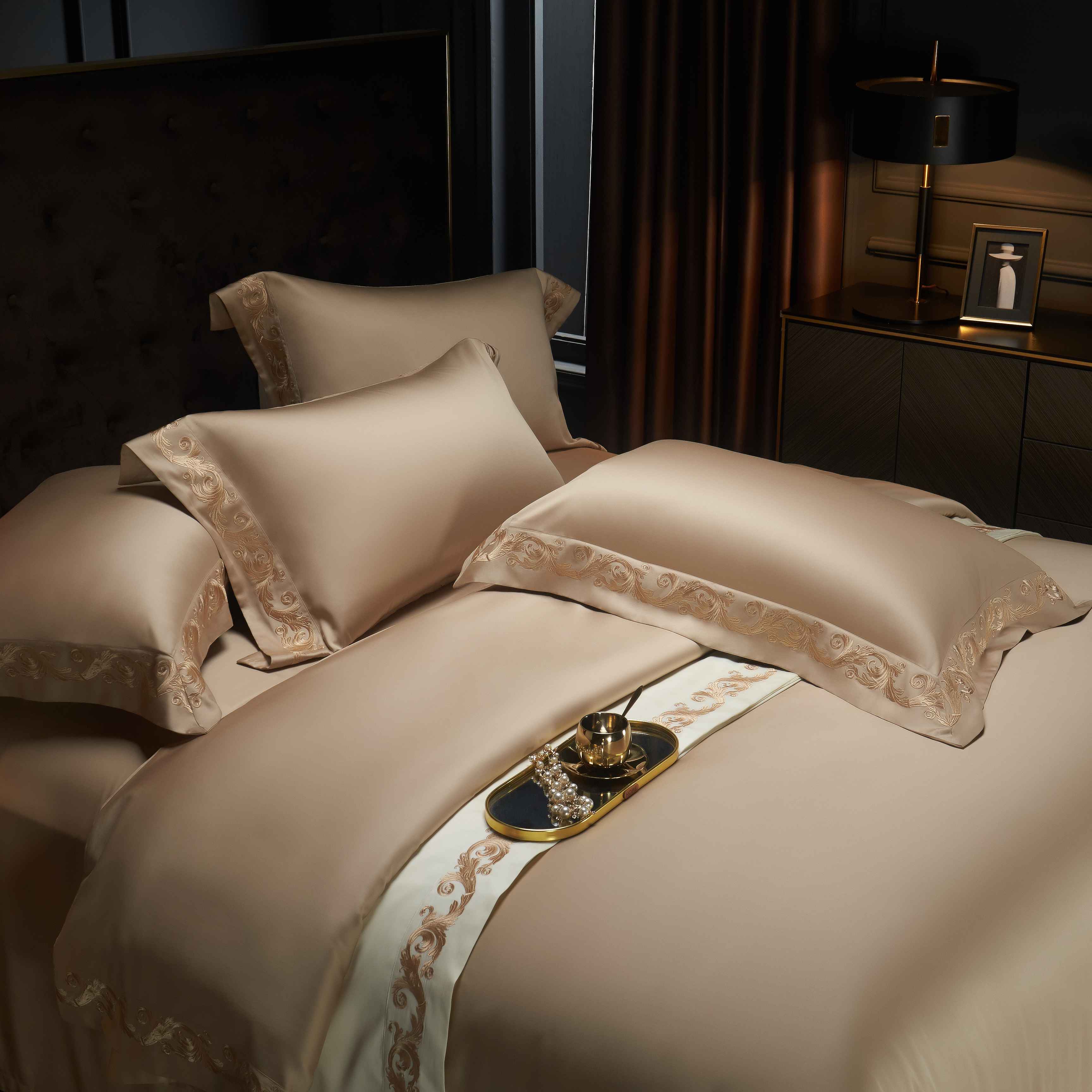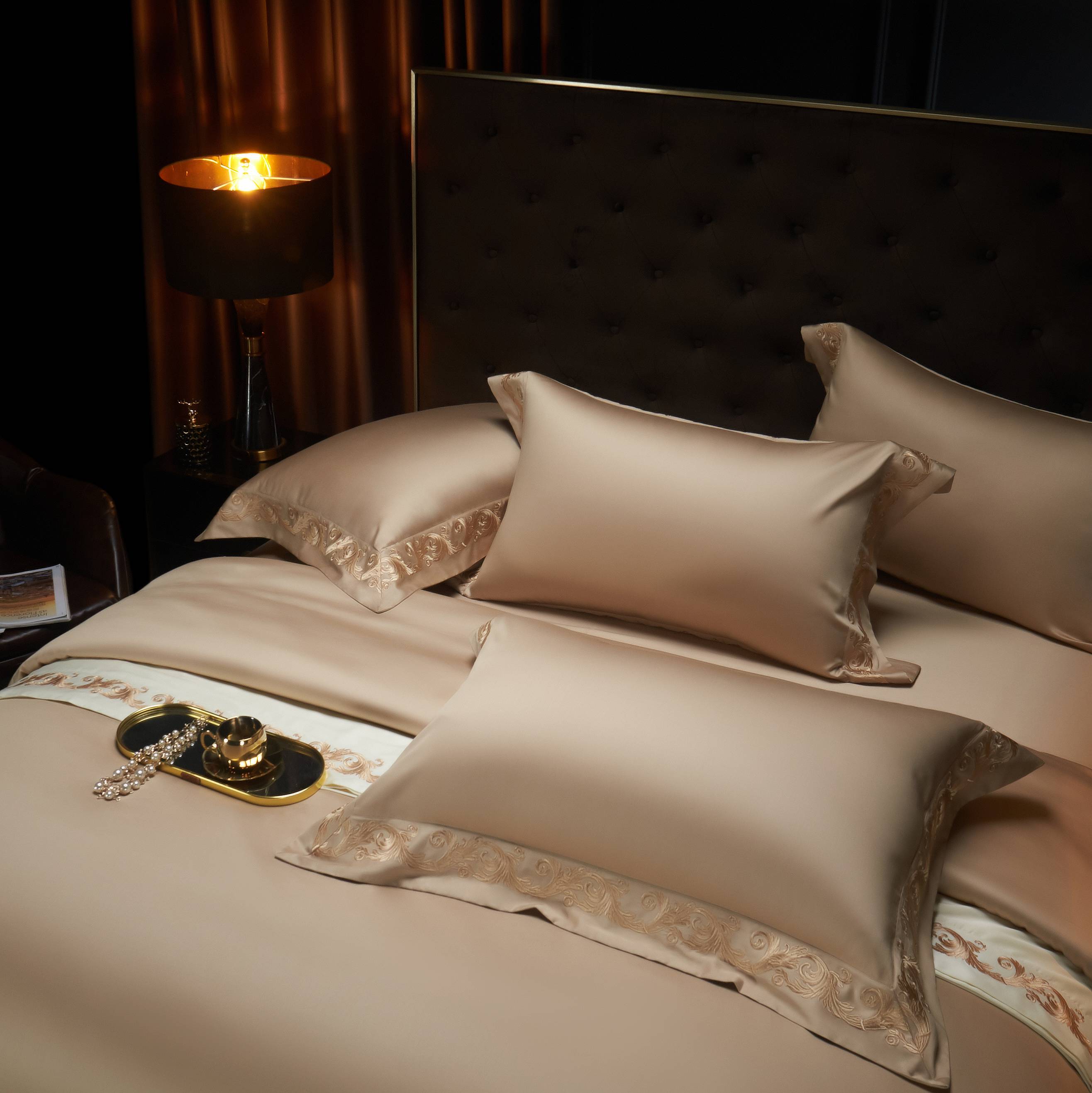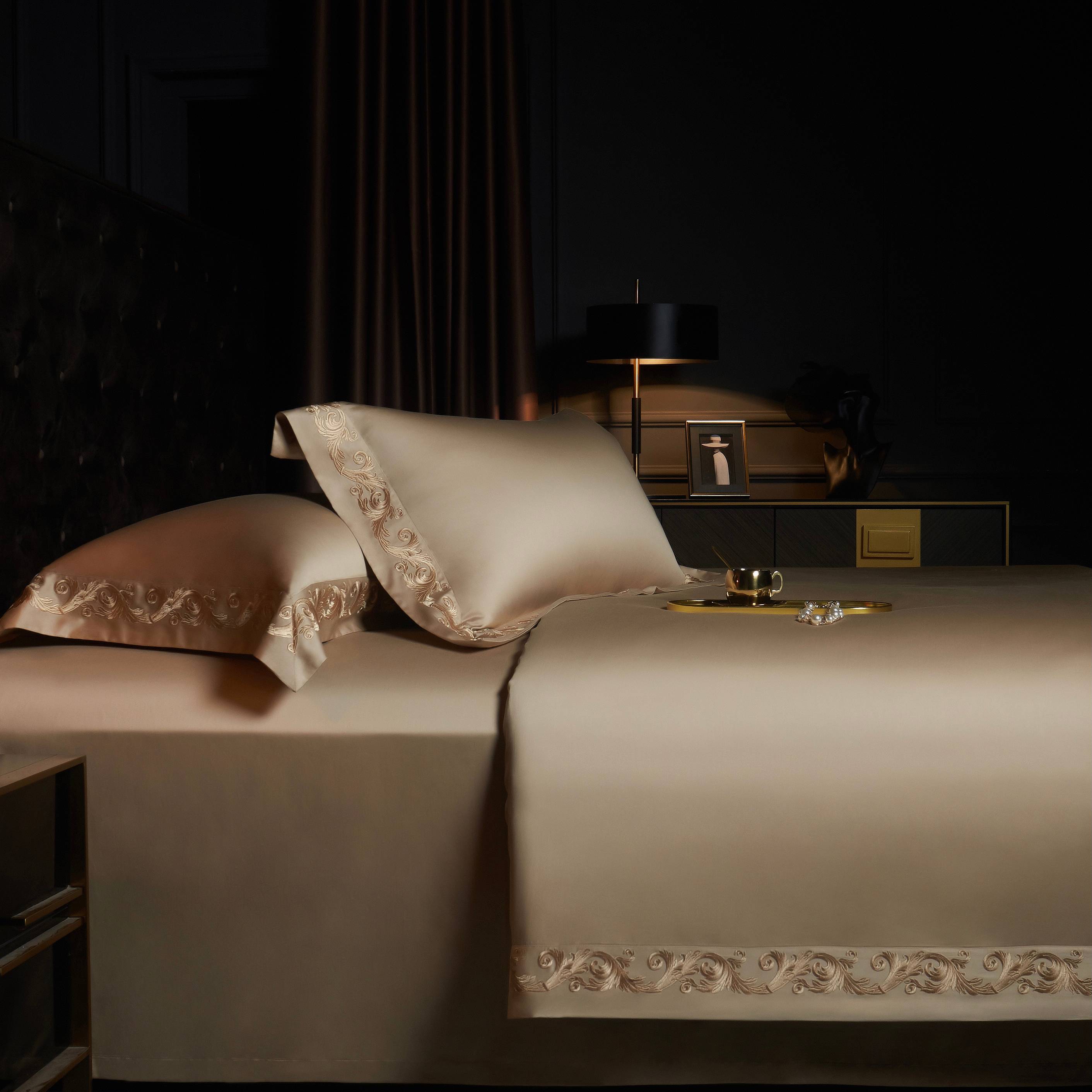 缔缦 2025新款高端定织面料S140长绒棉精梳棉重磅刺绣四件套罗莎系列 卡其