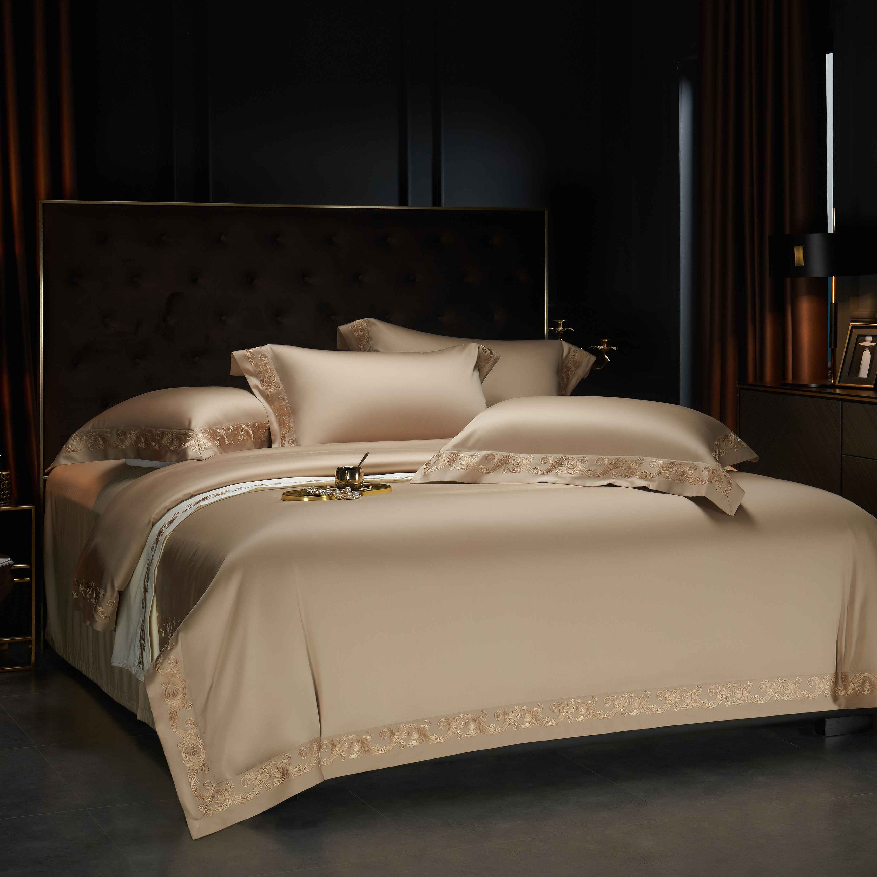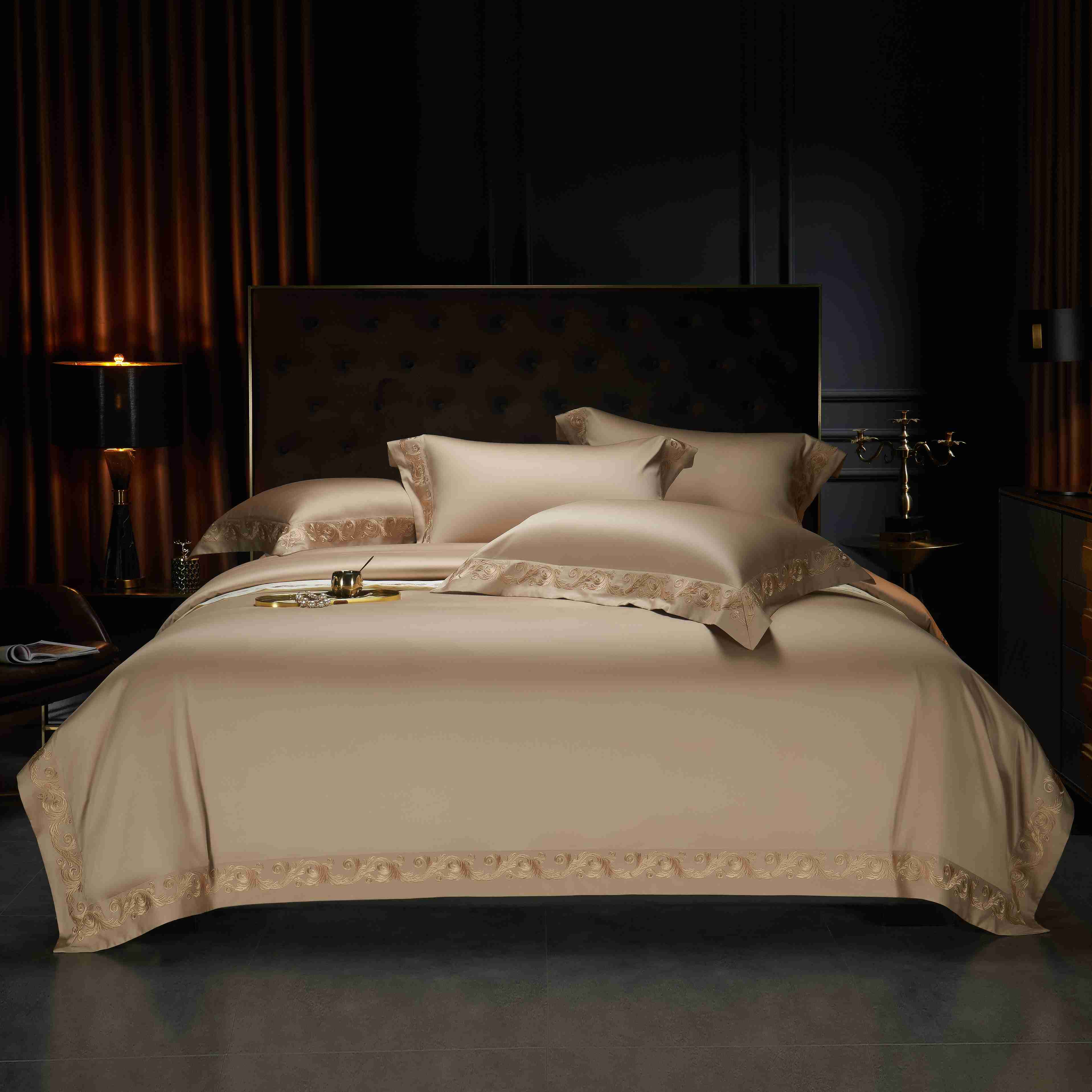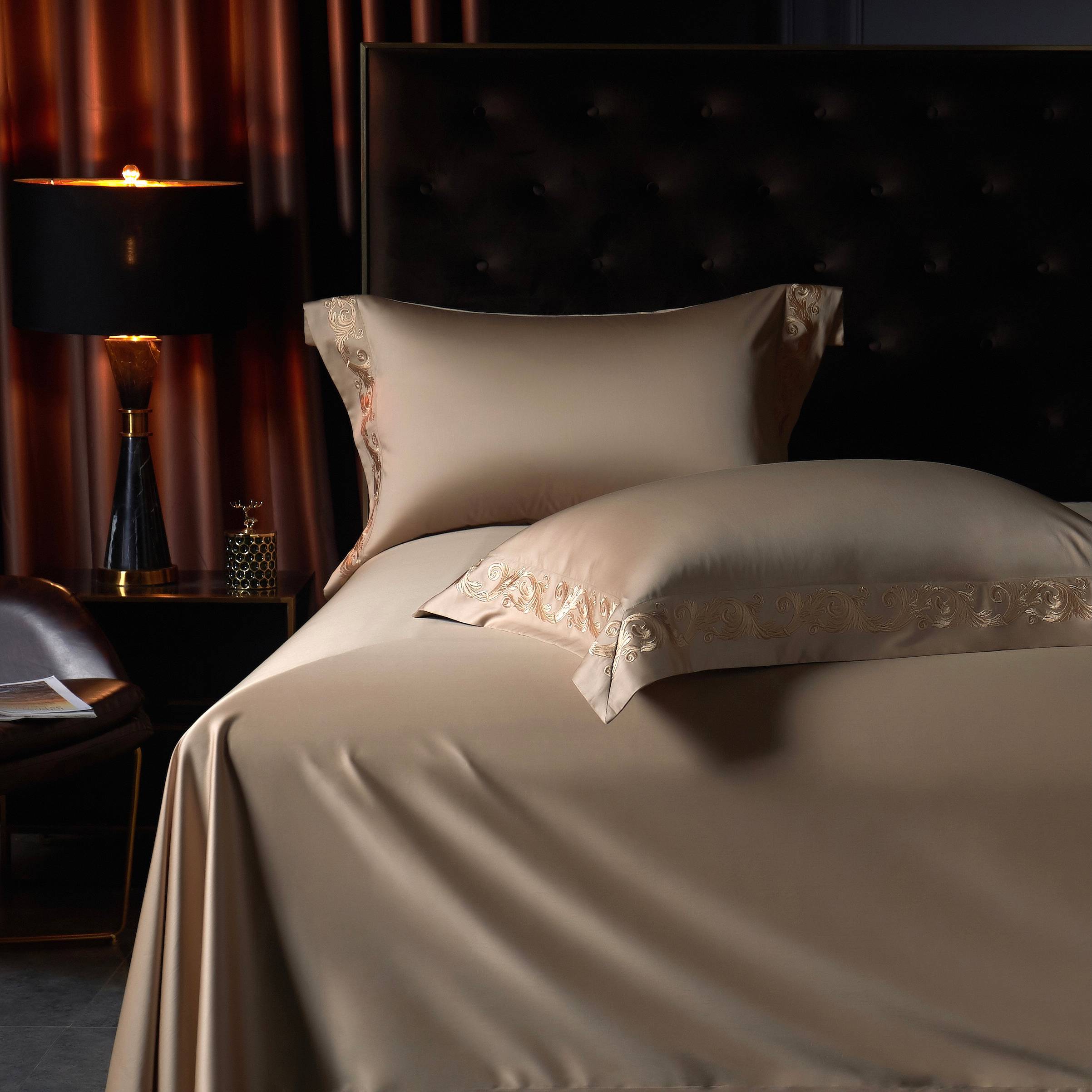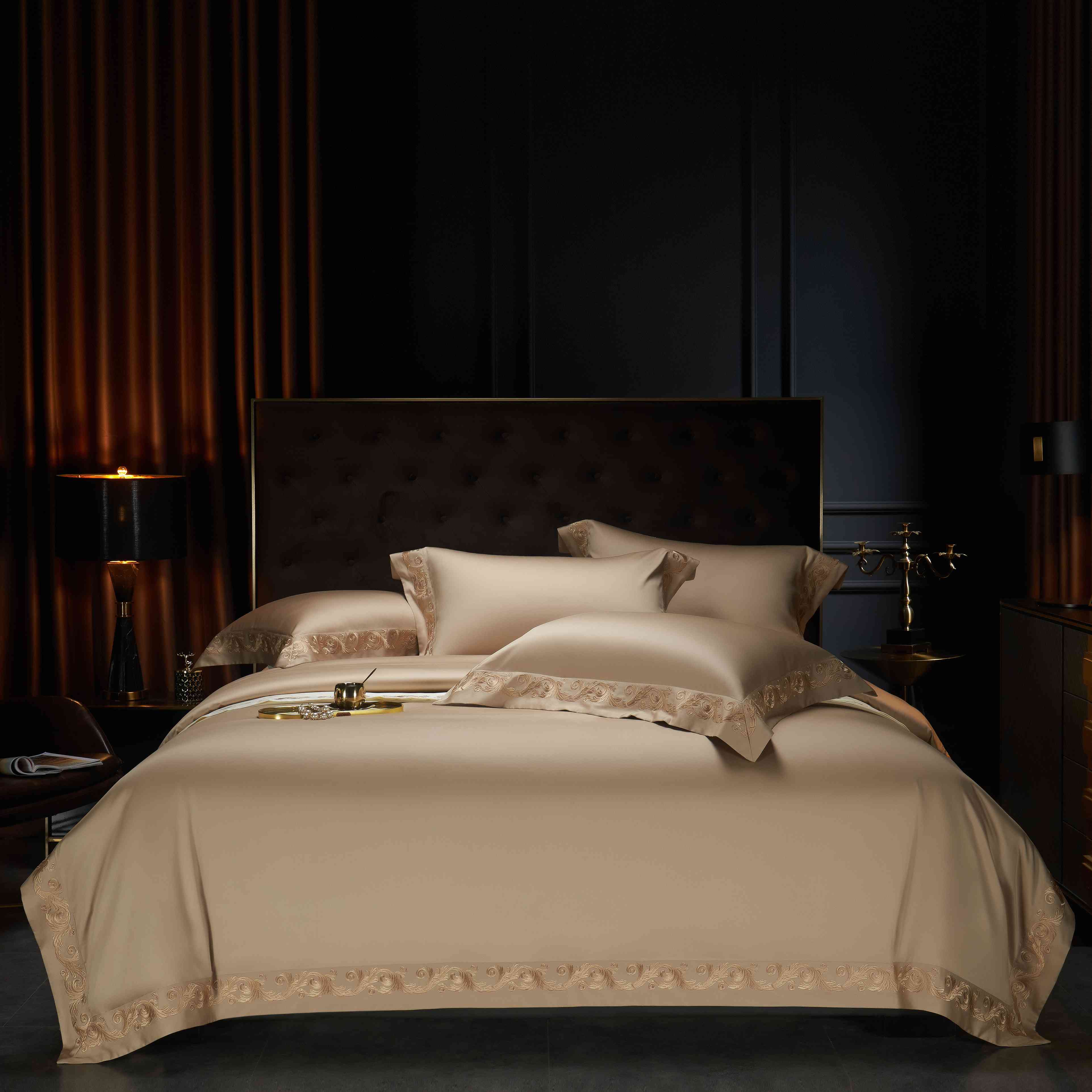 缔缦 2025新款高端定织面料S140长绒棉精梳棉重磅刺绣四件套罗莎系列 卡其