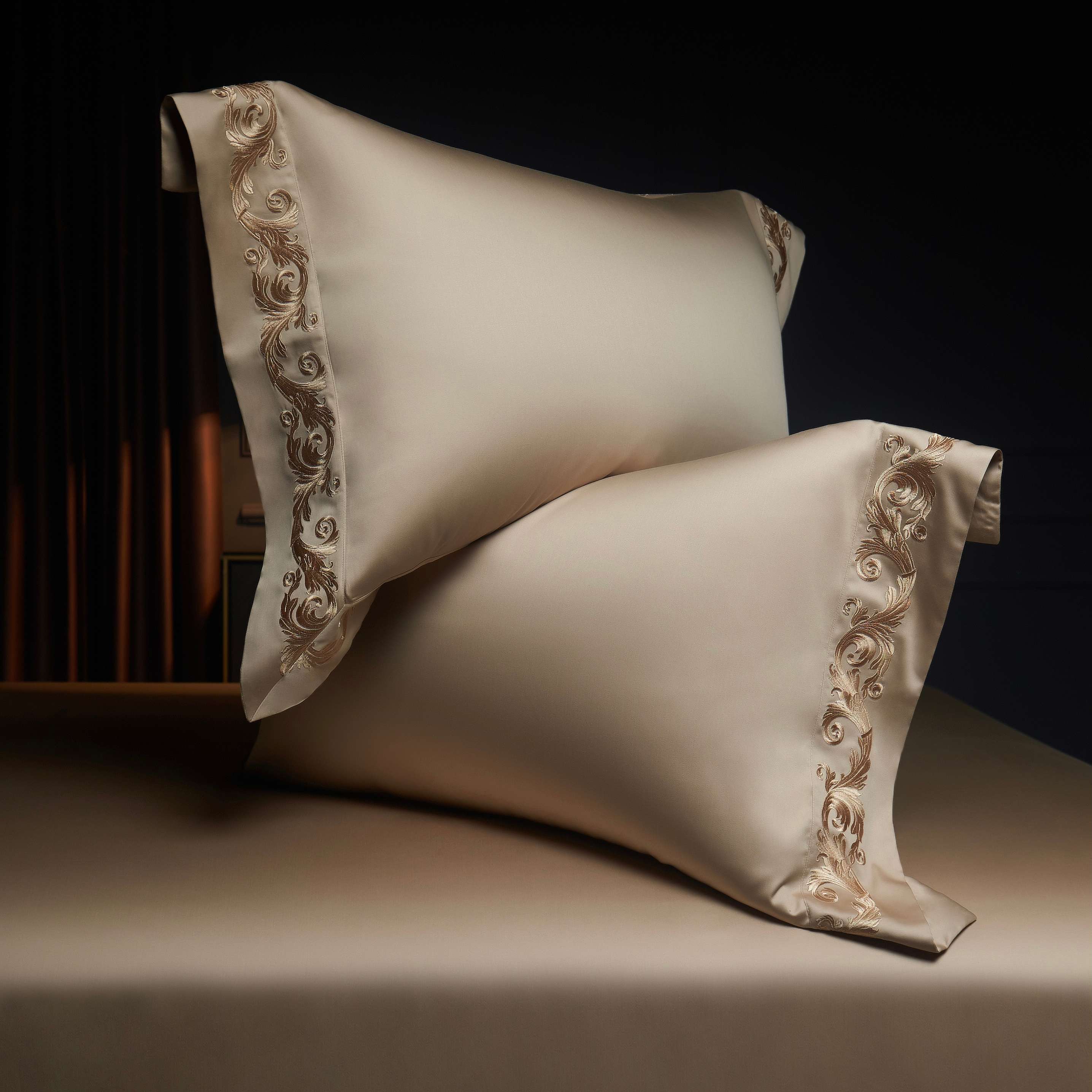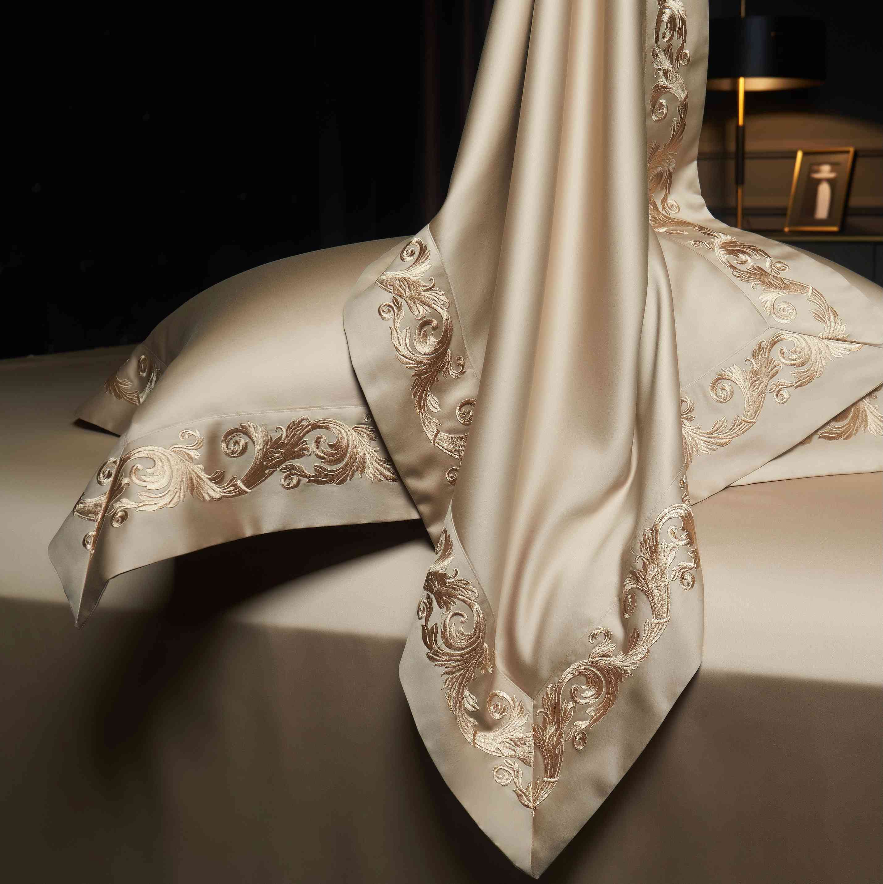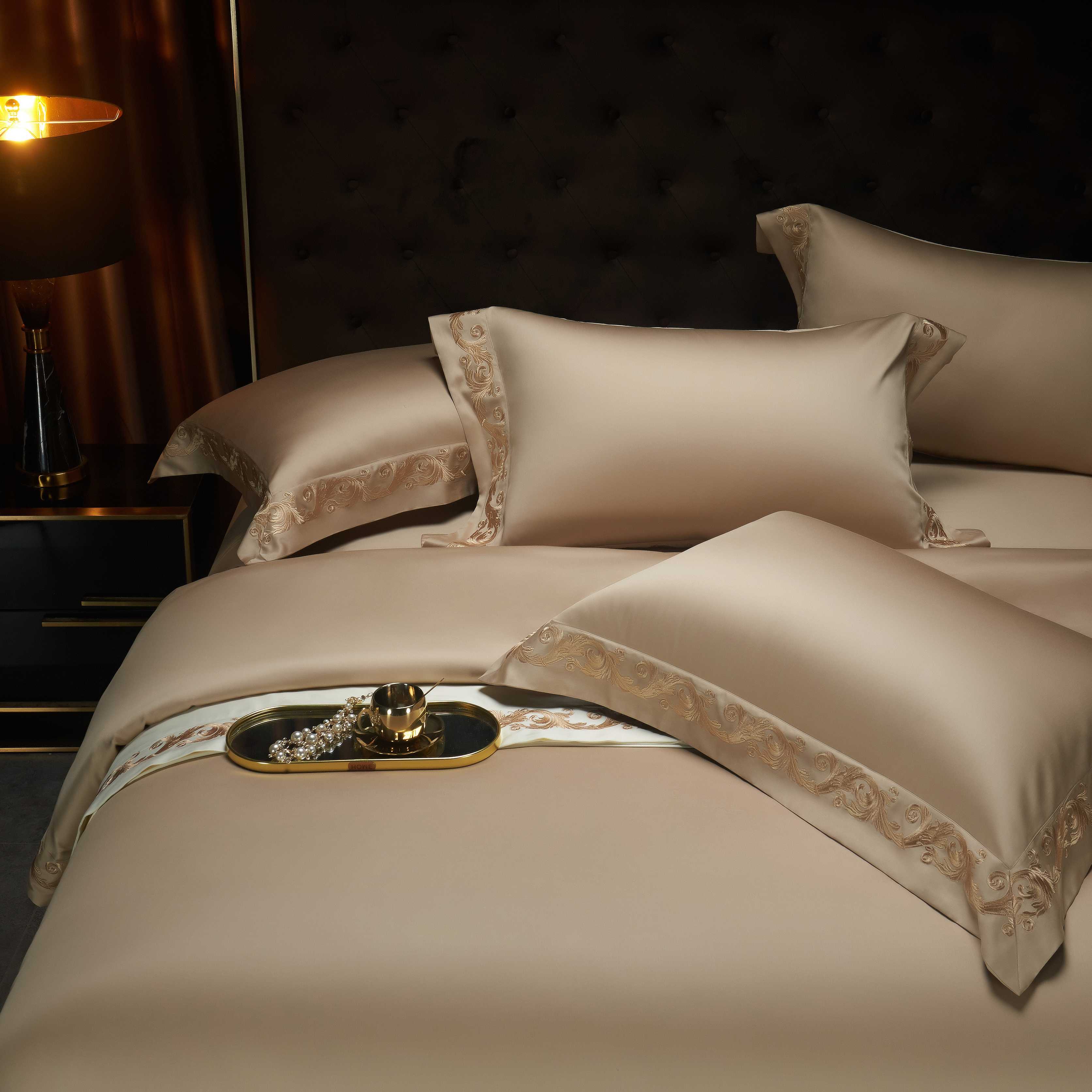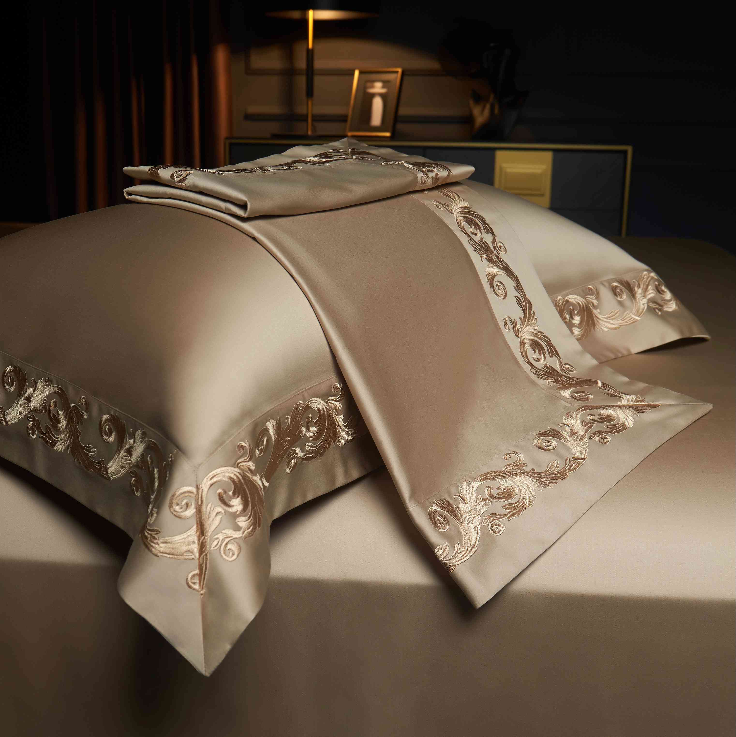 缔缦 2025新款高端定织面料S140长绒棉精梳棉重磅刺绣四件套罗莎系列 卡其