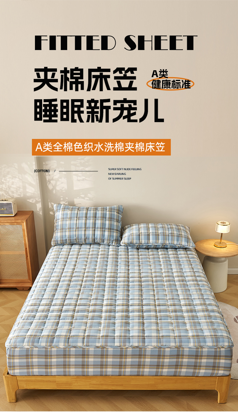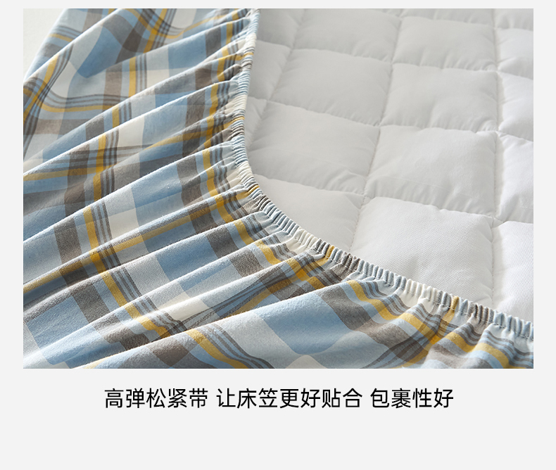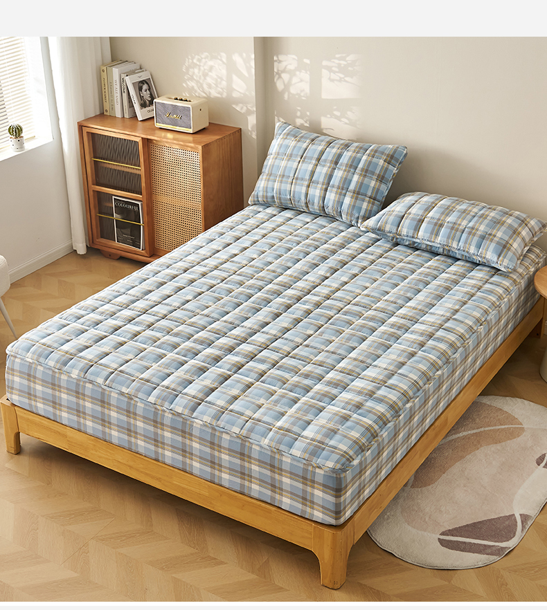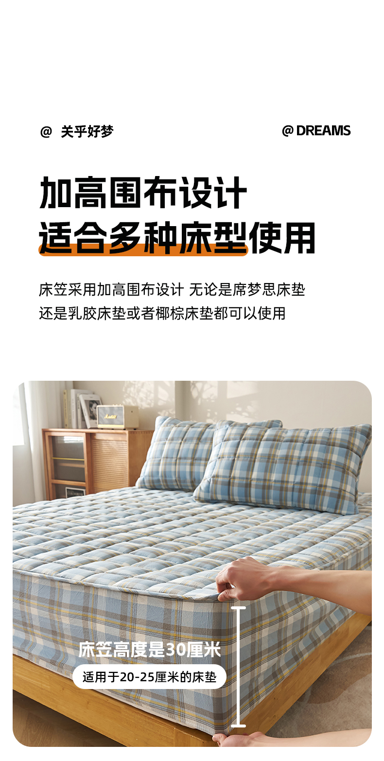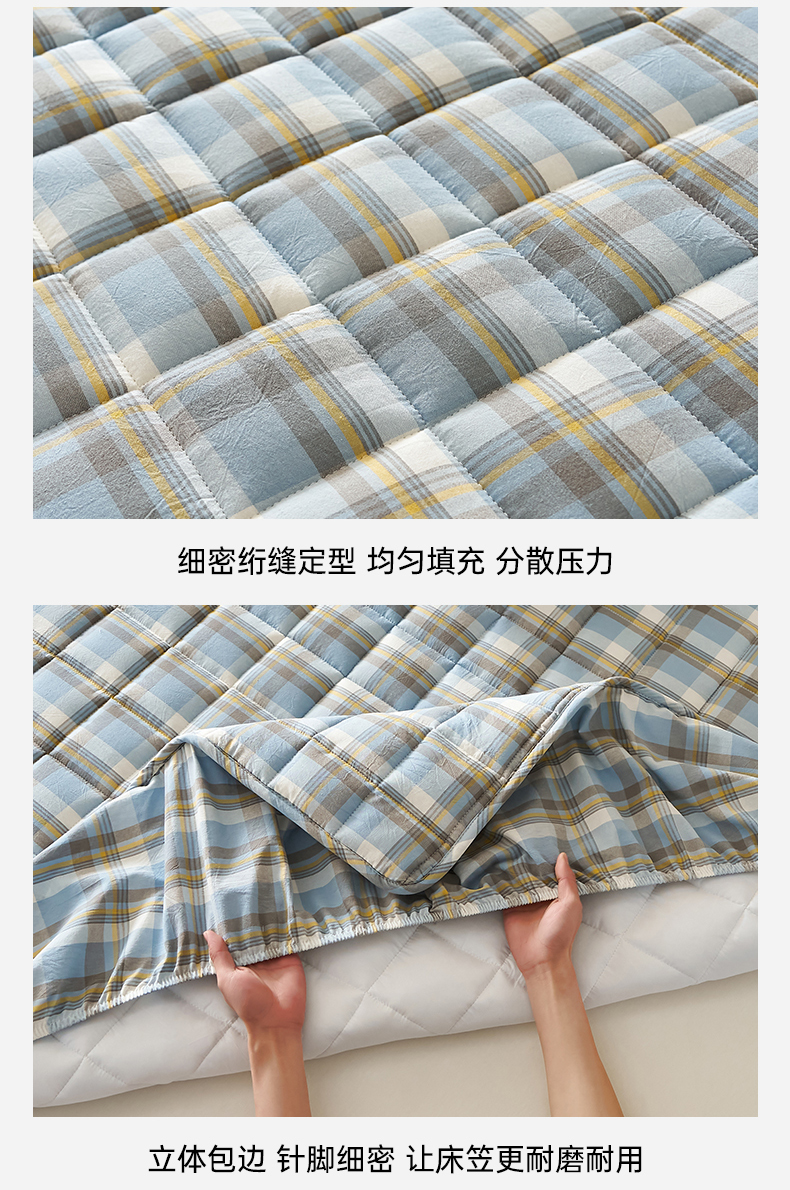 商品名称:锦丝钰床垫 2025春夏新款全棉色织水洗棉床笠 简兮蓝