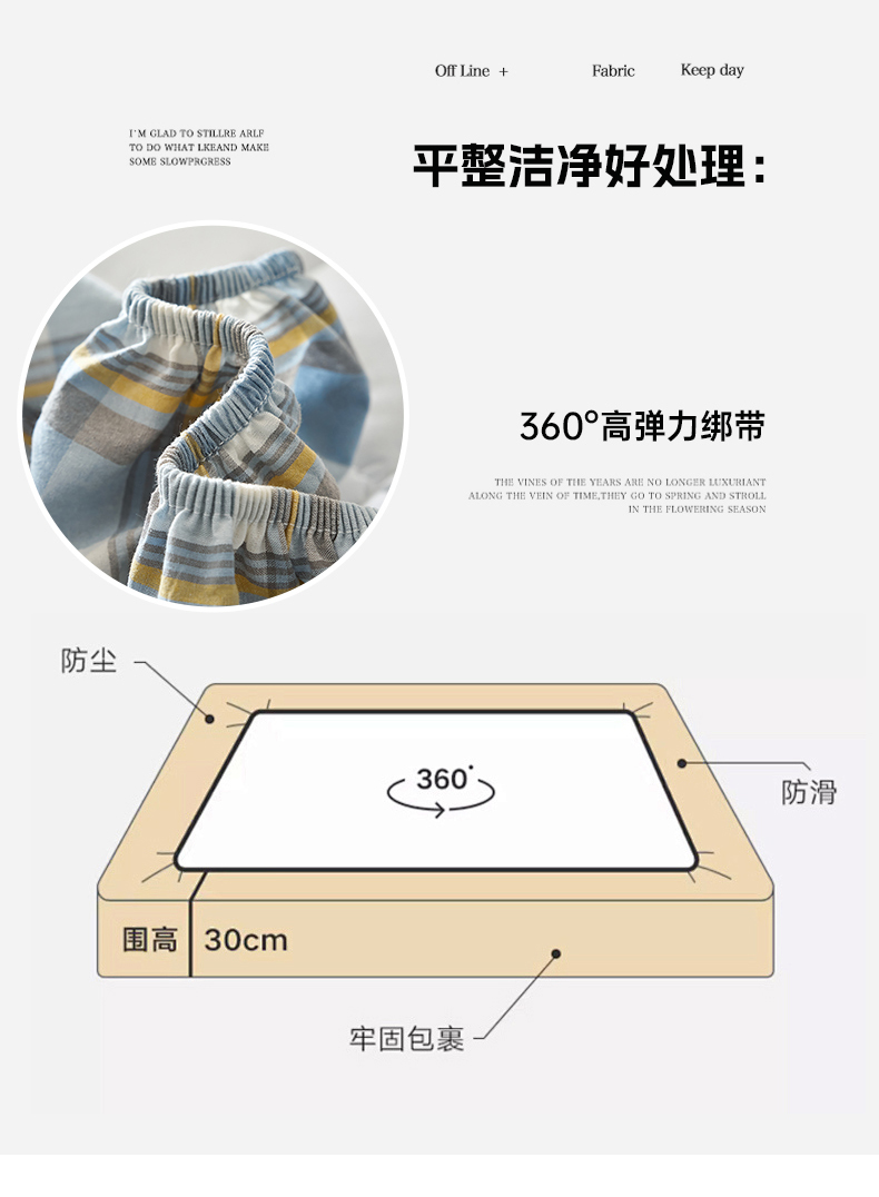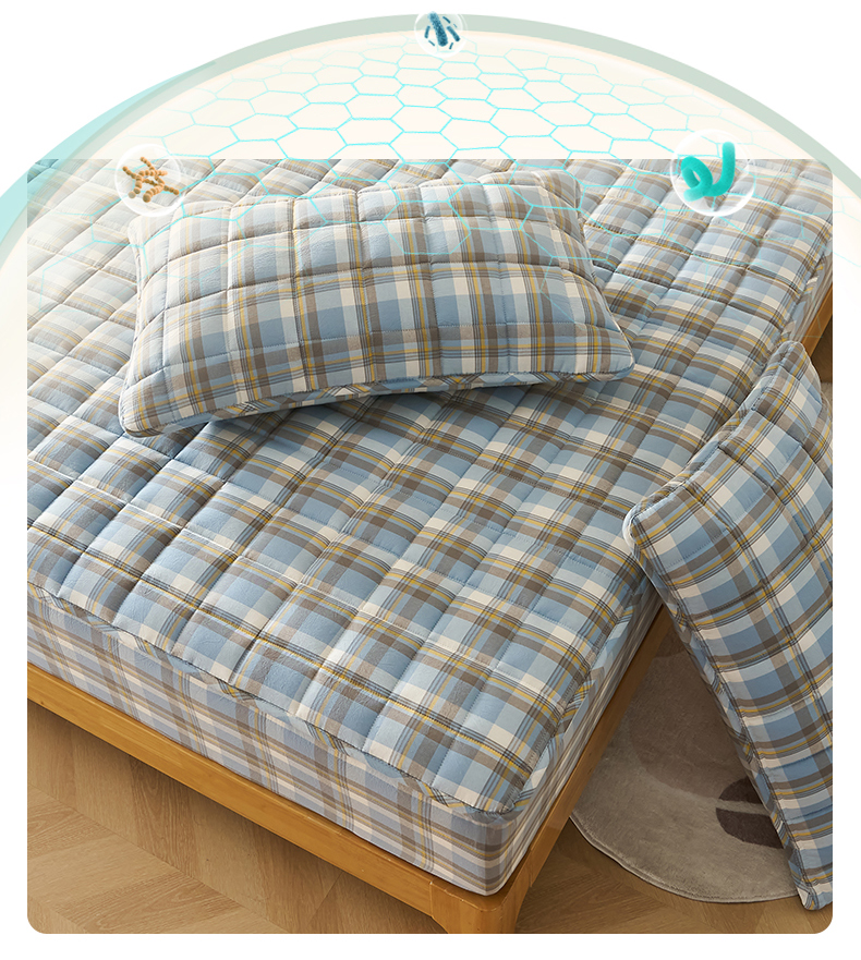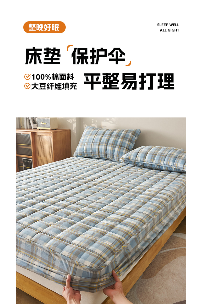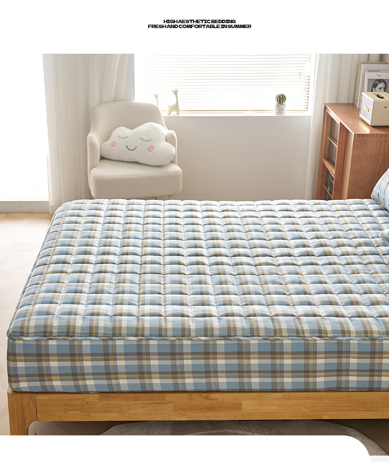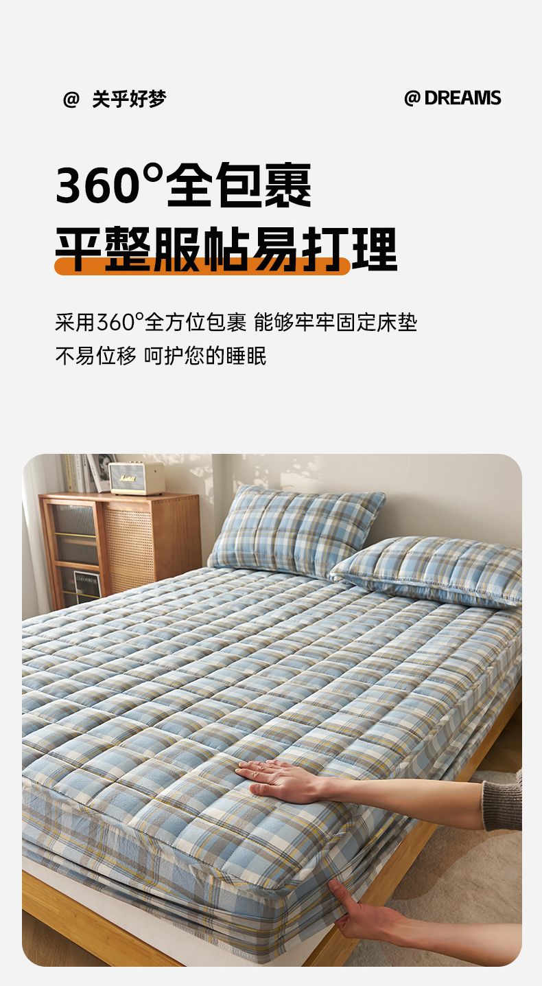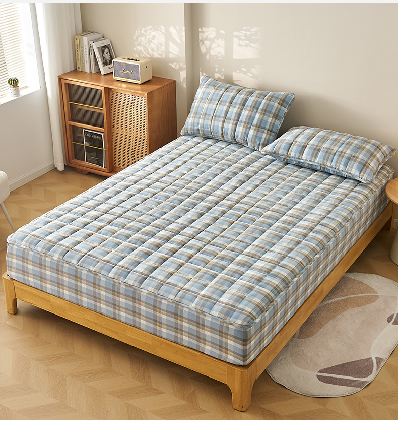 商品名称:锦丝钰床垫 2025春夏新款全棉色织水洗棉床笠 简兮蓝