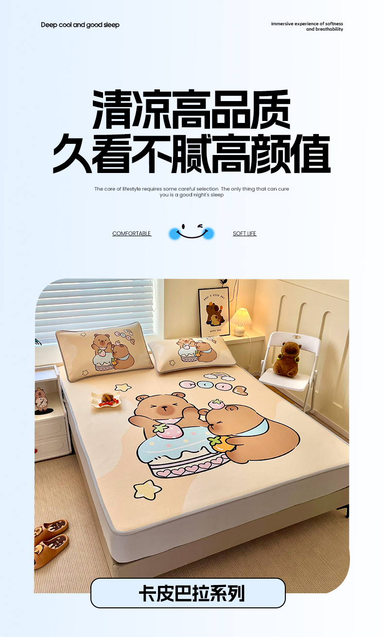 • 91家纺网 家纺一手货源 找家纺 蘭菲家纺 2025新款凉感丝卡皮巴拉凉席 爱皮卡