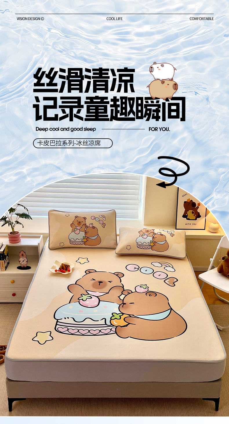 蘭菲家纺 2025新款凉感丝卡皮巴拉凉席 爱皮卡