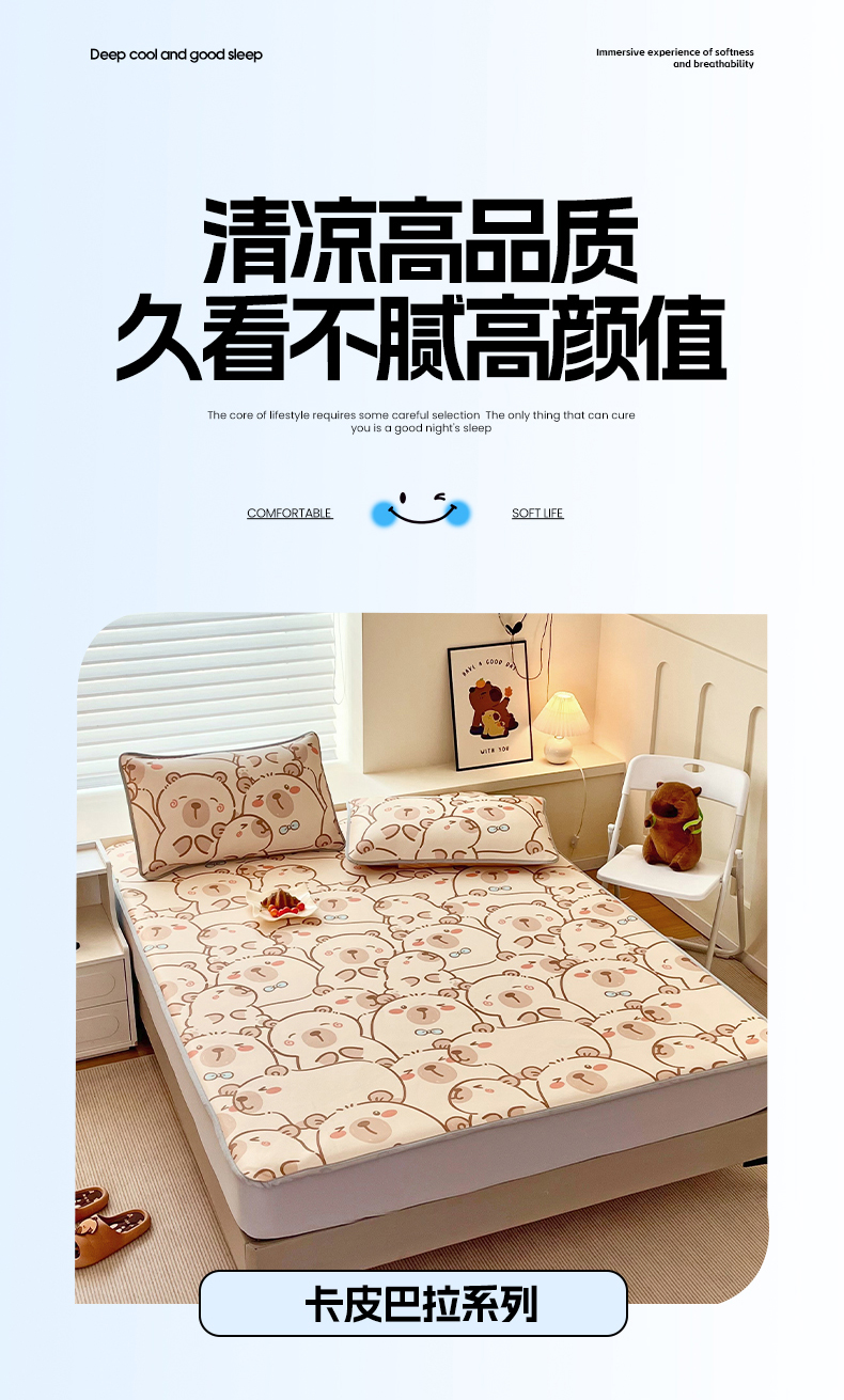 • 91家纺网 家纺一手货源 找家纺 蘭菲家纺 2025新款凉感丝卡皮巴拉凉席 小卡