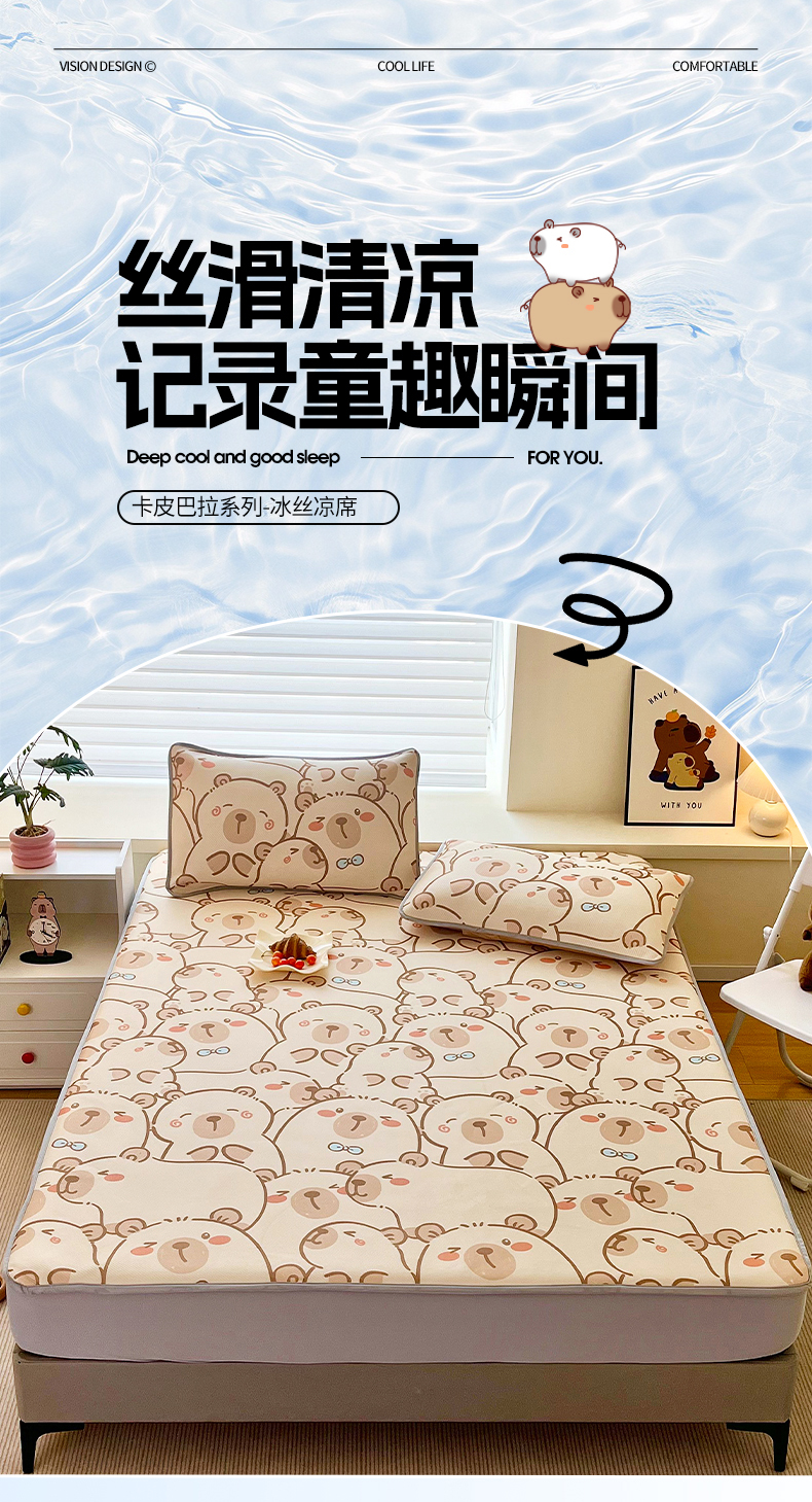 蘭菲家纺 2025新款凉感丝卡皮巴拉凉席 小卡