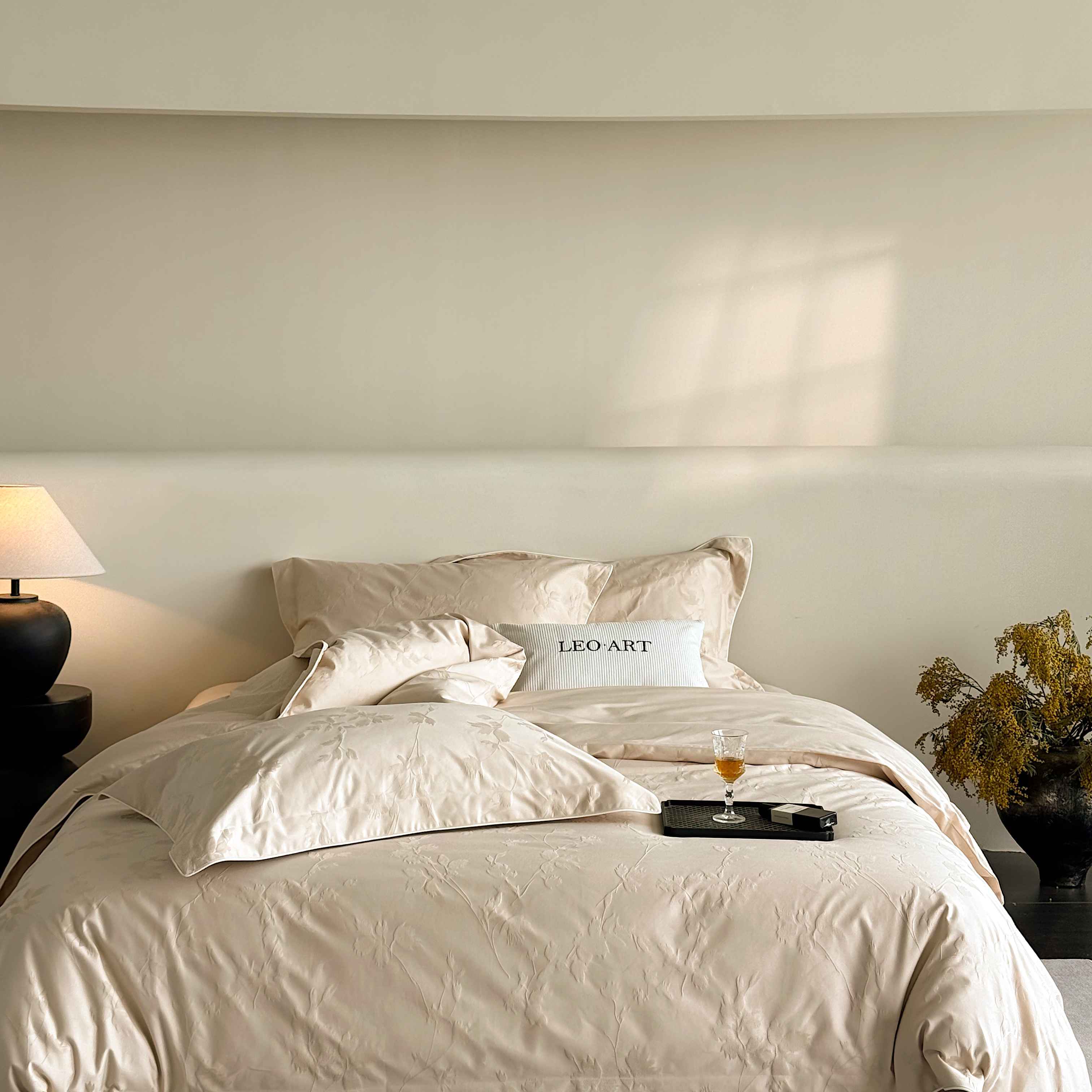 商品名称:涞澳家纺 2025新款全棉提花四件套 碧玉-小麦色