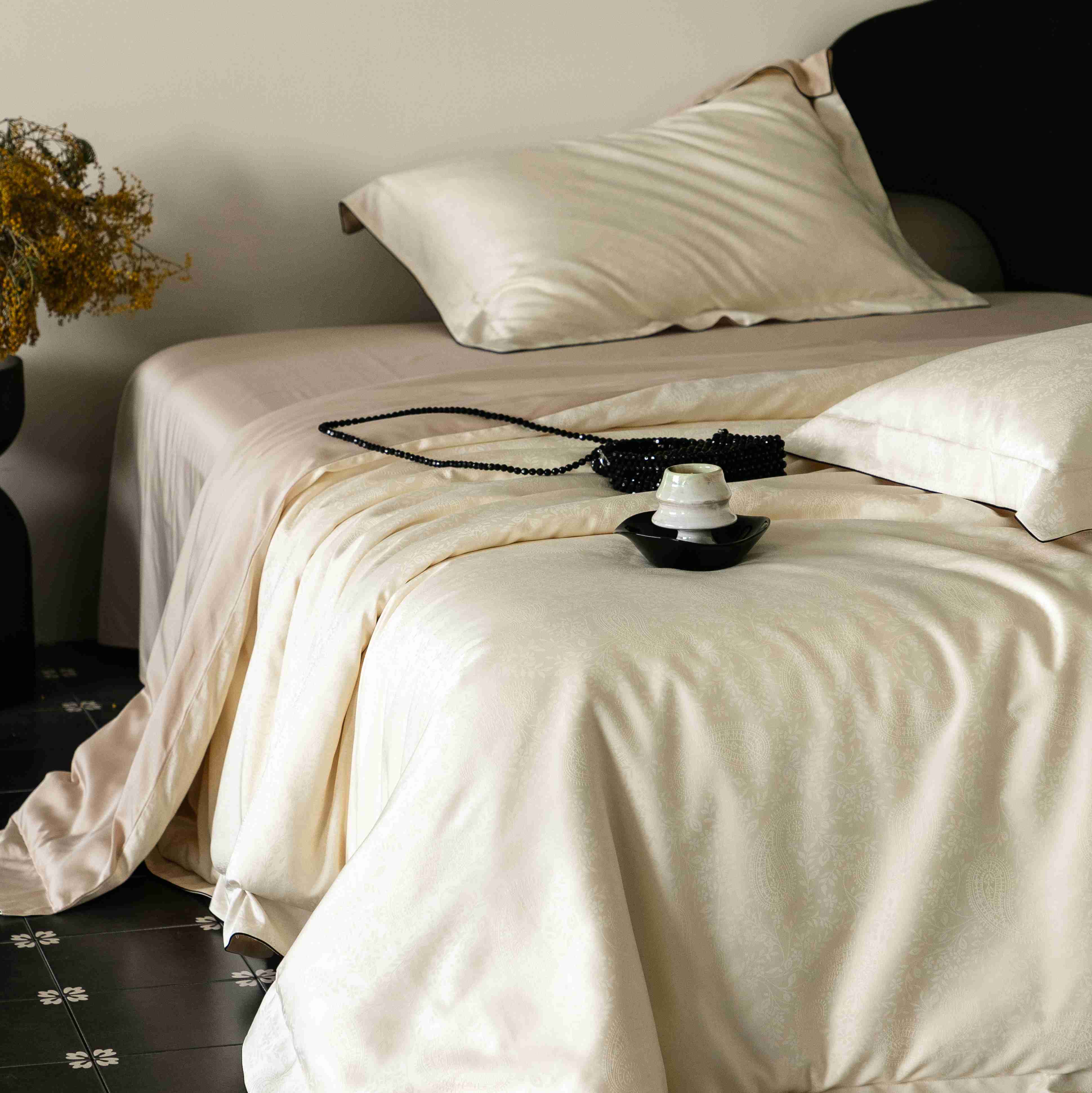 涞澳家纺 2025新款60支天丝棉提花四件套 海瑟薇-明月白