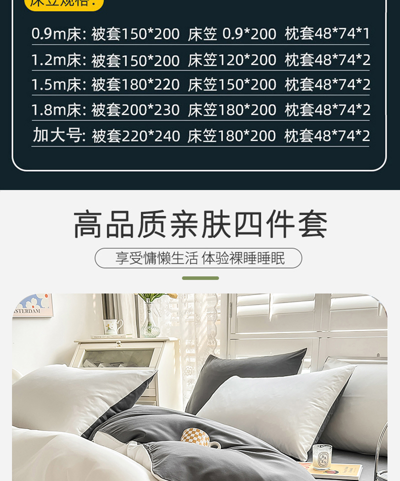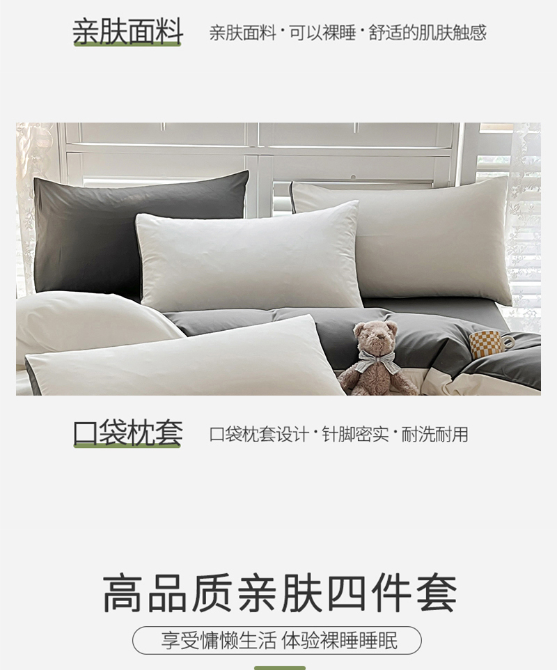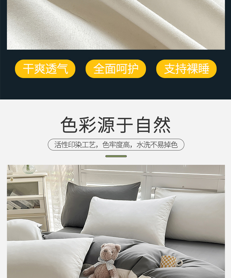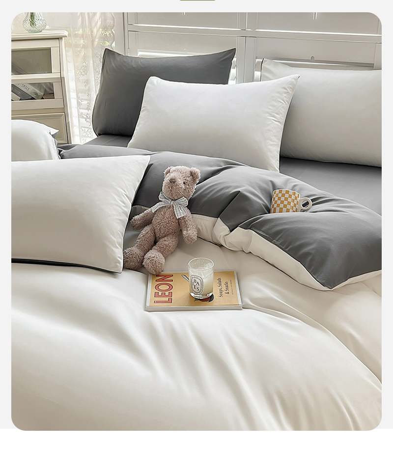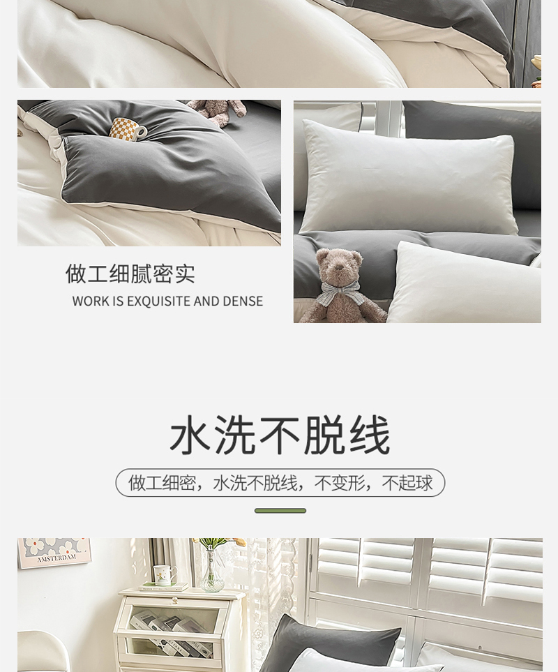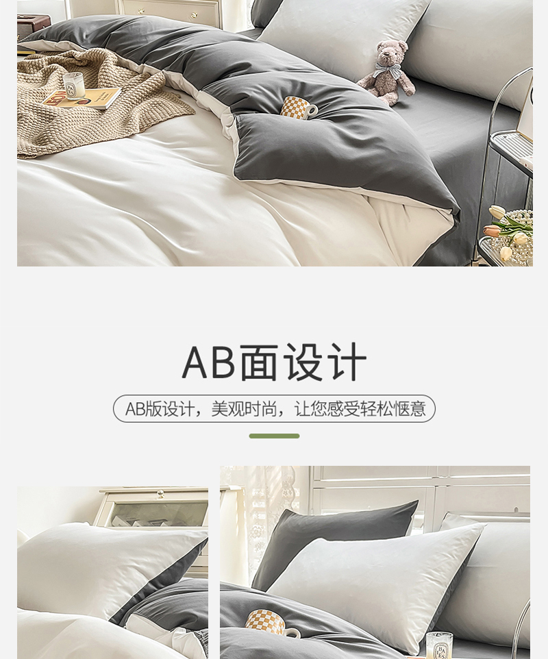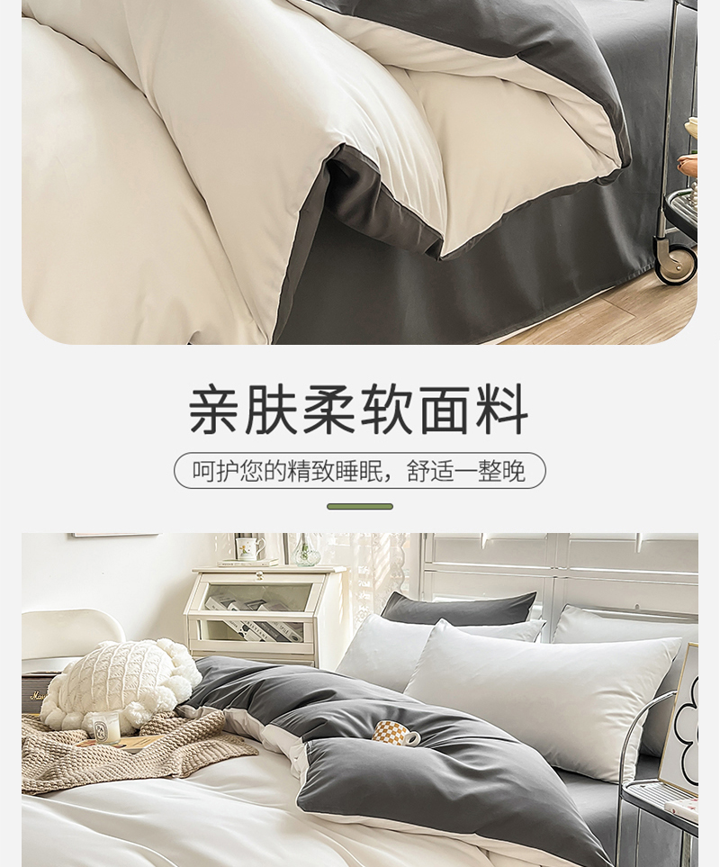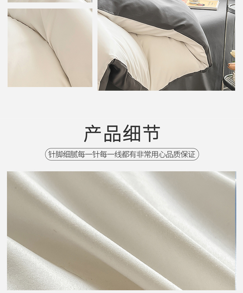 当前位置: 91家纺网 > 商品网购 > 床品套件 > 四件套 > 其它四件套 > 啊雅家居 2025新款学生宿舍双拼磨毛被套床单床笠单品三件套四件套 米白加深灰