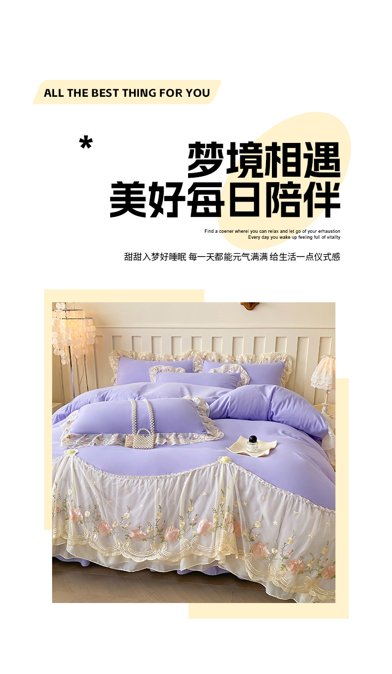 • 91家纺网 家纺一手货源 找家纺 富宁2025新款水洗亲肤棉雪纺蕾丝刺绣床裙床笠三件套四件套 潘多拉-紫 91家纺网 家纺一手货源 找家纺 富宁2025新款水洗亲肤棉雪纺蕾丝刺绣床裙床笠三件套四件套 潘多拉-紫