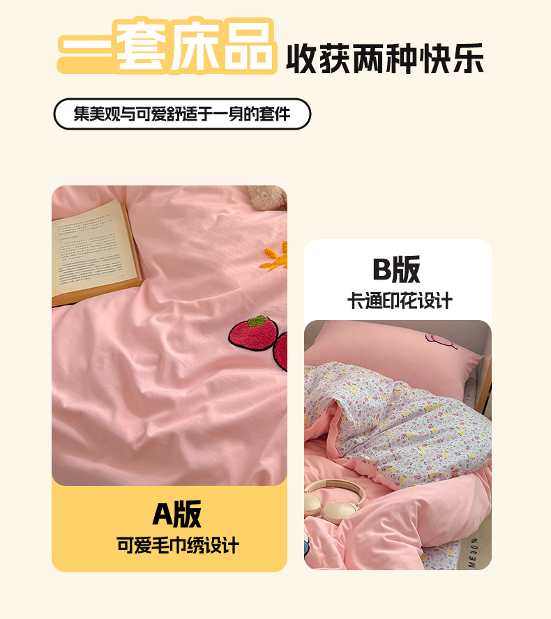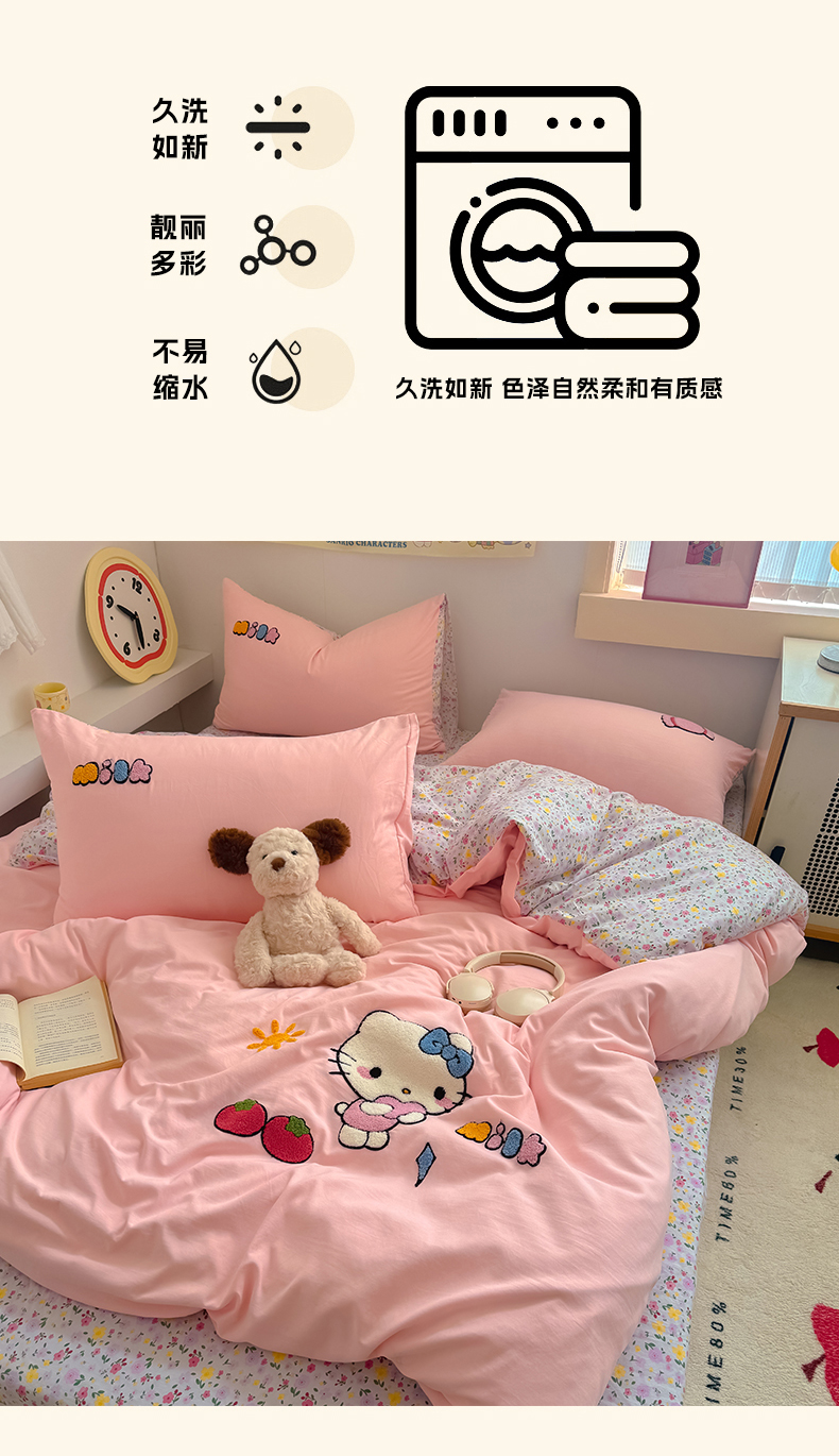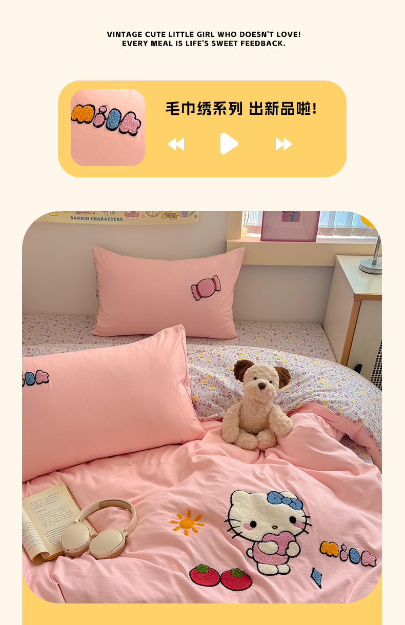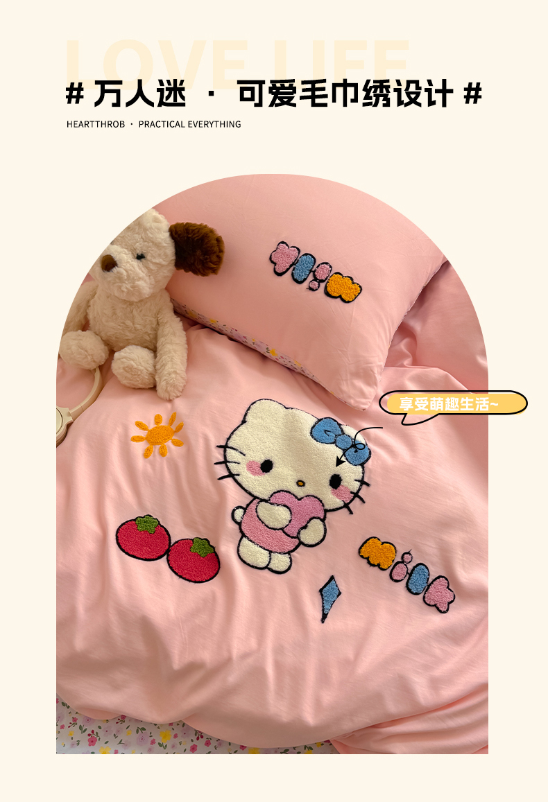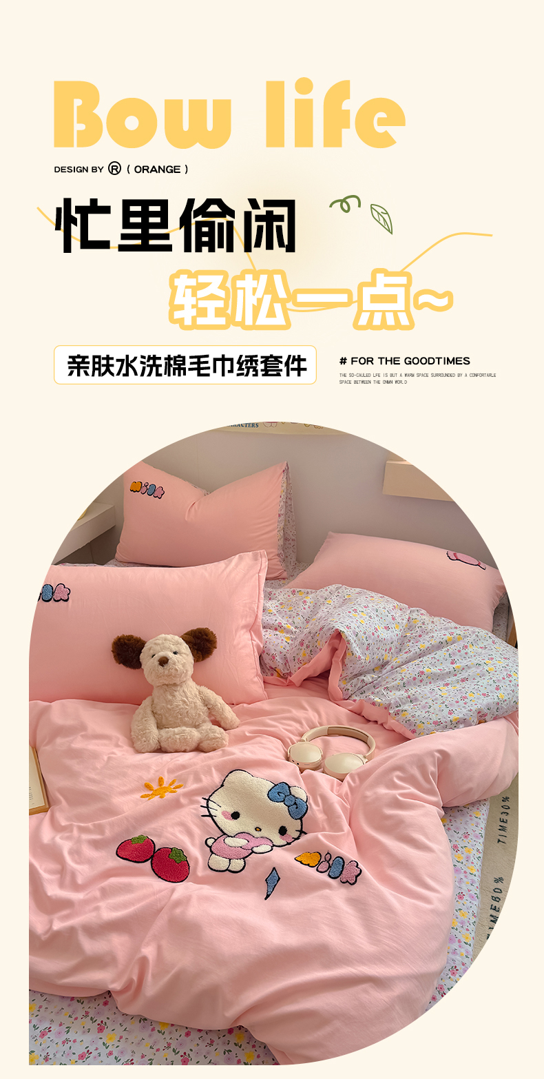 (总)沃朴家居 2025春夏新款亲肤水洗棉毛巾绣四件套,kt-莓烦恼,动物乐园,海宝派派,花朵女孩,欢乐熊,酷洛米,奶乎狗狗,企鹅派对,淘气巴拉,小萌羊,幸福小新,音乐猫咪