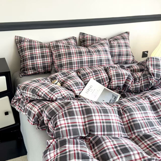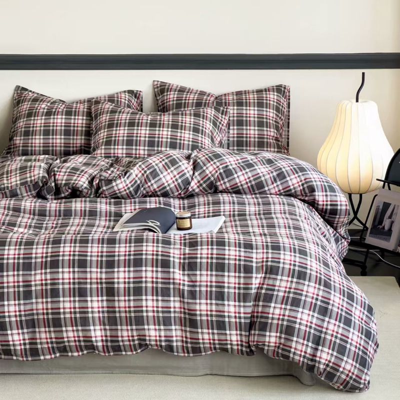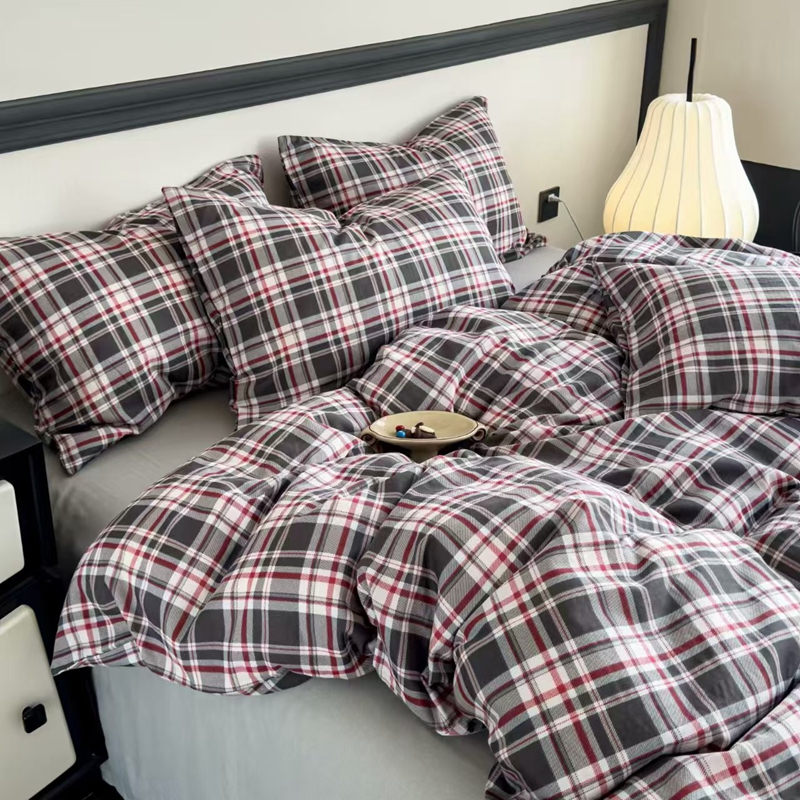 栩裕纺织 2025新款全棉双层纱四件套 美式格