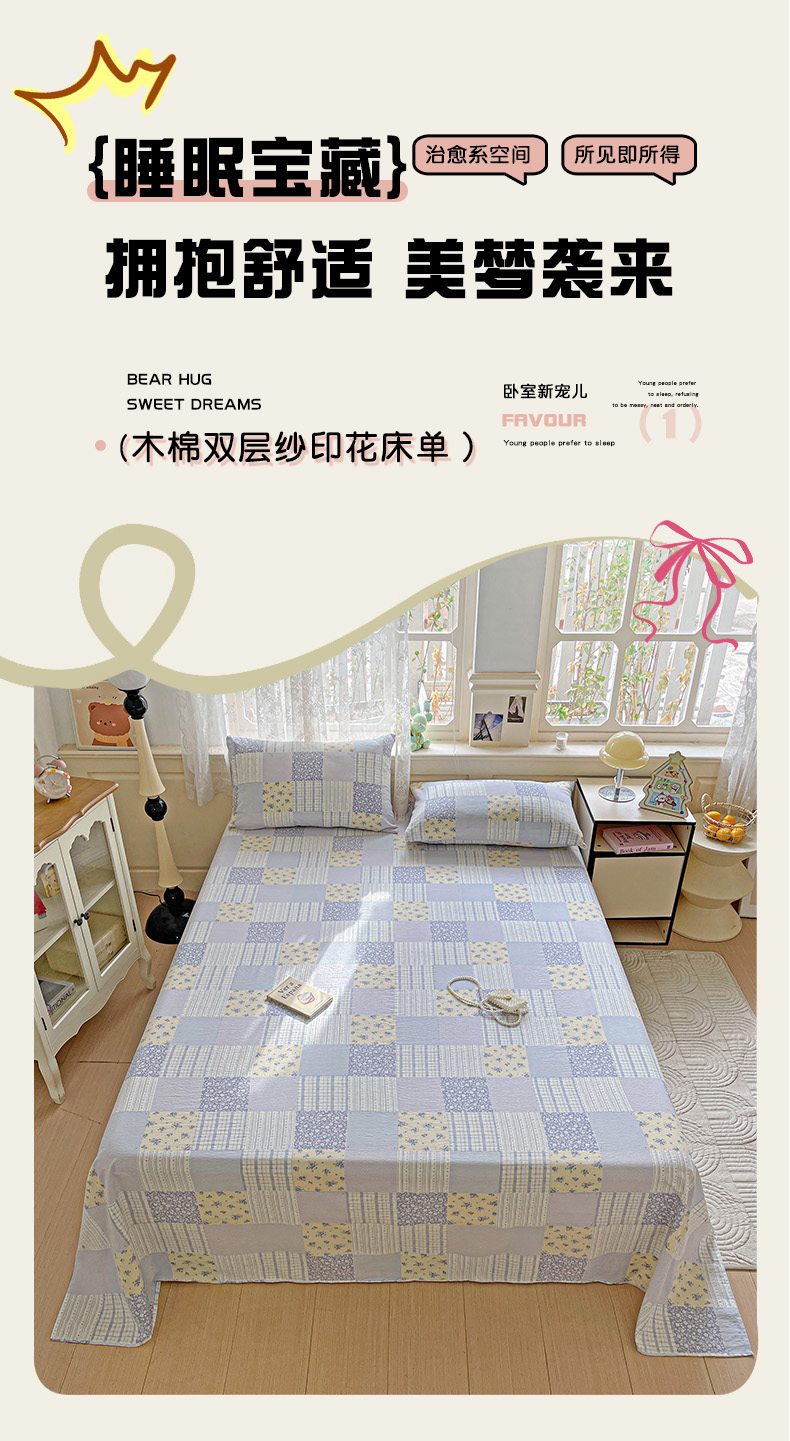 当前位置: 91家纺网 > 商品网购 > 床品套件 > 四件套 > 双层纱四件套 > 暖芯优选 2025新款母婴级ins小清新双层纱印花床单枕套三件套(提供买家秀) 亚特兰地
