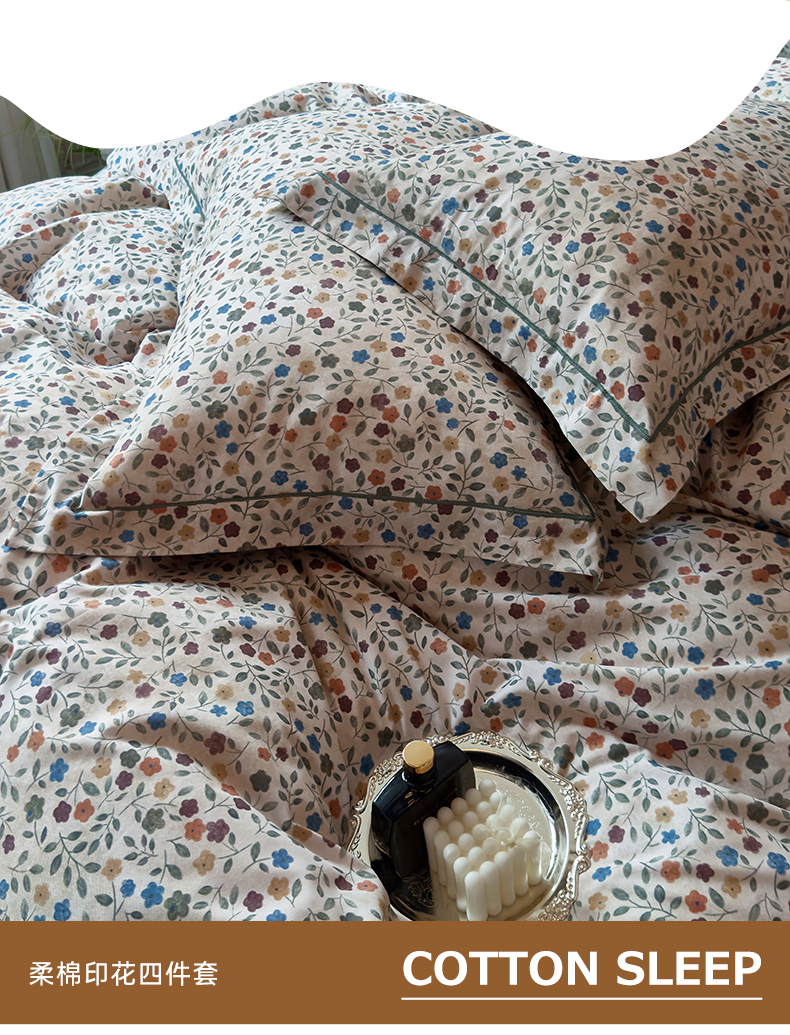 商品名称:由丽家纺 2025年5月柔棉全棉纯棉数码印花床单床笠款四件套(控价券后199起) 椿山集-绿