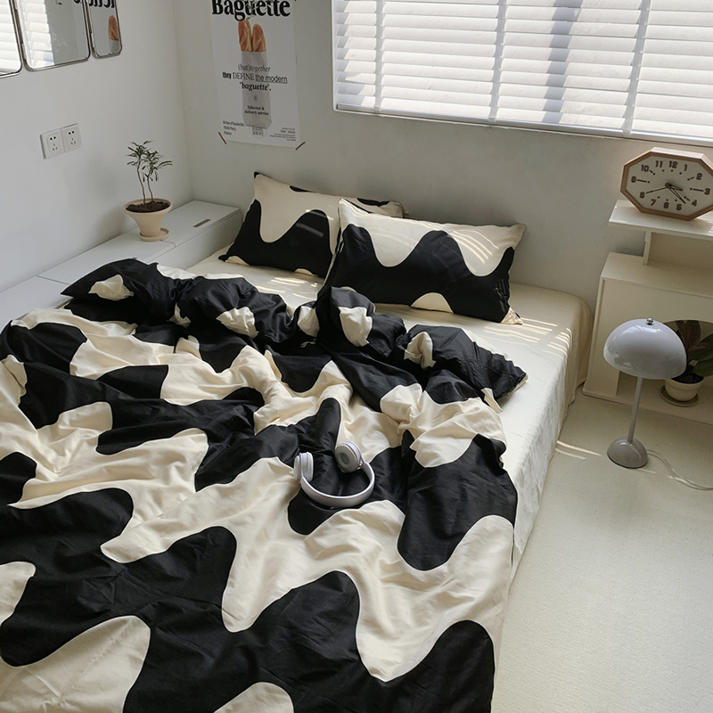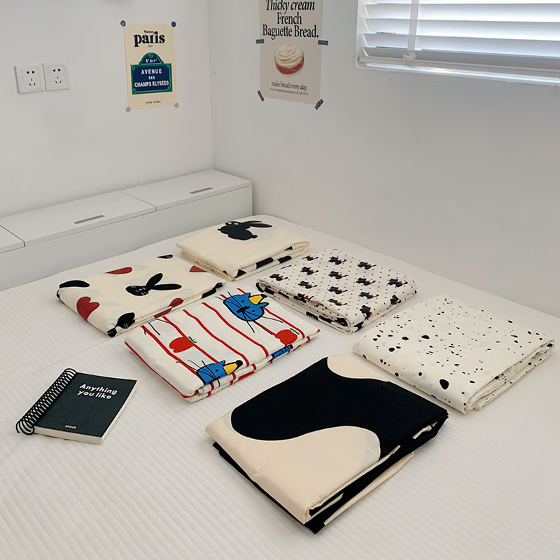 商品名称:柚可家居 2024新款活性印花黑白系列单被套2 苹果蓝猫