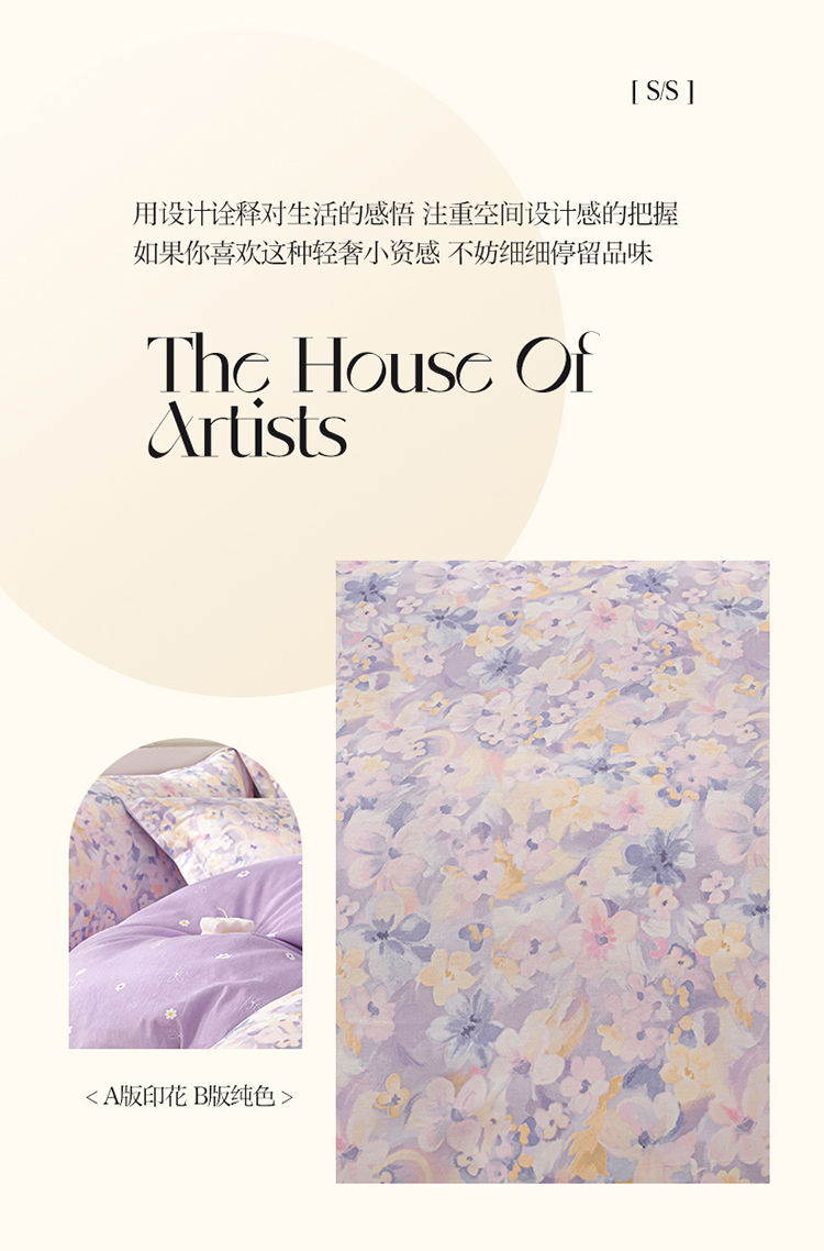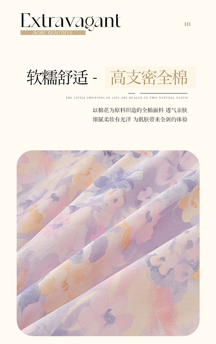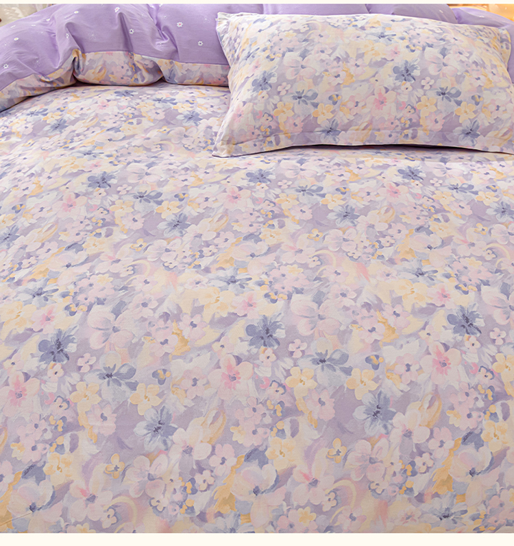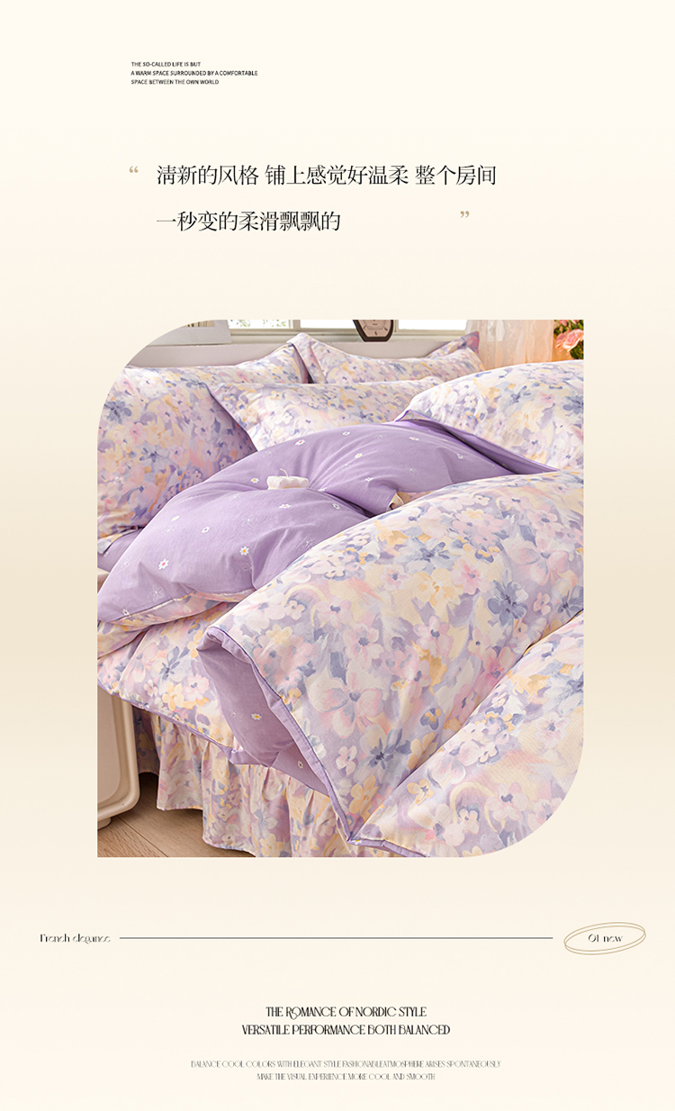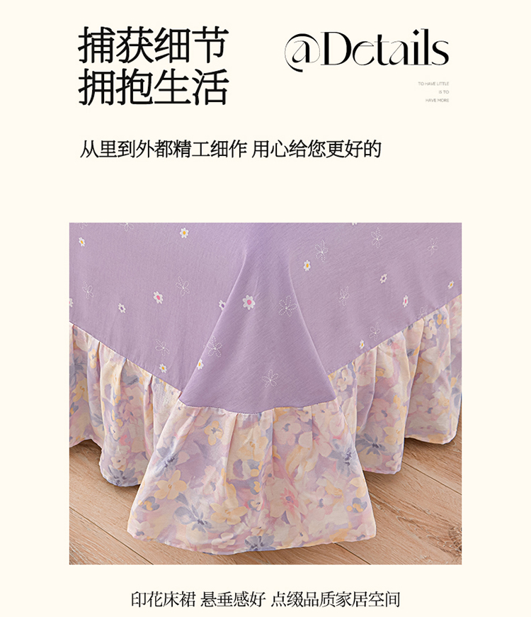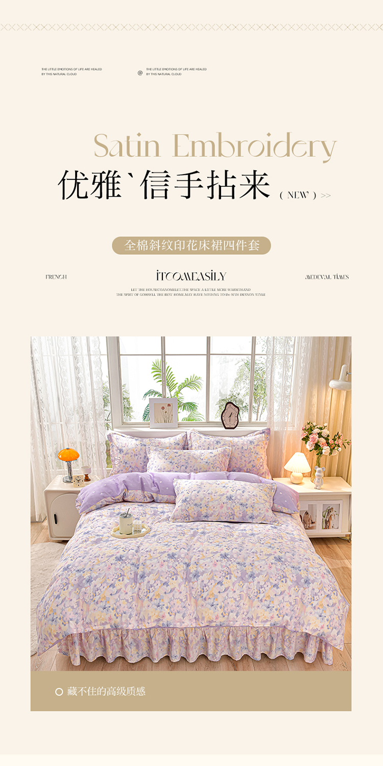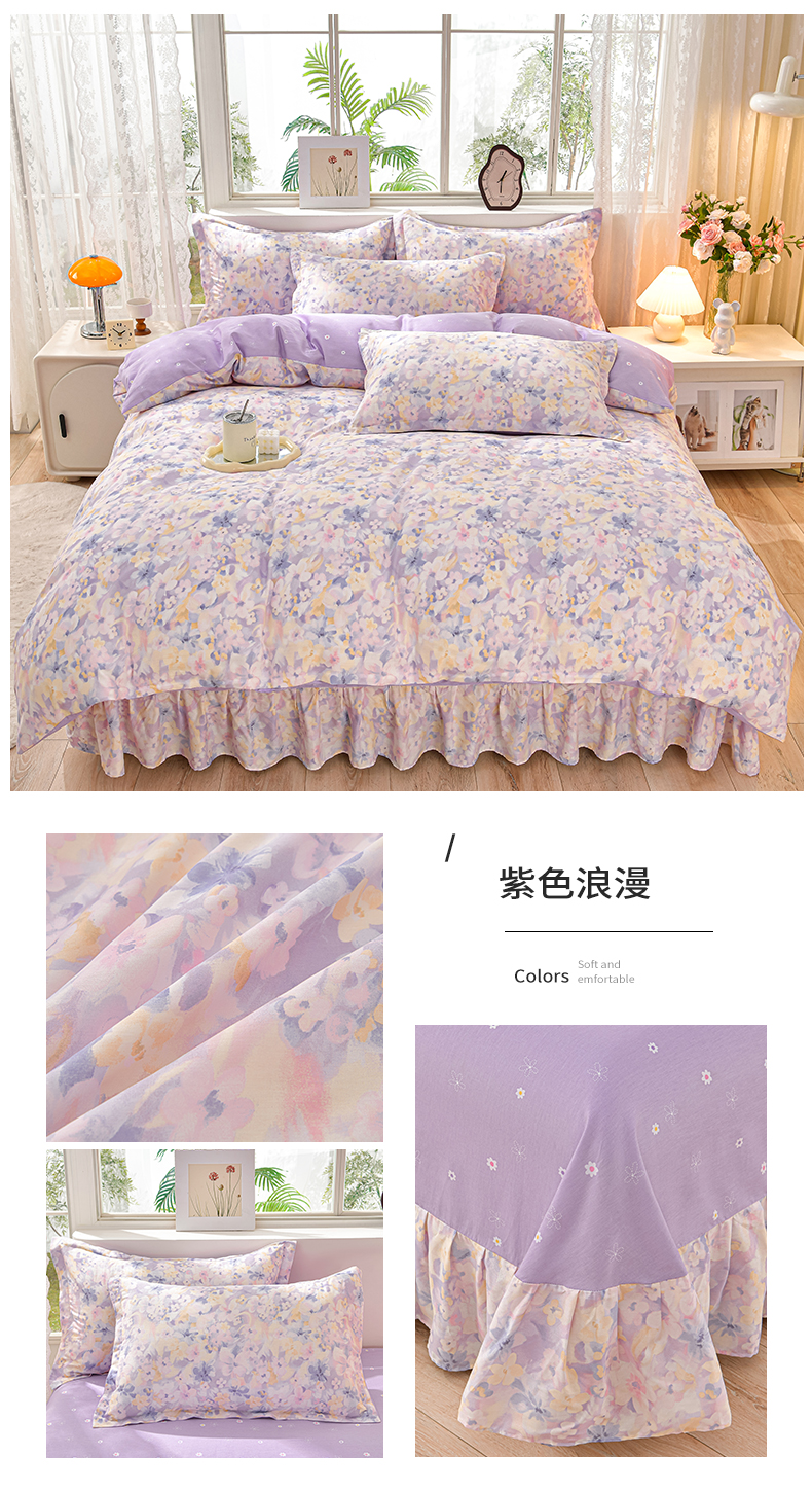 商品名称:绘萱家居 2025新款100%全棉床裙款斜纹印花四件套 紫色浪漫