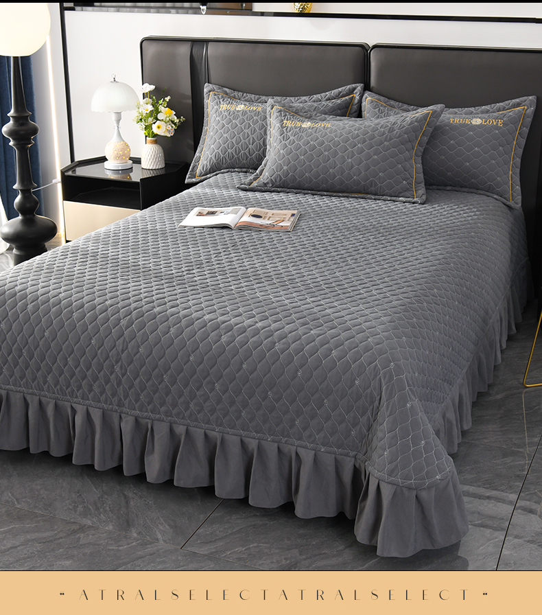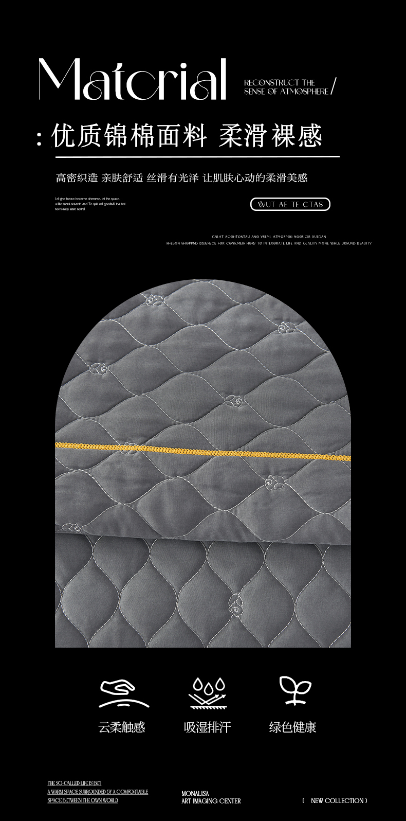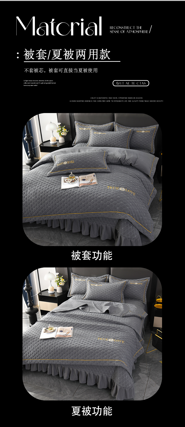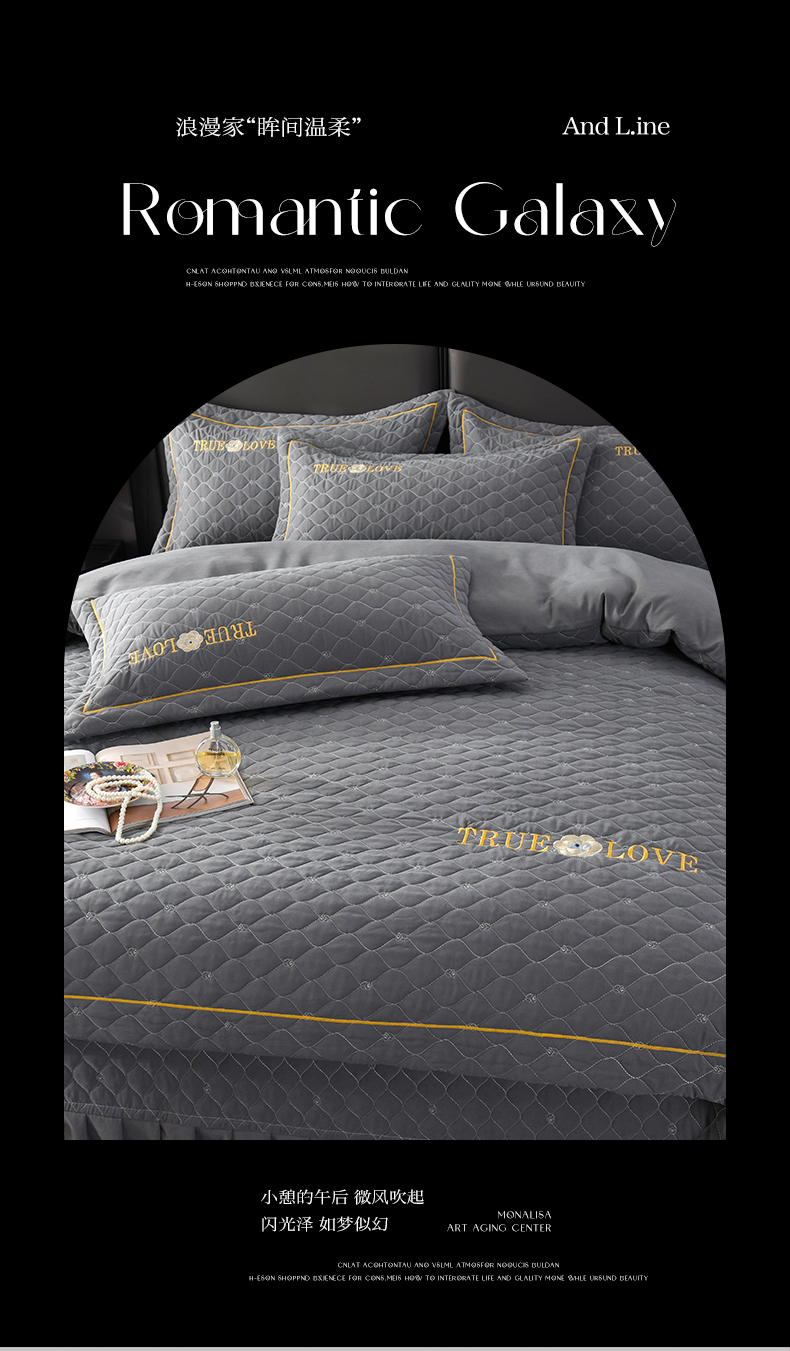 代芙家纺 2025新款锦棉床盖四件套-压线款 压花香-线款-雅灰