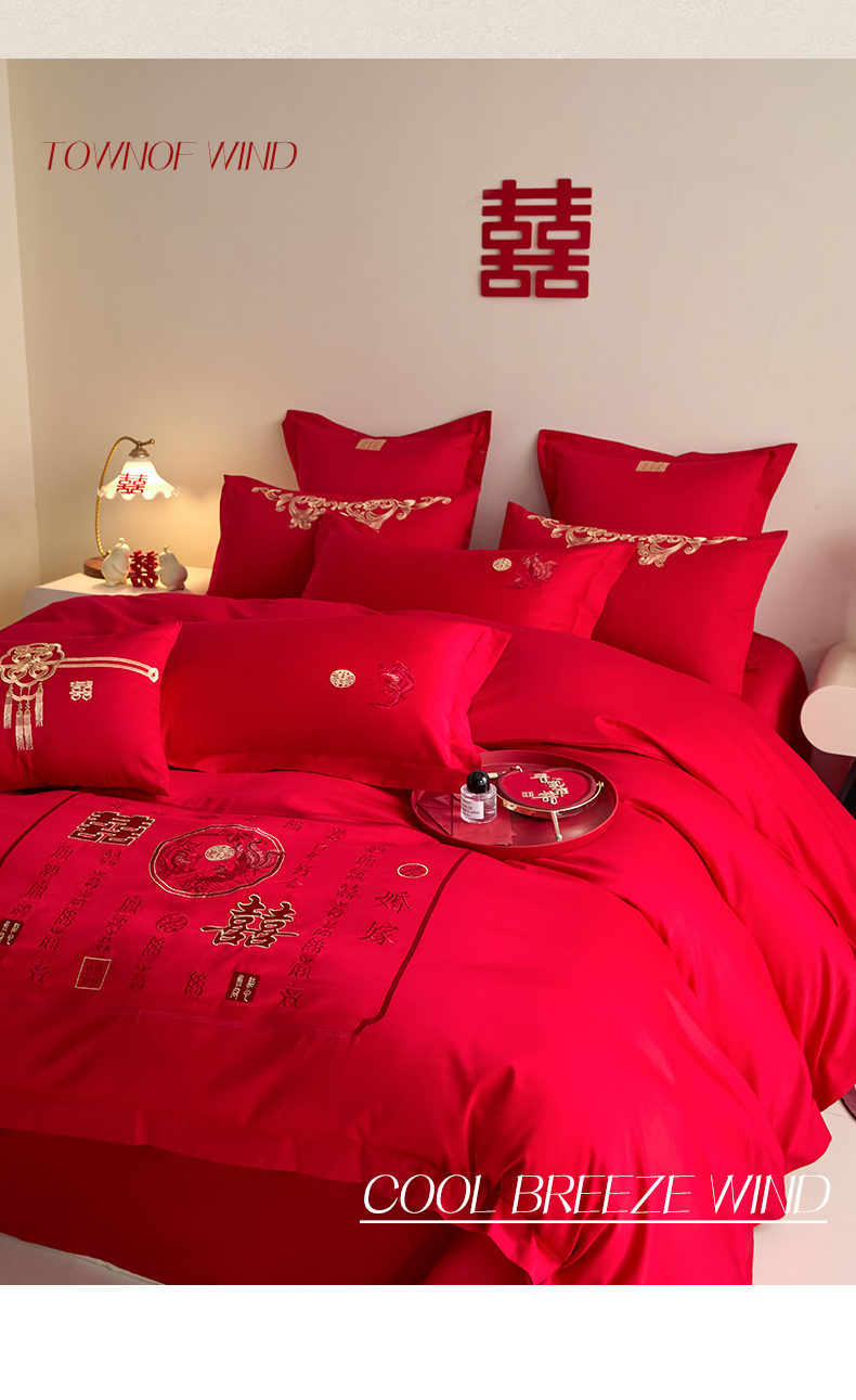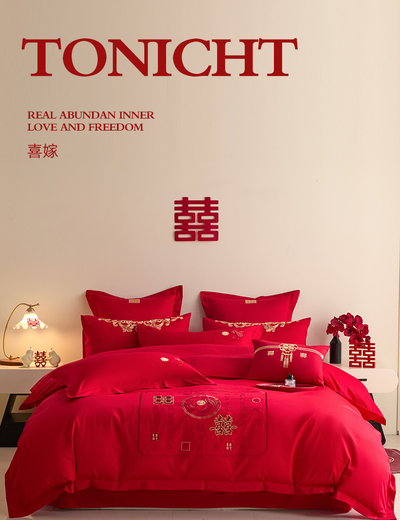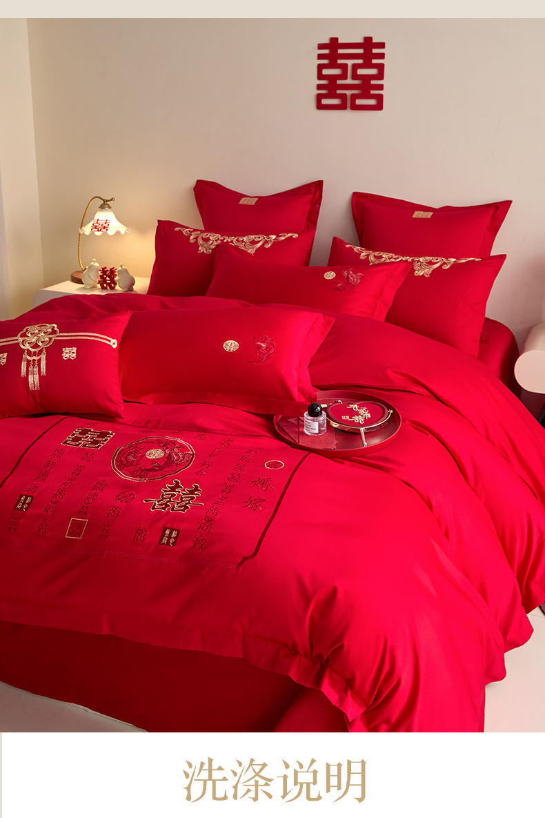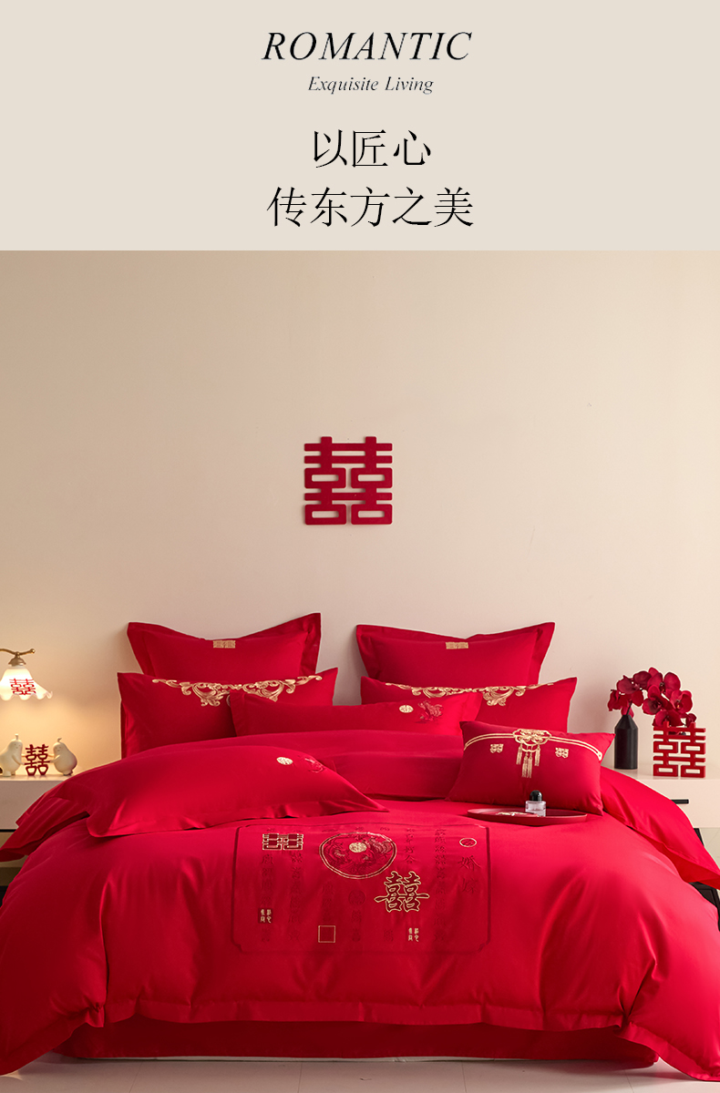 当前位置: 91家纺网 > 商品网购 > 床品套件 > 四件套 > 婚庆四件套 > 东方合美(原:皇家传奇)2025新款婚庆小红书化纤系列四件套(控价138/148) 喜嫁