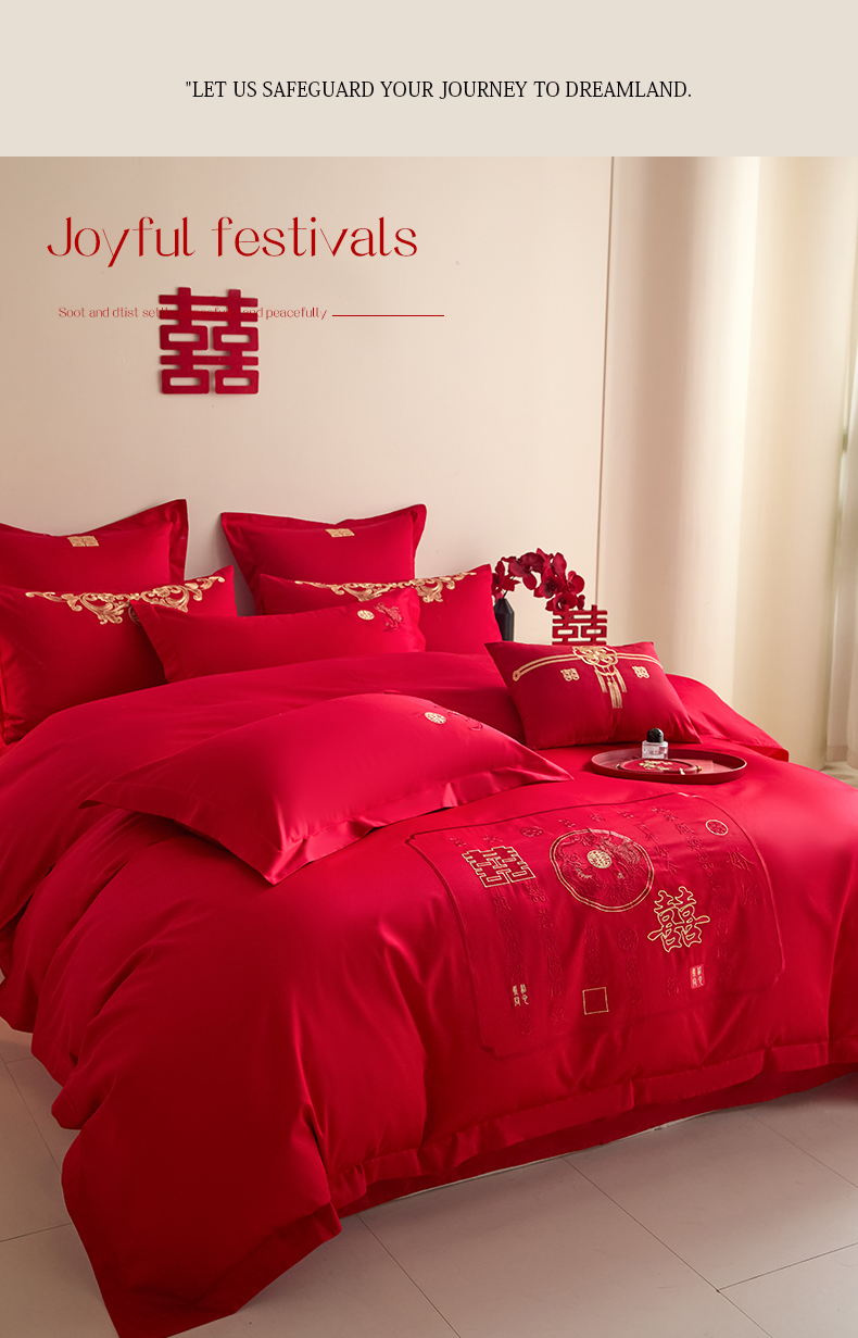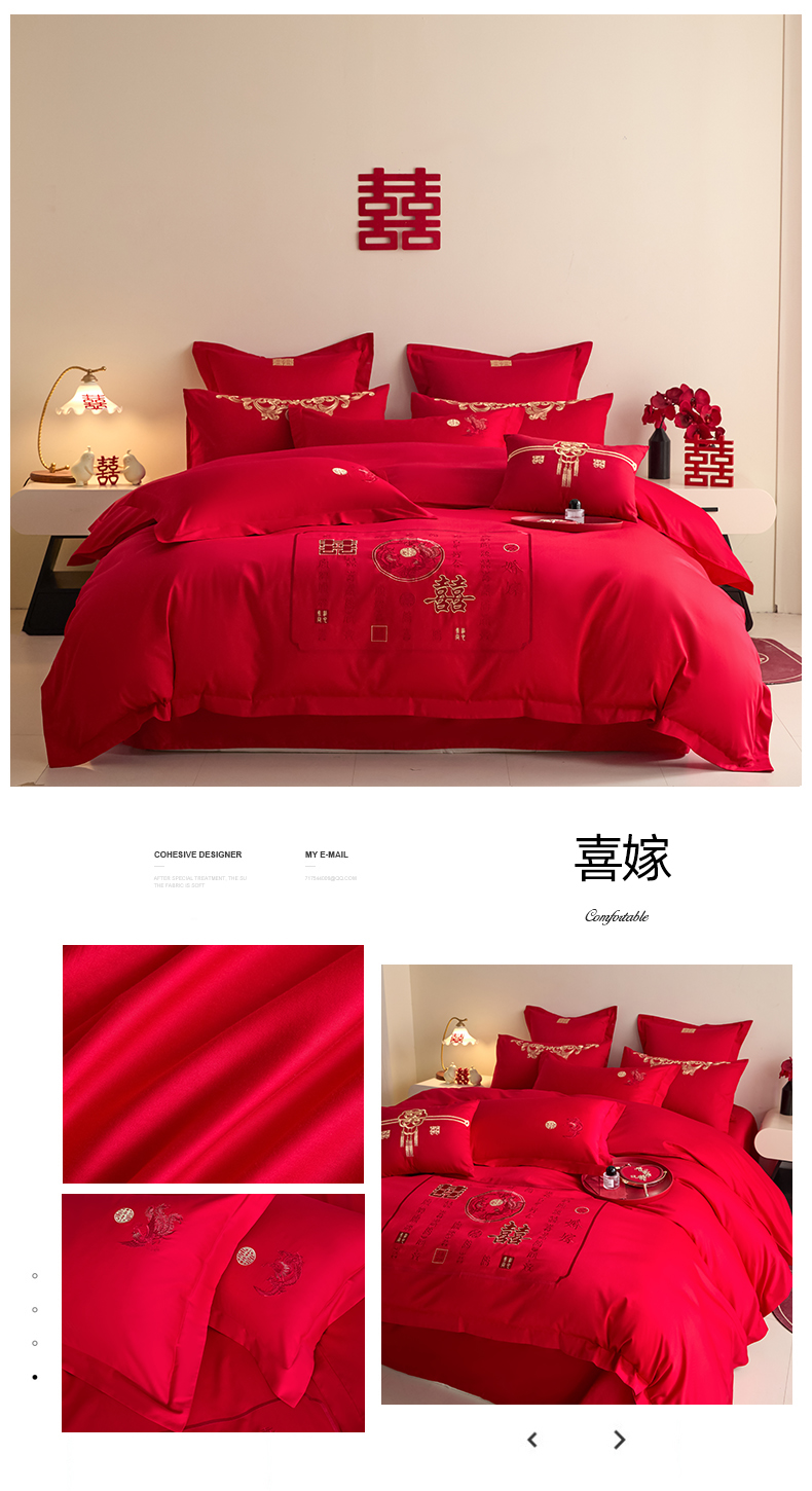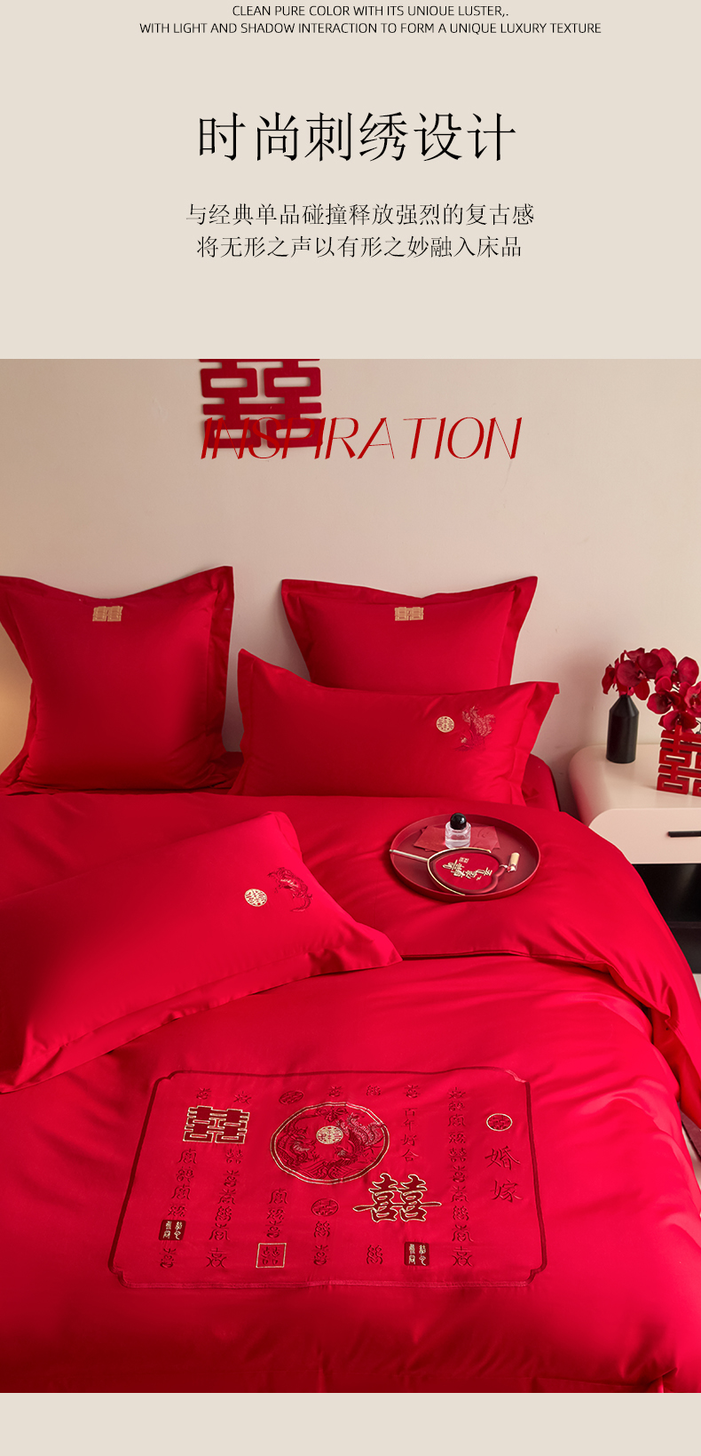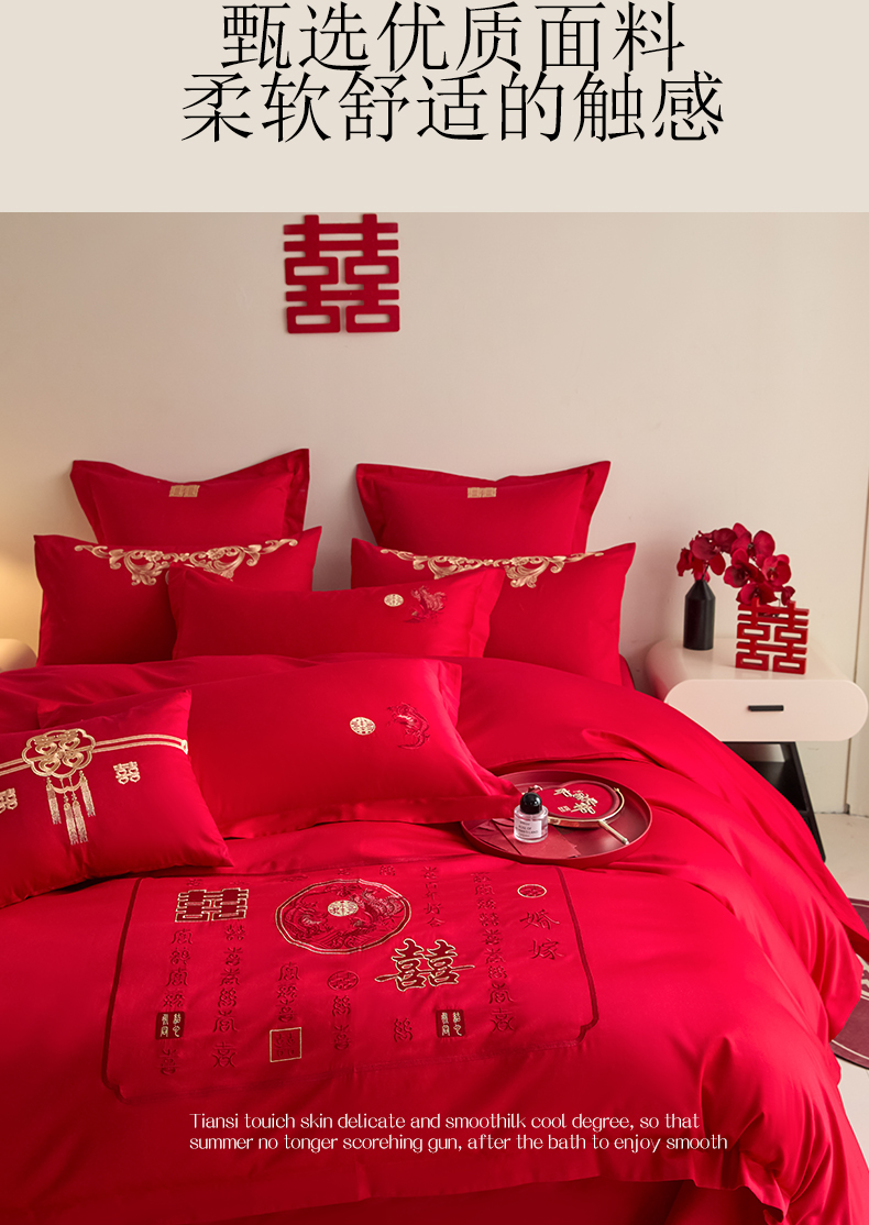 当前位置: 91家纺网 > 商品网购 > 床品套件 > 四件套 > 婚庆四件套 > 东方合美(原:皇家传奇)2025新款婚庆小红书化纤系列四件套(控价138/148) 喜嫁
